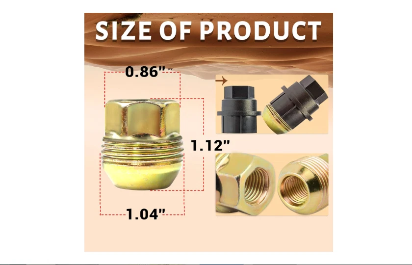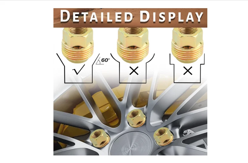 14Mmx1.5 OEM Factory Wheel Lug Nuts Replacement for Sliverado Sierra 1500 Yukon 【Replaces Part】We can provide the perfect replacement for your 14mmx1.5 OE Factory Mag Seat Hex Lug Nuts Replacement for Silverado Sierra 1500 Suburban Express Acadia Yukon Avalanche Escalade 6 Lug Stock Wheels 【Specifications】14x1.5 Thread Pitch; 7/8"" / 22mm Hex; Conical Seat - 60 Deg; 1.12'' /28.5 mm OAL; Dual Thread; Closed End; Color: Zinc Gold 【Package Includes】A set of 24. Replace 6111151, 9595175, 9591772,9598178,99918, 999181 【Features】 One-piece Solid lug nuts is made of 10.9-grade Heat-treated premium steel construction and Corrosion tested - 72-hour salt spray testing .which has better strength, durability, corrosion resistance and service life. 【Warranty】12 Months Warranty,The integral solid wheel nut Is Built To Strict Quality Control Standards,Will not break like other lug nuts,100% New And High Quality