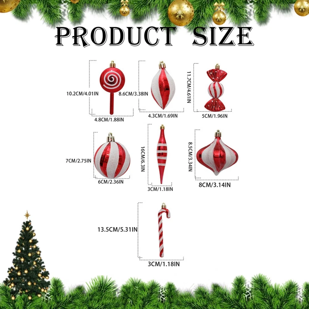 14 Pcs Christmas Candy Cane Ornament Plastic Peppermint Candy Cane Christmas Decorations Xmas Hanging Lollipop Pattern Decorations With Rope For Xmas Holiday Festival Decor Features: Large Quantity: you will receive 14 pieces of candy Christmas ornaments in 7 styles; The sufficient quantity and rich designs can satisfy your various daily needs and replacement, and you can also share the enough amount with your and family members Reliable Plastic Material: Christmas candy decorations are made of plastic, not easy to break, deform or fade, reliable and sturdy, with smooth surfaces, delicate and charming, can you for a long time Creative Design: Christmas candy decor is designed with a red and white color in the shape of sweets, shinning and glittering under the light, suitable for hanging on the Christmas tree, door, wall and other places, full of Christmas Christmas Decorations: our candy cane tree ornaments can dress up your Christmas tree, based in classic colors that nicely fit the Christmas theme, which are themed for indoor and outdoor Christmas ,can make you and your more joyful to enjoy the Wide Applications: candy themed Christmas decorations are applied for kindergartens, malls, offices, hotels, restaurants and other Christmas holidays, also suitable for birthday parties, carnivals, weddings,and other occasions Product Description: 14 Pcs Christmas Candy Cane Ornament Plastic Peppermint Candy Cane Christmas Decorations Xmas Hanging Lollipop Pattern Decorations with Rope for Xmas Holiday Festival Decor Material: Plastic Color: as the picture shows, (Due to the difference between different monitors, the picture may have slight color difference. please make sure you do not mind before ordering, Thank you!) Package weight: 183g Package size: 14.5x13.5x13.5cm,(Please allow 1-3mm error due to manual measurement. please make sure you do not mind before ordering.)