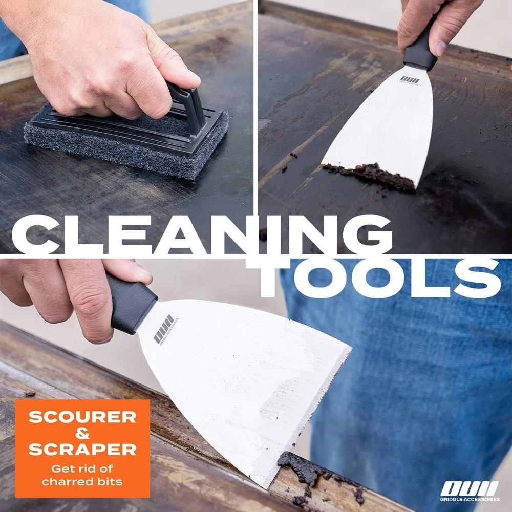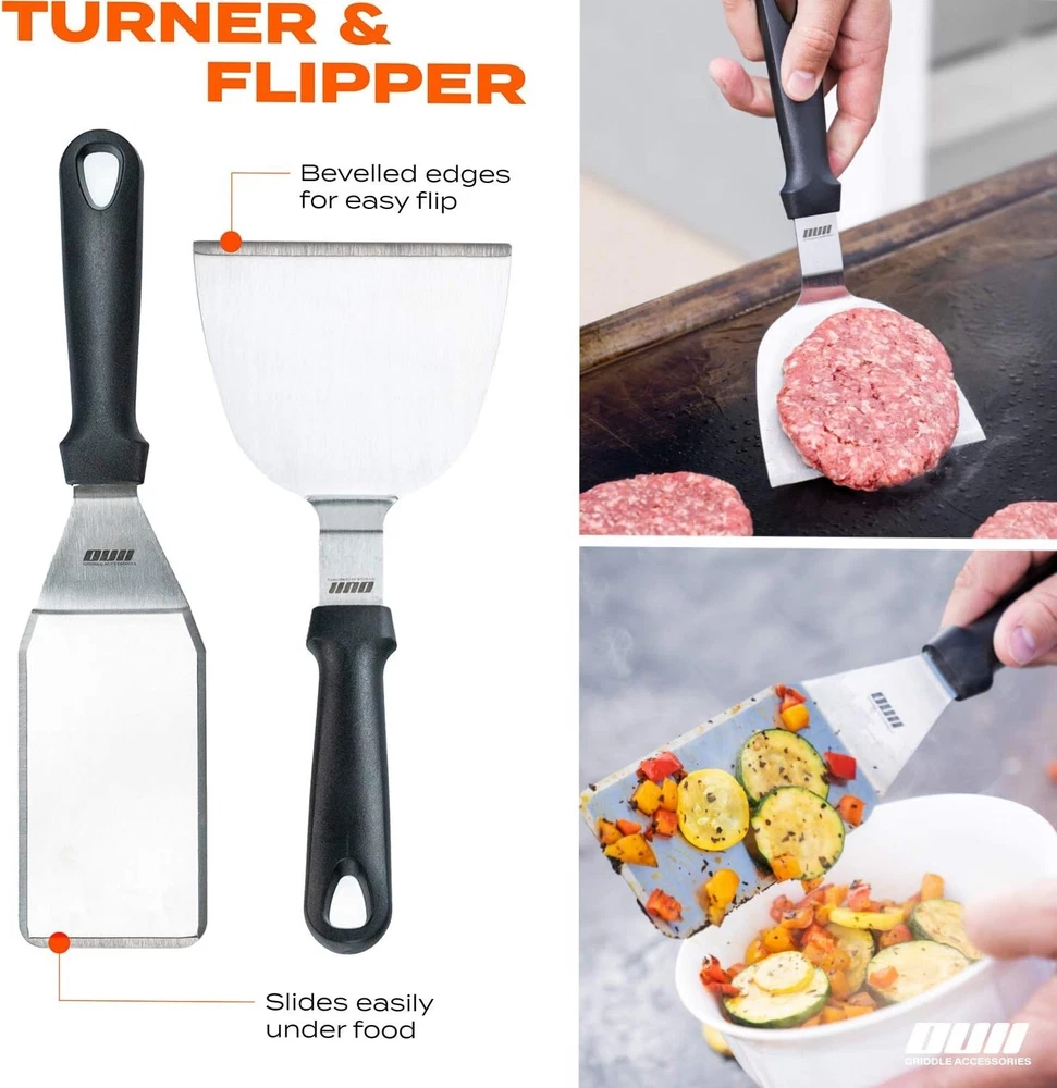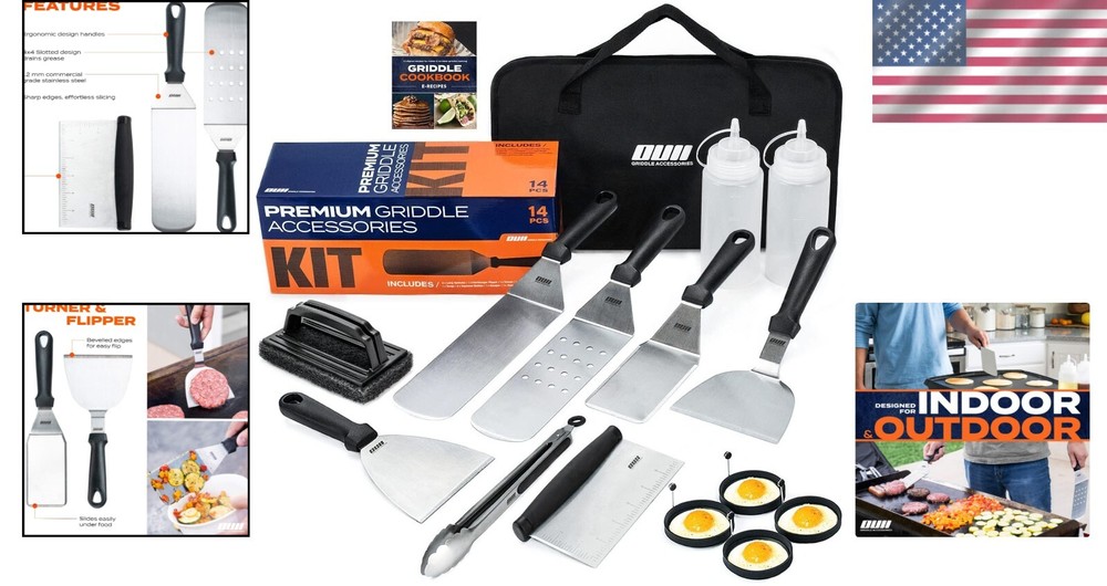 14-Piece Griddle Accessories Set for Blackstone & Camp Chef with Carry Bag ‹ › ‹ › ‹ › ‹ › ‹ › ‹ › ‹ › ‹ › ‹ › ‹ › 14-Piece Griddle Accessories Set Perfect for Blackstone & Camp Chef with Carry Bag Indulge in Culinary Excellence Elevate your outdoor cooking experience with our Griddle Accessories Set that promises to enhance your cookout adventures. This meticulously curated kit contains everything you need to unleash creativity and enjoy delicious, perfectly cooked meals under the sun. Included in Your Set: 3 Purpose-Made Spatulas: 1x Long Spatula (14.5''), 1x Slotted Spatula (14.5''), 1x Beveled Spatula (11.7'') 1 Pair of 12'' Locking Tongs for efficient and secure handling of your culinary creations. 1x Chopper (6'') for swift slicing and dicing on your griddle grill. 1x Burger flipper designed for effortlessly flipping juicy burgers. 4x Silicone Egg Rings that are non-stick and withstand temperatures up to 446F. 2x 16oz Squeeze Bottles made from Commercial Food Grade pliable plastic for accurate pouring. 1x Heavy Duty Griddle Cleaner Scourer and 1x Griddle Scraper with comfy heat-resistant handle. Why Choose Our 14-Piece Griddle Accessories Set? Versatile Cooking: From perfect pancakes to crispy hash browns, this ensemble empowers your griddle skills. Effortless Cleaning: Every tool is dishwasher safe, making post-cook tidying seamless. Compact Storage: Stow it all away effortlessly in the spacious 18x9” Griddle Accessories Case with a double carry handle. Durability Meets Functionality: Crafted from high-quality materials, each item ensures maximum performance and longevity. Heat-Resistant Comfort: Designed with heat-resistant handles for safe handling, making preparation enjoyable and safe. Start Your Culinary Journey! Don’t let lackluster kitchen tools hold you back! Embrace the art of outdoor cooking with the Flat Griddle Accessories Set. Because every delicious meal begins with the right tools. Get started on your journey to grilling greatness today! Shipping Free & Fast Shipping - We offer free shipping to most of the USA with a normal delivery time of 3-7 days. However, due to the current situation, additional delivery time (up to 3 weeks) may be required for some items. Alternative Carriers - We may use alternative carriers (e.g. USPS, FedEx, UPS, etc.) to ensure your package arrives safely and on time. Due to the use of multiple carriers, we are unable to provide a tracking number automatically. Handling Time - Orders are processed and shipped within 1-2 business days of receiving cleared payment. Shipping Restrictions - Shipping to Alaska, Hawaii, Puerto Rico, Guam, and other US territories may incur shipping charges or delivery restrictions. Please contact us before ordering, or your order can be refunded/cancelled. State Restrictions - There may be restrictions based on your state of purchase. For example, certain items may not be shipped to California due to state regulations. Contact for Tracking Updates - If you require tracking updates or have any concerns about the delivery of your order, please feel free to contact us, and we will be happy to assist you. Return 30-Day Hassle-Free Returns - We want you to be completely satisfied with your purchase. If you are not, you can return the item within 30 days of receiving it for a full refund or exchange. Easy Return Process - To start a return, simply contact us and we will provide you with a prepaid return shipping label and detailed instructions. Restocking Fee - There are no restocking fees for returns. However, the buyer is responsible for return shipping costs if the return is not due to a seller's error. Refund Processing Time - Refunds will be processed within 5 business days of receiving the returned item in its condition. Payment We accept all major credit cards, PayPal, and Apple Pay for your convenience. Your payment information is secure and encrypted to ensure a safe and seamless transaction. Please complete your payment within 3 days of purchase to avoid any delays in shipping. Feedback Your feedback is extremely important to us. We strive to provide the best products and customer service possible. If you are satisfied with your purchase, please take a moment to leave us a positive review. If you have any concerns or issues with your order, please contact us before leaving negative feedback. We are committed to resolving any problems and ensuring your satisfaction. Contact Us If you have any questions or concerns, please feel free to out to our customer support team. You can contact us through the eBay messaging system. We are available Monday to Friday, 9:00 am to 5:00 pm EST, and we will do our best to respond to your inquiry within 24 hours. Buy it now and enjoy a pleasant shopping experience! Unit Quantity: 14 Set Includes: Griddle Set,Long Spatula (14.5"),Slotted Spatula (14.5"),Beveled Spatula (11.7"),Chopper (6"),Griddle Scraper (9.5"),Burger Flipper (10.8"),Pair of 12" Locking Tongs,4x Silicone Egg Rings,2x Squeeze Bottles (16oz),Carry Bag Features: Dishwasher Safe,Non-Stick,Rust Resistant,Heat-Resistant Handles,Heavy Duty Griddle Cleaner,Efficient Cleaning Tools Type: BBQ Tool Set Color: Multicolor Number in Pack: 14 Handle Material: Polypropylene (PP) Size: Medium Head Material: Stainless Steel Finish: Polished Item Weight: Not Specified Item Height: 6 Inches Number of Items in Set: Fourteen-Piece Style: Modern Unit Type: Unit