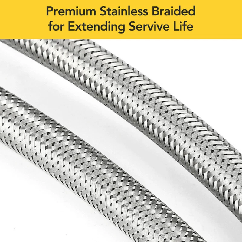 eBay Product Description 2Pcs 15 In Male 1/4" NPT QCC1 RV LP Propane Pigtail Hoses with Gauge Connector Product Description High Quality: Stainless braided hose is made of durable stainless steel braided with good anti corrosion and heat-resistance. Durable solid brass provide secured connections between appliance and tank. Safety: Our 15 inch stainless braided RV propane hoses with gauge can detect dangerous leaks and read fuel level at glance. It can work in dark. No need to install an extra gas gauge. Attention: It's a ACME nut x 1/4 inch inverted male flare.(NOT 1/4'' Male NPT). It can not only connect your 2-stage auto changeover regulator to a QCC1 5lb to 40lb LP gas tank, but also can be used to connect to an installed 4-Port Tee as an auxiliary propane supply. Application: This braided propane hose is suitable for BBQ, RV, outdoor cooking and camping needs. Easy to Install: Installs quickly and easily tool-less attachment to propane tanks and regulator. Length: 15inch hoses Material: stainless steel Connecting thread: Type 1 connection and a 1/4'' inverted Male Flare. Package include: 2 packs stainless braided propane hoses with Gauge. 1 Thread Seal Tape. Gas Type: Propane Payment Shipping Returns Contact Us Feedback We accept payment through Paypal ONLY. All major credit cards are accepted through secure payment processor PayPal. Payment must be received within 7 business days of auction closing. 1. We will ship in 1-2 business days after payment clears. 2. Additional shipping fee will be charged for buyers from Puerto Rico,Hawaii,Alaska,Guam,the U.S. military address of the United States and the nonnative American address please contact our customer service for the details of extra shipping fee. 3. We don't ship to PO.BOX if the package are big, as USPS express don't accept it, so please leave us your valid physical street address. We're confident in the product we sell. But sometimes the item will be damaged during the transit as which rough and tough and out of our control. If your item is defective or damaged when you received it, Pls kindly let us know asap. Take a photos of the damaged items to us,once we confirmed it,we will give you satisfied solution. We can resend or refund once we confirmed. Defective or damaged Shipping charges is for seller. Change mine or dislike Shipping charges is for buyer. Our office hours are MONDAY - FRIDAY 9:00PM - 6:00PM PST. All eBay messages will be responed within 24 housrs, except holidays. We appreciate your business and strived to improve our customer service and our commitment to quality. We greatly appreciate your POSITIVE feedback. If for some reason there is any issue with the purchase, please contact us prior to leaving feedback, and we will be glad to work with you to have it resolved. Payment We accept payment through Paypal ONLY. All major credit cards are accepted through secure payment processor PayPal. Payment must be received within 7 business days of auction closing. Shipping 1. We will ship in 1-2 business days after payment clears. 2. Additional shipping fee will be charged for buyers from Puerto Rico,Hawaii,Alaska,Guam,the U.S. military address of the United States and the nonnative American address please contact our customer service for the details of extra shipping fee. 3. We don't ship to PO.BOX if the package are big, as USPS express don't accept it, so please leave us your valid physical street address. Returns We're confident in the product we sell. But sometimes the item will be damaged during the transit as which rough and tough and out of our control. If your item is defective or damaged when you received it, Pls kindly let us know asap. Take a photos of the damaged items to us,once we confirmed it,we will give you satisfied solution. We can resend or refund once we confirmed. Defective or damaged Shipping charges is for seller. Change mine or dislike Shipping charges is for buyer.