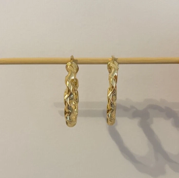 Elevate your style with these stunning gold-filled hoop earrings. Crafted with meticulous attention to detail, these earrings feature a unique twisted design that adds texture and dimension to any outfit. The hoops are medium-sized, making them perfect for both everyday wear and special occasions. The gold-filled material ensures durability and a long-lasting shine, giving you the luxurious look of gold without the hefty price tag. These earrings are lightweight and comfortable to wear, with a secure clasp that keeps them in place all day. Add a touch of elegance and sophistication to your jewelry collection with these exquisite gold-filled twisted hoop earrings. Features: Material: Gold-filled Design: Twisted texture Size: Medium Closure: Secure clasp Lightweight and comfortable Perfect for everyday wear or special occasions Dimensions: Diameter: Approximately 2 inches Width: Approximately 0.25 inches Why Choose Gold-Filled? Unlike gold-plated jewelry, gold-filled pieces are created with a thicker layer of gold, ensuring a longer-lasting finish that resists tarnish, flaking, and wear. With proper care, these earrings will maintain their beauty for years to come.