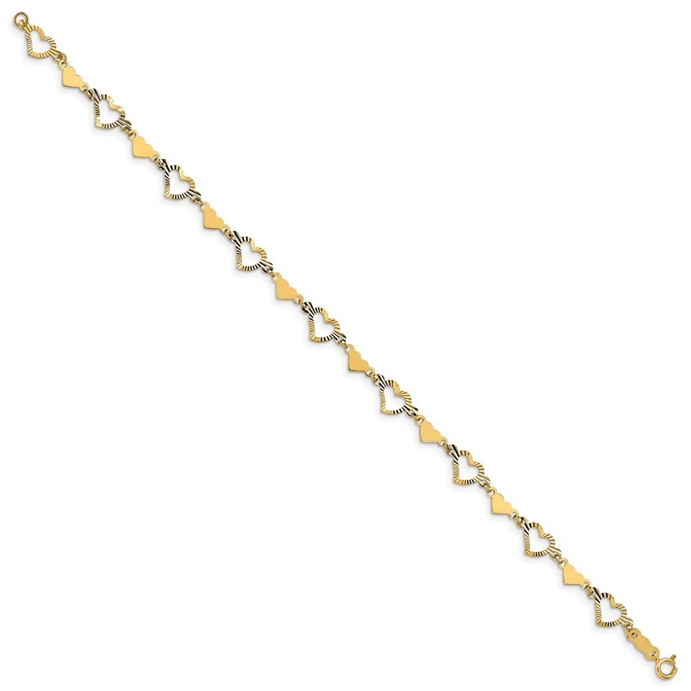 Features: Material Purity:14K Finish:Polished Length of Item:7.5 in Chain Length:7.5 in Chain Width:6 mm Charm/Element Length:11.5 mm Charm/Element Width:6 mm Clasp /Connector:Spring Ring Clasp Thickness (Female end):0.5 mm Clasp Thickness (Male end):1 mm Clasp Width (Female end):3 mm Clasp Width (Male end):5 mm Feature:Solid Width of Item:6 mm Jewelry Type:Bracelets Bracelet Type:Fancy Texture:Diamond-cut Profile Type:Flat Back Material Color:Yellow Number of Elements:9 All weights and measurements are approximate and may vary slightly from the listed information. diamond_6720 Payments We accept all Ebay approved payment. Please sent the payment to us within 8 days after the auction has ended, or you will have unpaid case auto open by eBay. Shipping Policy We will ship all items within 1 business days of purchase during the work week (M-F) excluding holidays. If you order on Friday, your order will be shipped the following business day. Tracking will be provided when it becomes available. We will only ship to a PayPal Verified Address. Please make sure your address is current and correct. If the information does not match, your order may be canceled. Buyers are responsible for all customs, duties and taxes for your respective countries. Delivery times for International Shipping will vary. California Buyers Pay 9.0% Tax on all orders. case auto open by eBay. Return Policy & Exchange Returns or Exchange are accepted. Buyer must contact us within 30 days after the item is received. Item must be returned in unworn and resalable condition. We will only issue a refund for the purchase price, excluding any shipping fees. If we are at fault, we will provide a full refund. Buyer is responsible for all return shipping costs. BUYERS FEEDBACK If you have any concerns regarding your purchase, please contact us via eBay Message, we assure you that a satisfactory resolution will be reached. Your feedback is very important to us Do remember to give us 5 star rating(*****) if you are satisfied with our product & service .