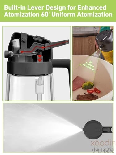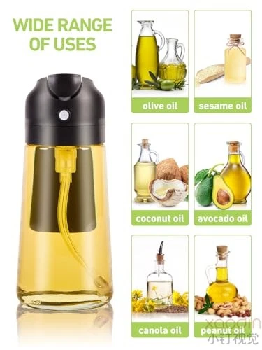 470ml Glass Oil Spray Bottle 2-in-1 Kitchen Dispenser for Cooking Olive Oil