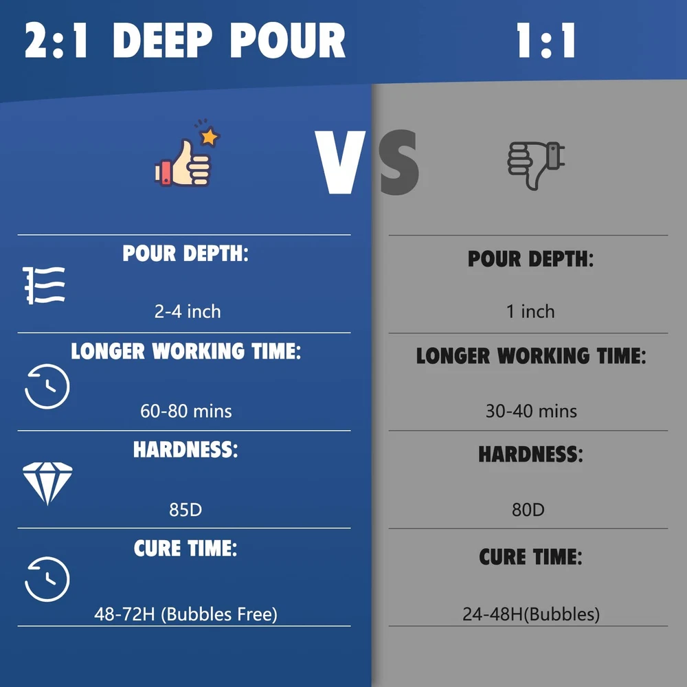 Deep Pour Epoxy Resin 1.5 Gallon, 2 to 4 Inch Depth Clear Epoxy Resin Kit with Mixer, Bubble Free, Low Odor 2:1 Casting Resin for Table Top, Countertop, River Table, Wood Filler, Bar Top 2-4 inch Deep-pour Designs: Bring your creative vision to life with our deep-pour epoxy resin that can fill depths of up to 2-4 inches. Perfect for making eye-catching river tables, bar counters, and other unique pieces. NOTE: For best results, keep room temperature at 20℃/68℉ or lower. Achieve a Flawless Finish: Our epoxy resin is crystal clear, bubble-free, and produces a bright, glossy finish that enhances the natural beauty of your project. You'll be amazed at the professional-quality results you can achieve. Durable and Safe: Our high-quality epoxy resin is long-lasting, resistant to yellowing, and has a hardness of 85D, ensuring your project will stand up to everyday wear and tear. Plus, it's food-grade and safe to touch, giving you peace of mind. Plenty of Time to Work: Our extended operation time of 60-80 minutes gives you ample time to work on your project before it starts to cure, while the curing time of 48-72 hours means you can enjoy your finished piece in no time. Versatile for All Your Projects: From river tables to charcuterie boards, and serving trays, our epoxy resin is a versatile choice for DIY enthusiasts and professionals alike. With our product, the possibilities are endless! NOTE: To avoid the biggest problem of resin, which is not curing, please test in a small amount before operation. Looking for a high-quality epoxy resin that can handle deep pours up to 4 inches thick? Look no further than our Deep Pour Epoxy Resin! Designed specifically for DIY and professional projects, this versatile resin delivers a crystal clear, high-gloss finish that enhances the natural beauty of any surface. Thanks to its self-leveling formula, this epoxy resin provides a smooth, even surface without the need for sanding or polishing. It's ideal for a wide range of applications, including river tables, jewelry making, bar tops, countertops, and more. Not only is our epoxy resin easy to use, but it's also incredibly durable. With excellent scratch and stain resistance, it's built to last and withstand everyday wear and tear. At the same time, we're committed to using only high-quality, non-toxic ingredients in our products. That means you can feel confident using our epoxy resin in your home or workplace. Shipping We offer FREE shipping on all orders! We ship within Three business days of payment, usually sooner. We use a selection of shipping services such as UPS, FedEx, USPS etc. We only ship to the lower 48 states, no APO/FPO addresses or PO Boxes allowed. Local pickups and combined shipping options are not provided at this time. Return You can return a product for up to 30 days from the date you purchased it. Any product you return must be in the same condition you received it and in the original packaging. Please keep the receipt. Payment We accept payment by any of the following methods: PayPal Please pay as soon as possible after winning an auction, as that will allow us to post your item to you sooner! Feedback Customer satisfaction is very important to us. If you have any problem with your order, please contact us and we will do our best to make you satisfied. Contact Us If you have any queries, please contact us via ebay. We usually respond within 24 hours on weekdays. Please visit our eBay store to check out other items for sale! Thank you for shopping at our store.