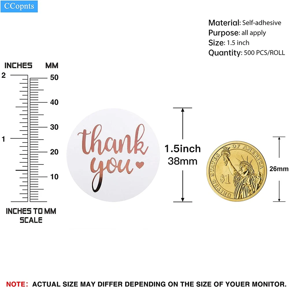 Neighborhood service 1.5 Inch Thank You Stickers Roll, 500 Pcs Rose Gold Thank You Stickers Lables for Baking Packaging,Envelope Seals, Small Business,White Stickers Tags for Wedding,Birthday,Party Gift Wrap Bag ENJOY THE FEATURES 【Thank You Sticker】 The sticker pattern is composed of white and rose gold, expressing sincere thanks to customers, friends and family 【Excellent Quality】 Our stickers are made of high-quality materials, these stickers themselves are not easy to be torn, using high-quality adhesives, not easy to peel off! 【Wide Range Of Applications】 These stickers are suitable for gift packaging, greeting cards, scrapbooks, gifts, envelopes, dessert packaging, etc., to leave a good impression and a happy mood for your friends and customers. 【Size & Quantity】 The size is big enough, the quantity is enough! The size is 1.5 inches, and there are 500 stickers in a roll, which can satisfy users. 【Thanks For Your Support】 Thank you for your support for our small business stickers. I wish you a happy use of this product and a happy time. Product Description How to thank your customers? How to let customers to buy again from you? Here is the best solution: YOU NEED THIS BEAUTIFUL STICKERS ---A great alternative to favor tags. Every unique thank you stickers from the pack has been carefully checked and we care about our customers. Our thank you small business stickers help you make friends and loved ones feel special and appreciated. Wide Applications The thank you stickers are suitable for cards, scrapbooks, jewelry boxes, envelopes, packaging business cards and so on, bringing good impression to your costumers. Easy to Peel and Stick The thank you sticker is made of high quality paper with foil letters printed on it. Easy to stick and easy to remove, leaving not residue to the surface. Waterproof With crafty and classy look, printed with rose gold foil letters, the stickers are waterproof. Can be used for a long time. VERSATILE STICKERS "Thank you" goes a long way in building lasting relationships. Wow them with brilliant stickers on your greeting cards, flower bouquets, parcels, candy bags, gift wraps,weddings, Thanksgiving, birthday parties. Professional stickers Make your packaging more beautiful,Seal your bubble mailers and packaging beautifully with these and add a professional finish to your products. These stickers are the most inexpensive way to improvise even a plain product box and up its tag Add Personal Style To Your Products The perfect thank you post can add personal style to your products and attract customers to buy from you again. With a sincere and powerful message--Thank you for supporting my small business, which is printed in eye catching rose golden ink and stylish fonts, you can customize a unique thanks for each customer. It's very helpful to impress your customers. Style Classic Number of Items 500 Pattern Letter Theme Wedding Surface Recommendation seal Material Paper Cartoon Character Bubble Number of Pieces 500 Age Range (Description) Adult Shape Round Unit Count 500 Count Item Form Roll Reusability Single Use Item dimensions L x W x H 0.39 x 0.39 x 0.5 inches Indoor/Outdoor Usage Indoor Water Resistance Level Water Resistant Item Weight 4.2 ounces Special Feature Self Adhesive Color White Finish Type Powder Coated Recommended Uses For Product Scrapbook, Greeting Card Product Dimensions 0.39 x 0.39 x 0.5 inches 0.39 inches x 0.39 inches x 0.5 inches. Weight: 4.2 oz PAYMENT We accept all payments via Ebay using Credit Cards , PAYPAL , Apple Pay and many others SHIPPING We are always working hard to ensure your package arrives as soon as possible. Please understand that some factors like weather, high postal traffic, and the performance of shipping companies are outside of our control. We offer free shipping to the lower 48 states and ship within 3-5 business days of payment, usually sooner. We do not accept P.O. Boxes. Please provide a physical address. We do not ship internationally at this time. DELIVERY & RETURN POLICY We do not offer returns unless the item violates eBay policies. Please be aware these polices only make sellers accept returns if the item violates eBay's Buyer Guarantee. If you would like to learn more about this please visit eBay's Help Page. Thank you for your business