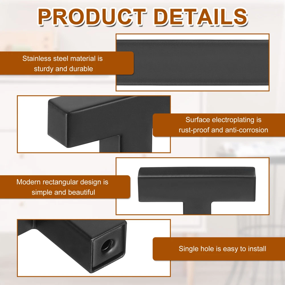 Document Description[Sturdy Material] - Our single-hole drawer handle is made of stainless steel, and the surface is electroplated, which is rust-proof and corrosion-resistant, strong and not easy to break, and has a long service life[Rectangular Design] - The cabinet knob adopts a rectangular design, with a simple and beautiful appearance, which can be matched with a variety of styles of cabinets and drawers, easily enhancing the beauty of cabinet doors and drawers; comfortable to hold, making it easier for you to use[Easy to Install] - The single hole design makes installation more convenient. Just screw the included screws into the hole of the knob, and you can easily put the handle and the cabinet door together. It is not easy to fall off and easy to pull out the drawer[Wide Application] - These pull knobs are widely used in various kitchen cabinets, desk drawers, cabinets, doors, dressing tables, wardrobes, closets, storage cabinets, boxes, bookcases and dressing tables, making your home elegant and stylishSpecificationMaterial: Stainless SteelColor: BlackTotal Size: 50 x 12 x 35mm/1.97 x 0.47 x 1.38inch(L*W*H)Screw Size: M4 x 25mmBreakaway Screw Size: M4 x 45mmPackage Includes15Pcs x Single Hole Cabinet Handles15Pcs x Screw15Pcs x Breakaway Screw 15 Pack Single Hole Cabinet Handles, 2"/50mm Kitchen Cabinet Handles, Black Description [Sturdy Material] - Our single-hole drawer handle is made of stainless steel, and the surface is electroplated, which is rust-proof and corrosion-resistant, strong and not easy to break, and has a long service life [Rectangular Design] - The cabinet knob adopts a rectangular design, with a simple and beautiful appearance, which can be matched with a variety of styles of cabinets and drawers, easily enhancing the beauty of cabinet doors and drawers; comfortable to hold, making it easier for you to use [Easy to Install] - The single hole design makes installation more convenient. Just screw the included screws into the hole of the knob, and you can easily put the handle and the cabinet door together. It is not easy to fall off and easy to pull out the drawer [Wide Application] - These pull knobs are widely used in various kitchen cabinets, desk drawers, cabinets, doors, dressing tables, wardrobes, closets, storage cabinets, boxes, bookcases and dressing tables, making your home elegant and stylish Specification Material: Stainless Steel Color: Black Total Size: 50 x 12 x 35mm/1.97 x 0.47 x 1.38inch(L*W*H) Screw Size: M4 x 25mm Breakaway Screw Size: M4 x 45mm Package Includes 15Pcs x Single Hole Cabinet Handles 15Pcs x Screw 15Pcs x Breakaway Screw Hot Item Payment 1.We accept eBay payment . 2.Payment must be received within 7 business days of auction closing. Shipping 1.We ship to your eBay or Paypal address. Please make sure your eBay and Paypal address is correct before you pay. 2.Items will be shipped within 1-3 business day when we received payment. 3.Delivery time depends on destination and other factors. Description Policy 15 Pack Single Hole Cabinet Handles, 2"/50mm Kitchen Cabinet Handles, Black Description [Sturdy Material] - Our single-hole drawer handle is made of stainless steel, and the surface is electroplated, which is rust-proof and corrosion-resistant, strong and not easy to break, and has a long service life [Rectangular Design] - The cabinet knob adopts a rectangular design, with a simple and beautiful appearance, which can be matched with a variety of styles of cabinets and drawers, easily enhancing the beauty of cabinet doors and drawers; comfortable to hold, making it easier for you to use [Easy to Install] - The single hole design makes installation more convenient. Just screw the included screws into the hole of the knob, and you can easily put the handle and the cabinet door together. It is not easy to fall off and easy to pull out the drawer [Wide Application] - These pull knobs are widely used in various kitchen cabinets, desk drawers, cabinets, doors, dressing tables, wardrobes, closets, storage cabinets, boxes, bookcases and dressing tables, making your home elegant and stylish Specification Material: Stainless Steel Color: Black Total Size: 50 x 12 x 35mm/1.97 x 0.47 x 1.38inch(L*W*H) Screw Size: M4 x 25mm Breakaway Screw Size: M4 x 45mm Package Includes 15Pcs x Single Hole Cabinet Handles 15Pcs x Screw 15Pcs x Breakaway Screw Hot Item Payment 1.We accept eBay payment . 2.Payment must be received within 7 business days of auction closing. Shipping 1.We ship to your eBay or Paypal address. Please make sure your eBay and Paypal address is correct before you pay. 2.Items will be shipped within 1-3 business day when we received payment. 3.Delivery time depends on destination and other factors.
