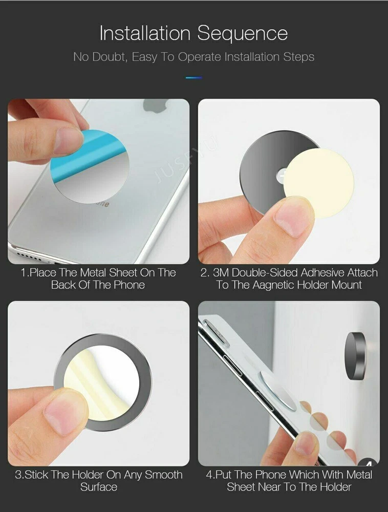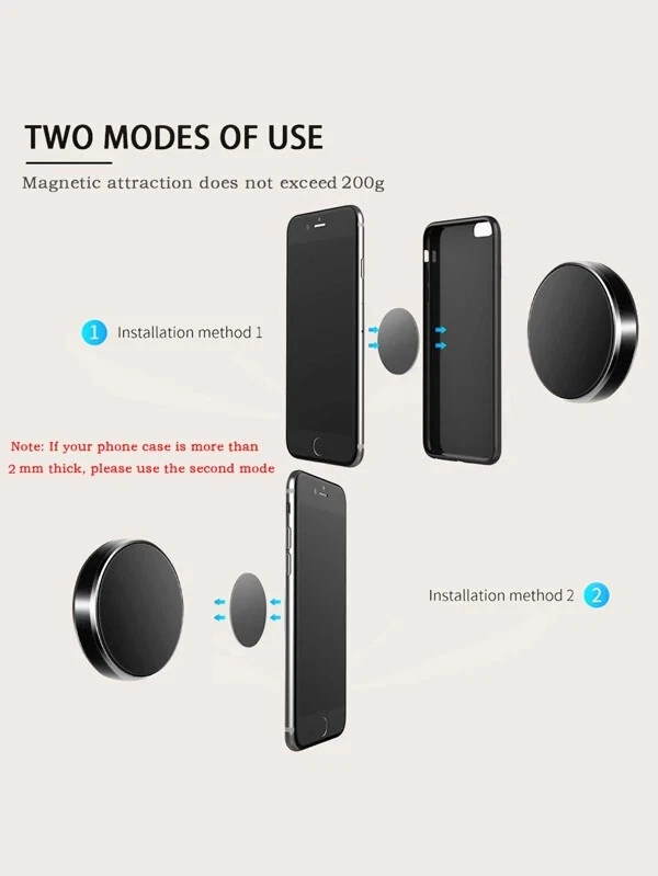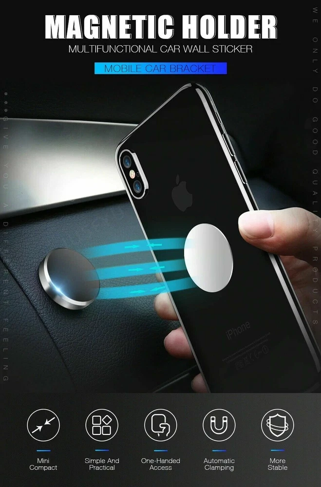 Description: Elastic fixation design, allows it to be used in any situation. A portable mini magnetic holder does not block your sight. Strong capability of anti-shaking and anti-shocking. The adhesive base allows you to stick it to whatever surface you want. Rubber Grip on Magnetic Surface Offers Extra Protection. Mini Size, Made of Stainless Steel, Cool Appearance and High Quality, Never Waste the Space. Easy installation and operation with one hand, ensure your drive is safe. Compatible with Most Smart Phones, Mobile Cell Phone, GPS, PDA Devices. Package Includes: 1/2/3/4/5x Magnetic Car Mount Holders 1/2/3/4/5x Metal Plates Buyer Note: If you are satisfied with our service, we appreciate you leaving us a positive feedback and 5 star rating review! Your opinion is important to the success of our business. If you are not satisfied with the product or have not received the product for more than 35 days, please contact us to resolve, we will do our best to solve. We are sure to come up with a satisfactory solution. Please contact us first before leaving cold feedback or good feedback of 1-3 stars and opening the case. We'll do our best to solve your problem. Because we believe that everything can be solved through communication. Thank you very much!