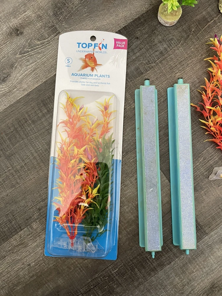 15 Piece Aquarium Fish Tank Accessories Lot - Plants, Ship, 2 & 4 Way Air Valves Enhance your aquarium experience with this diverse 19-piece fish tank accessories lot. It includes a variety of vibrant plastic ornaments and a selection of air valves to create a dynamic underwater environment. The multicolored additions, such as realistic plants and a detailed ship, are designed to thrive in any water type, adding both aesthetic appeal and biodiversity to your tank.The set is complete with both 2 and 4-way air valves, allowing for customizable water flow and aeration. Crafted for longevity and easy maintenance, each unit type is designed to enhance the natural beauty of your aquatic habitat. This assortment is ideal for hobbyists looking to add life and functionality to their fish tank. Good used condition. Air stones have not been tested. -Used items may have some usage wear. -Items are carefully examined, measured, photographed, and stored in a smoke free environment. -100% authenticity guaranteed -Items will ship within 2 business days *Thank you for stopping by. Please check out my other listings.