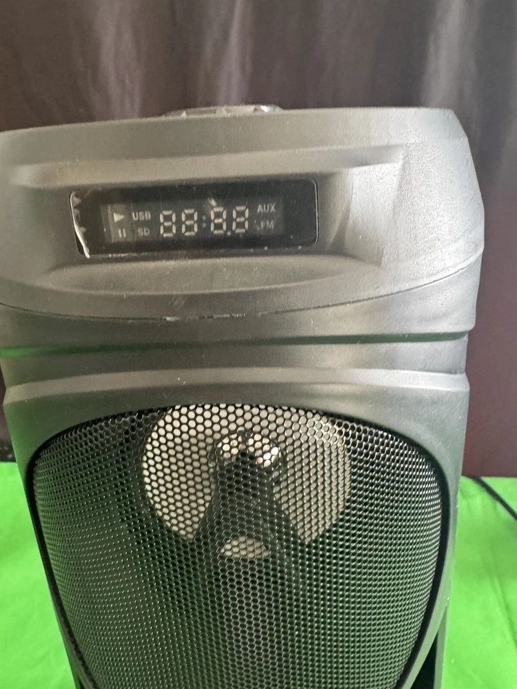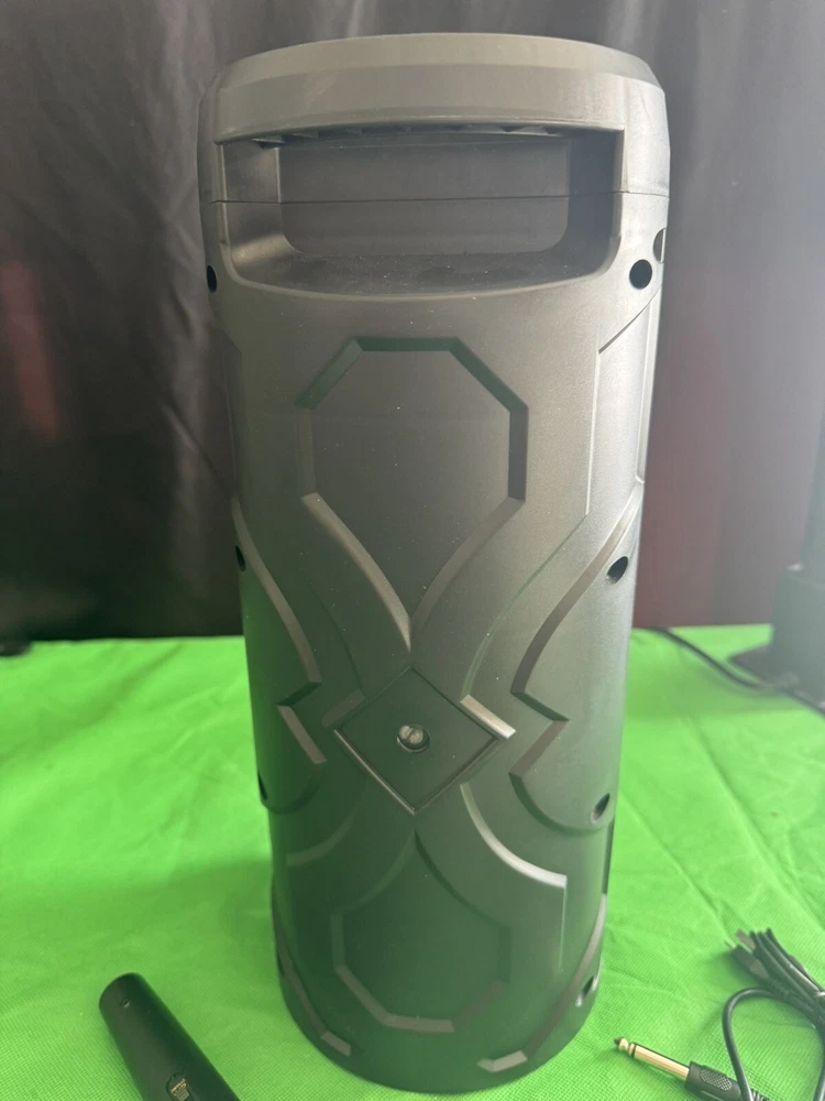 Portable Bluetooth Speaker with Microphone - 15” Height (New, Open Box) • Condition: Brand new, only opened to verify contents and take pictures. • Features: • Bluetooth connectivity for wireless audio streaming. • Multiple input options: USB, TF card, AUX, and FM radio. • Dual speakers with colorful LED lights. • Built-in rechargeable battery for portability. • Includes wired microphone for karaoke or announcements. • Compact and lightweight design with a convenient carry handle. • Specifications: • Model: K3 • Height: 15 inches • Connectivity: Bluetooth (10m range), USB, TF card, AUX, FM radio. • Accessories: Wired microphone, charging cable. This speaker is perfect for parties, outdoor events, or home use. Ready to use straight out of the box! Feel free to message me for more details or offers!