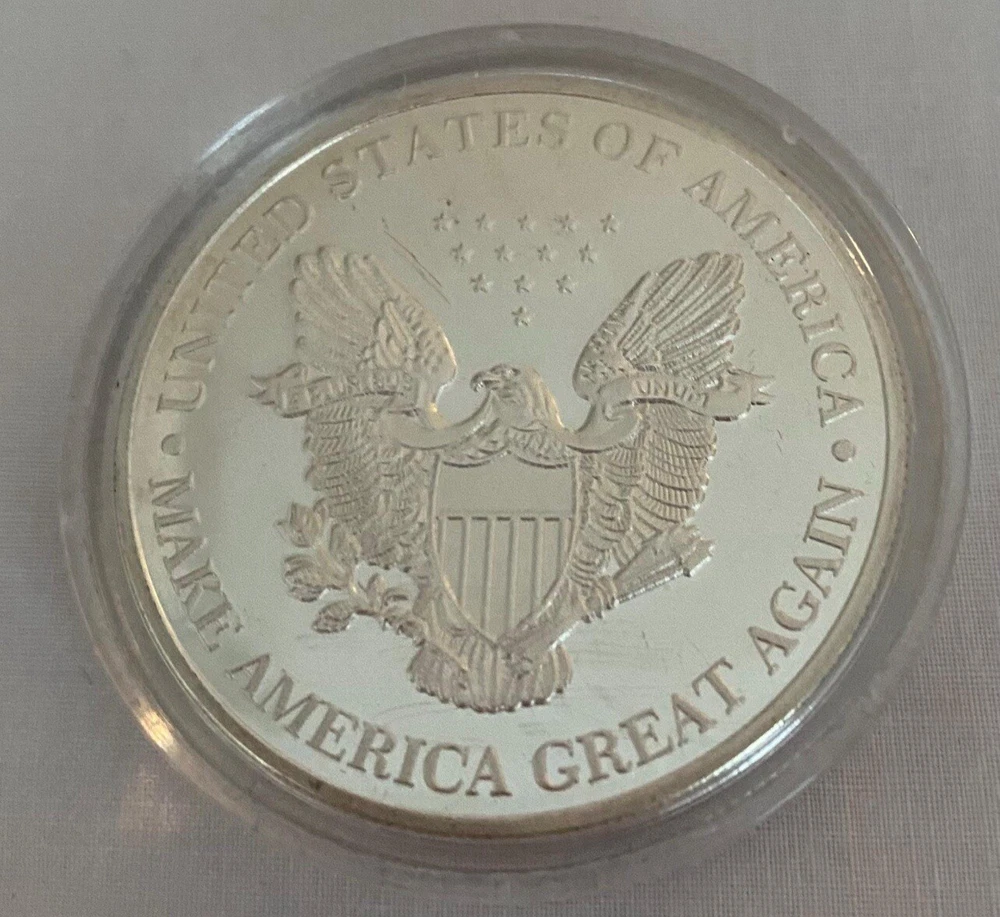 1-1/2 in diameter commemorative coin of Donald Trump’s first Presidency. Encapsulated. Make America Great Again on reverse.