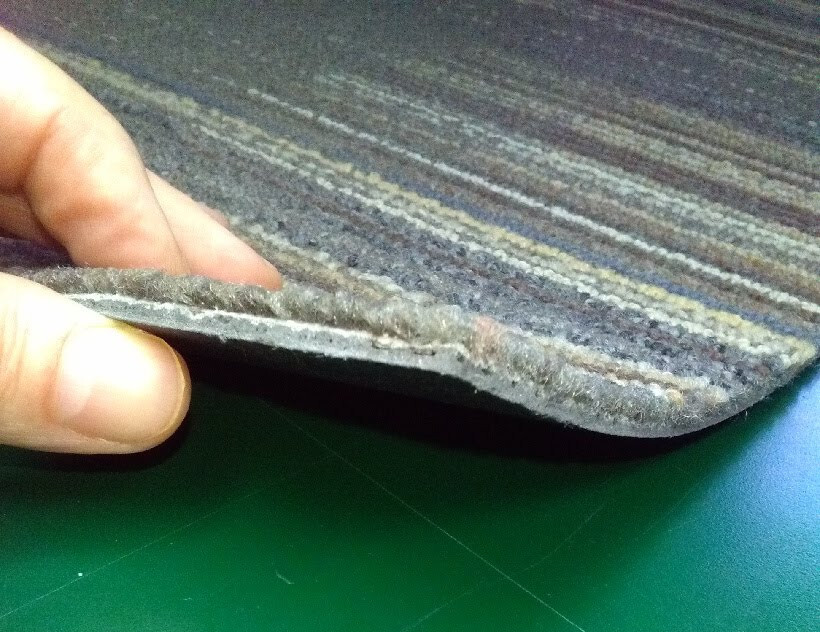 This listing is for a 15 lb. box of carpet scraps or strips. Most are 24 inches long and range from an inch or two to four or five inches wide. Cut from indoor/outdoor carpet squares or tiles. The thickness is about 1/4 inch. The brand is Invision from Home Depot. These are "contractor" grade. Fade resistant. Stain resistant. Ideal for commercial or residential applications.I don't think this style is available from Home Depot any longer. There are actually two styles intermingled here, but the difference between the two styles is so subtle that it may be hard to tell them apart. See photos. These have a black rubber backing or pad built in. In many cases, they can be used as is with no glue or adhesive tabs to hold them in place. After a while, they will start to stick on their own. At least that was my experience on a polished concrete floor. The tiles have been used in a low traffic non-smoking office with no pets. Note that I am also selling full (100%) pieces and other larger cut carpet pieces in separate listings.