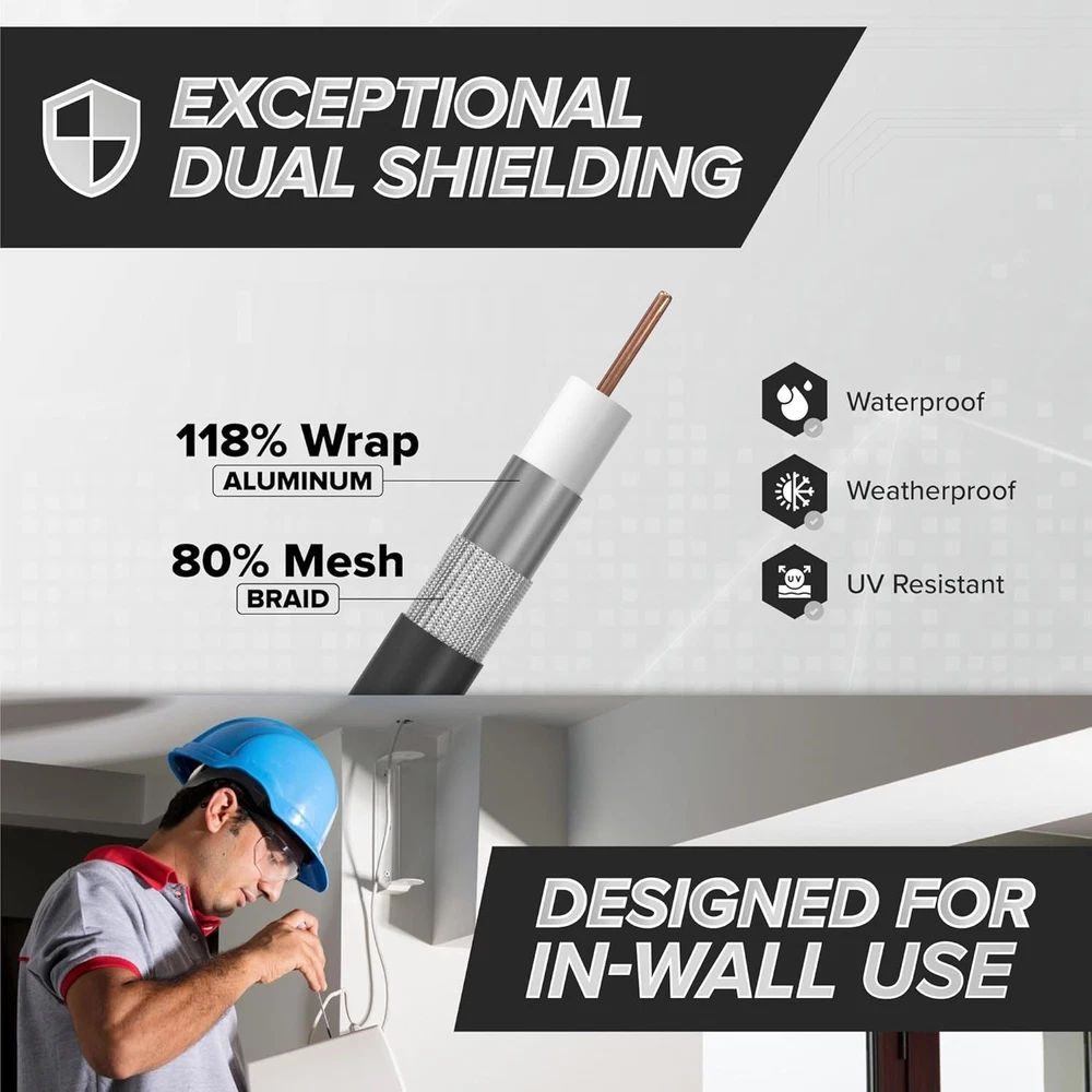 150 FT RG6 Dual Shielded Coaxial Cable - Indoor/Outdoor, High Speed Internet ‹ › ‹ › ‹ › ‹ › ‹ › ‹ › ‹ › ‹ › ‹ › 150 FT RG6 Dual Shielded Coaxial Cable - Indoor/Outdoor, High Speed Internet Features: Tri-Shield RG6 Coax Cable with Male F-Pin Connectors: Supports bi-directional data transmission between devices with zero distortion or signal loss. Solid Build: Equipped with an 18 AWG center conductor crafted from copper-coated steel, a flexible UV-resistant PVC outer jacket, and two 360-degree compression connectors for maximum reliability. Waterproof Connectors: Features fittings with a redundant double seal at each end, creating a solid design that prevents loosening or breaking. Long-Lasting Construction: Heavy-duty RF coaxial cable suitable for both indoor and outdoor use, complete with weatherproof connectors that endure extreme temperatures. Diverse Compatibility: This 75-ohm coaxial cable is designed to work seamlessly with a wide array of devices, including cable modems, televisions, satellite receivers, antennas, and other RG6 F-type devices. Benefits: Ensures clear, uninterrupted data transmission for all your media needs. Built to withstand the elements, perfect for outdoor installations without compromising performance. High construction quality guarantees longevity and reliability. Universal compatibility for hassle-free setup across various devices. Why choose our RG6 Dual Shielded Coaxial Cable? If you're seeking a reliable, high-speed connection for your indoor and outdoor setups, look no further than our 150 FT RG6 Dual Shielded Coaxial Cable. Boasting a solid build and waterproof connectors, this cable is designed to resist the elements while delivering exceptional performance without signal loss. Don't compromise on quality or connectivity - elevate your internet and media experience today by choosing our premium coaxial cable! Shipping Free & Fast Shipping - We offer free shipping to most of the USA with a normal delivery time of 3-10 businessdays. However, due to various situations, additional delivery time (up to 3 weeks) may be required for some items. Alternative Carriers - We may use alternative carriers (e.g. USPS, FedEx, UPS, etc.) to ensure your package arrives safely and on time. Due to the use of multiple carriers, we are unable to provide a tracking number automatically. Handling Time - Orders are processed and shipped within 1-5 business days of receiving cleared payment. Shipping Restrictions - Shipping to Alaska, Hawaii, Puerto Rico, Guam, and other US territories may incur shipping charges or delivery restrictions. Please contact us before ordering, or your order can be refunded/cancelled. State Restrictions - There may be restrictions based on your state of purchase. For example, certain items may not be shipped to California due to state regulations. Contact for Tracking Updates - If you require tracking updates or have any concerns about the delivery of your order, please feel free to contact us, and we will be happy to assist you. Return Please see our ebay return policy. We do not accept return on most products. This is to avoid customers mis-using ebay returns. All sales are final. Please be sure to check the return policy listed at the top of the listing. In rare cases, we may accept returns, if the buyer pays both ways shipping and 20% restocking fee. If you are un-sure of return policy of a particular item, please ask before buying. Payment We accept all major credit cards, PayPal, and Apple Pay for your convenience. Your payment information is secure and encrypted to ensure a safe and seamless transaction. Please complete your payment within 3 days of purchase to avoid any delays in shipping. Feedback Your feedback is extremely important to us. We strive to provide the best products and customer service possible. If you are satisfied with your purchase, please take a moment to leave us a positive review. If you have any concerns or issues with your order, please contact us before leaving negative feedback. We are committed to resolving any problems and ensuring your satisfaction. Contact Us If you have any questions or concerns, please feel free to reach out to our customer support team. You can contact us through the eBay messaging system. We are available Monday to Friday, 9:00 am to 5:00 pm EST, and we will do our best to respond to your inquiry within 24 hours. Buy it now and enjoy a pleasant shopping experience! UPC: Not Set Unit Quantity: 150 FT Item Height: Not Set Item Length: Not Set Item Width: Not Set Connector A: F Connector Male Connector B: F Connector Male Features: Weather Proof,High Speed Internet,Dual Shielded,UV Resistant,CL2 Rated,Low-Loss,Flexible PVC Outer Jacket,Waterproof Connectors,Heavy-Duty Construction Compatible Brand: Not Set Compatible Model: Universal,Cable Modems,Televisions,Satellite Receivers,Antennas,RG6 F-Type Devices Brand: Unbranded Type: Coaxial Cable Cable Length: Not Set Connection Split/Duplication: 1:1 Output Voltage: Not Set MPN: Not Set Color: Black Gauge: 18 AWG Fiber Type: Not Set Manufacturer Warranty: Not Set