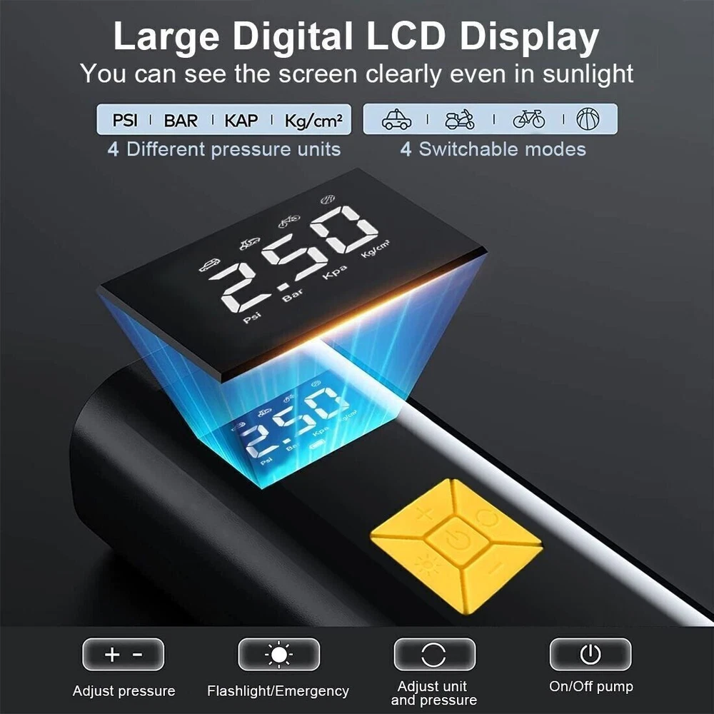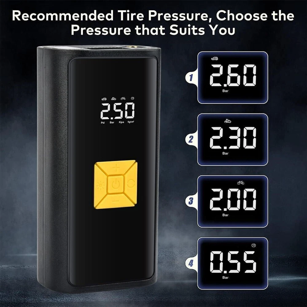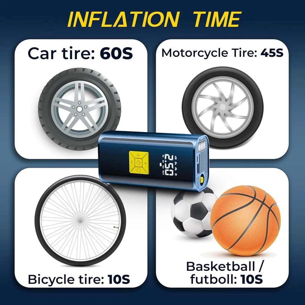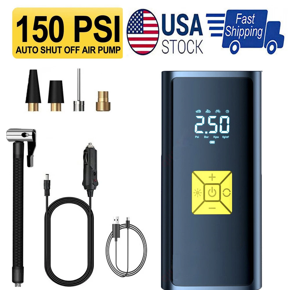 Descriptions: 【FAST INFLATING SPEED and EASY TO USE】 【Built-in LED light 】 【4 Extra Nozzles】 【Compact Size Tire Inflator】 Specification: Product material: ABS Overall Dimension: 80*52*158mm Rated input: 5V1A Piston Diameter: 19mm Rated power: 60W Pressure range: Pressure: 3-150PSI Accuracy: ±1.5psi Air volume: 16L / min Continuous working time: 8-10min Length of on-board charging cable: 3M Operating temperature: -20℃~60℃ Package List: 1 * Main unit 1 *Inflatable hose 4 * Inflatable nozzle. 1 * Type-C cable 1 * 3M American 12V cable 1 * Instruction manual 1 * Color box Note: .Never allow children to use it. .Operation generate heat. While it is working for over 10min, please stop it for a few minutes to cool it down. 150 PSI Air Compressor Tire Inflator Fits Car Moto Bike Tires Air Pump Portable D escriptions: 【 FAST INFLATING SPEED and EASY TO USE】 Simply plug this auto tire air compressor into the 12V power outlet and attach the hose to the tire you wish to inflate. You can just flip the switch, then shut it off once the tire pressure hits your desired number. 【3M-LONG RANGE】 Besides, the 3M power cable is long enough to reach all the tires easily. A long cable eliminates needs to unplug it each time. 【 Built-in LED light 】 The built-in LED light makes this mobile inflator ideal for use at any time of day or night, and it even features a SOS signal function for added safety on the road. 【 4 Extra Nozzles】 Our tire pump has 4 extra nozzles which allow to inflate all types of tire, such as car, motor, ATV, or midsize SUV, sports equipment and inflatables adaptors included. Perfect for your inflatable boats, balls and other inflatables. 【 Compact Size Tire Inflator】 Keeps pumps handy to fix a flat or inflate air mattresses when you travel away from home. Specification : Product material: ABS Overall Dimension: 80*52*158mm Rated input: 5V1A Piston Diameter: 19mm Rated power: 60W Pressure range: Pressure: 3-150PSI Accuracy: ±1.5psi Air volume: 16L / min Continuous working time: 8-10min Length of on-board charging cable: 3M Operating temperature: -20℃~60℃ Package List: 1 * Main unit*1, 1 *Inflatable hose 4 * Inflatable nozzle. 1 * 3M American 12V cable 1 * Type-C cable. 1 * Instruction manual 1 * Color box Note: Never allow children to use it. Operation generate heat. While it is working for over 10min, please stop it for a few minutes to cool it down. Do not use it close to flammable and combustible object such as gas station. Do not work with high pressure or large volume applications like pools, Inflatable canoe, tire width >245 MM such as truck, vans and off-road vehicles. Payment Shipping Return Contact us About us Payment 1.Paypal, Credit Card, G Pay etc, many payment way is accepted. 2.Please be sure your shipping address is correct before make a payment. Shipping 1.We will ship out the item within 1-3 business days after comfirming the payment, appreciate your patience. 2.If the items are broken on the way( we will check the orders clearly before we sent them ),please contact us in 3 days you received it. We will send you a new one or refund your payment. Return 1.We stand behind every buyer.Items can be returned for exchange or refund within 30 days. 2.Please contact us when you have any confusion of our item, we will solve the trouble for you as soon as possible. Contact us 1.This is professional Seller.We will reply your message within 24 hours. 2.Please contact us whenever you have any question about the item. We will deal with it as soon as possible. 3. If you are unhappy with the item or our service,please Contact Us before leave feedback,just give me a chance,thank you! About us 1. Unless specified otherwise, all our products are IN STOCK and are shipped from Local warehouse - Not Overseas! 2. We provide a 30 day Satisfaction Guarantee or your money back (provided items are in the same new and resaleable condition.) 3. We have a PayPal Verified Business Account, please buy with Confidence! 4. Every item will be tesrted before send.We know our products well and if we don't have the answers we will do our best to find them for you! 5. Our friendly team look forward to serving you! Your satisfaction is our No.1 Priority We will do our best to satisfacy you.
