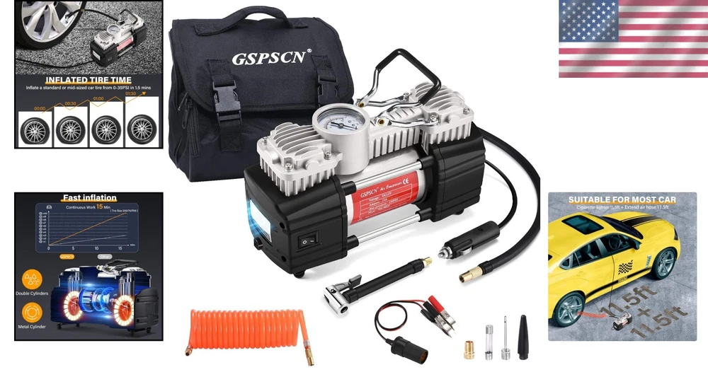150 PSI Double Cylinder Tire Inflator with LED Light - Fast Inflation for Cars ‹ › ‹ › ‹ › ‹ › ‹ › ‹ › ‹ › ‹ › ‹ › ‹ › 150 PSI Double Cylinder Tire Inflator with LED Light - Fast Inflation for Cars Key Features: Maximum pressure of 150PSI with an airflow rate of 2.12CFM@0PSI. Inflates a standard vehicle tire in just 1.5 minutes (195/65/R16, 0-35psi). Double cylinders produce an impressive flow of 70L/min, making it 4 times faster than standard inflators. Equipped with bright, long-lasting LED lights for easy operation in low-light conditions and emergency visibility. Compatible with a wide range of vehicles including SUVs, trucks, vans, RVs, cars, and more. Comes with multiple adapters for various nozzles, perfect for inflating tires, air beds, and more. Includes an 11.5ft extension air hose, a locking air chuck, nozzle adapters, spare fuse, heavy-duty cables and clamps, and a travel carry bag. Compact size of 8.5” (L) x 6.9” (H) x 3” (W) for effortless portability. Why Choose Our Tire Inflator? Experience the confidence that comes with rapid and efficient tire inflation! Our 150 PSI Double Cylinder Tire Inflator is specifically engineered to deliver speed and reliability, effortlessly inflating your vehicle's tires while you’re on the go. With its powerful double cylinders and innovative design, you can quickly get back on the road in no time. Stay prepared for any journey with the added convenience of built-in LED lights, so you can address emergencies safely after dark. Ideal for road trips or daily commutes, this inflator’s compact and portable design lets you have peace of mind wherever you roam. It also makes a thoughtful travel gift for friends and family, ensuring they're equipped to maintain their vehicles in top condition during their adventures. Don’t settle for ordinary—choose superior speed and reliability with our 150 PSI Double Cylinder Tire Inflator today! Shipping Free & Fast Shipping - We offer free shipping to most of the USA with a normal delivery time of 3-7 days. However, due to the current situation, additional delivery time (up to 3 weeks) may be required for some items. Alternative Carriers - We may use alternative carriers (e.g. USPS, FedEx, UPS, etc.) to ensure your package arrives safely and on time. Due to the use of multiple carriers, we are unable to provide a tracking number automatically. Handling Time - Orders are processed and shipped within 1-2 business days of receiving cleared payment. Shipping Restrictions - Shipping to Alaska, Hawaii, Puerto Rico, Guam, and other US territories may incur shipping charges or delivery restrictions. Please contact us before ordering, or your order can be refunded/cancelled. State Restrictions - There may be restrictions based on your state of purchase. For example, certain items may not be shipped to California due to state regulations. Contact for Tracking Updates - If you require tracking updates or have any concerns about the delivery of your order, please feel free to contact us, and we will be happy to assist you. Return 30-Day Hassle-Free Returns - We want you to be completely satisfied with your purchase. If you are not, you can return the item within 30 days of receiving it for a full refund or exchange. Easy Return Process - To start a return, simply contact us and we will provide you with a prepaid return shipping label and detailed instructions. Restocking Fee - There are no restocking fees for returns. However, the buyer is responsible for return shipping costs if the return is not due to a seller's error. Refund Processing Time - Refunds will be processed within 5 business days of receiving the returned item in its original condition. Payment We accept all major credit cards, PayPal, and Apple Pay for your convenience. Your payment information is secure and encrypted to ensure a safe and seamless transaction. Please complete your payment within 3 days of purchase to avoid any delays in shipping. Feedback Your feedback is extremely important to us. We strive to provide the best products and customer service possible. If you are satisfied with your purchase, please take a moment to leave us a positive review. If you have any concerns or issues with your order, please contact us before leaving negative feedback. We are committed to resolving any problems and ensuring your satisfaction. Contact Us If you have any questions or concerns, please feel free to reach out to our customer support team. You can contact us through the eBay messaging system. We are available Monday to Friday, 9:00 am to 5:00 pm EST, and we will do our best to respond to your inquiry within 24 hours. Buy it now and enjoy a pleasant shopping experience! UPC: Not Set Model: Not Set Item Width: Not Set Item Length: Not Set Item Height: Not Set Item Diameter: 3 in Item Weight: 3.2 kg Unit Quantity: 1 Set Includes: Pressure Gauge,tire inflator,extend air hose,inflation adapter,car battery clamp,portable bag,locking air chuck Brand: Unbranded Type: Piston Compressor Portability: Portable Voltage: 12 V Power Source: Battery Powered Maximum Working Pressure: 150 Psi Tank Capacity: Not Set Lubrication Type: Not Set Horse Power: Not Set Tank Material: Not Set Flow Rate: Less than 100 L/min MPN: Not Set Color: Silver Country/Region of Manufacture: Not Set Manufacturer Warranty: Not Set Unit Type: Unit