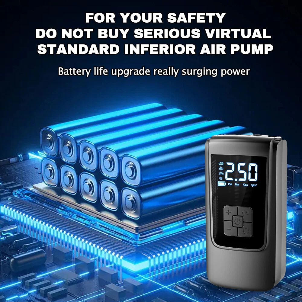 Store Categories Store Categories Other Product Description Features: Versatility: This digital air pump is not just for inflating tires, but also for charging devices, inflating sports equipment, powering car lights, and more. With its wide range of connections and accessories, it can meet various needs and provide versatile functionality. Efficient and Convenient: The car tire inflator utilizes advanced pneumatic technology, allowing for quick inflation of tires in just a few minutes. It is also highly portable, so you can carry it with you wherever you and use it whenever needed. Easy Operation: The smart air compressor features a digital display and user-friendly button controls, making it easy for users to operate and adjust the pressure accurately. Additionally, it comes with its own LED light for convenient nighttime operation. The screen and buttons light up when turned on, ensuring ease of use in low-light conditions. Safety Features: The 12V tire pump is equipped with a built-in intelligent chip that monitors tire pressure. It automatically stops inflation when the preset pressure level is reached, preventing over-inflation and potential safety hazards. It also has overheating protection for added safety. The inflation port is designed with anti-scalding measures, with temperatures reaching up to 120°C, and an internal sinking design to reduce the risk of burns. Premium Quality Materials: The mini tire pump is made from high-quality materials, ensuring durability and years of reliable use. It is also waterproof and dustproof, adding to its reliability and longevity. Specifications: Material: ABS Display: LCD display Working voltage: 12V Working current: ≤6A Piston diameter: 17mm Maximum atmospheric pressure: 0-150PSI Accuracy: ±1.5psi Air volume: 15L/min Continuous working time: 8-10min Type-C charging cable: about 80mm Charging time: 5-6h Usage time: 30min Length of air hose: 100mm/3.9inch Package Includes: 1 x Air Pump 1 x Inflation Hose 4 x Inflatable Nozzle 1 x Charging Cable 1 x Cloth Bag 1 x User Manual Note: 1. Due to the different monitor and light effect, the actual color of the item might be slightly different from the color showed on the pictures. 2. Please allow 1-2cm measuring deviation due to manual measurement. Payment Policy Shipping Policy Returns Policy Contact Us Payment Policy We accept pay ment via PayPal, DebitCard, Visa, MasterCard, Discover etc. Shipping Policy 1. We strive to ship all items within 1-2 business days of receiving payment. 2. Please make sure the correct Ship-To address is entered before checking out. Once the payment is completed, you may not be able to change the shipping address. 3. If there are any issue s with your order, including delayed delivery or loss, please don't hesitate to contact us. Returns Policy 1. We offer a 30-day free return policy for all purchases. 2. Please contact us first to arrange the return details for any items that need to be returned. 3. For any Ex change, Refund or Return, the item must be in its original condition, including the box, packaging, and all the accessories or gifts. Contact Us 1. Customer satisfaction is very important to us and our feedback rating reflects this satisfaction. If you have any question or concern, please contact us via eBay message. 2. We respond to all eBay messages as quickly as possible. There would be time difference, non-working hours or public holidays that have prevented us from making an instant response. Thank you for your patience and understanding. Copyright © 2023 Dianxiaomi