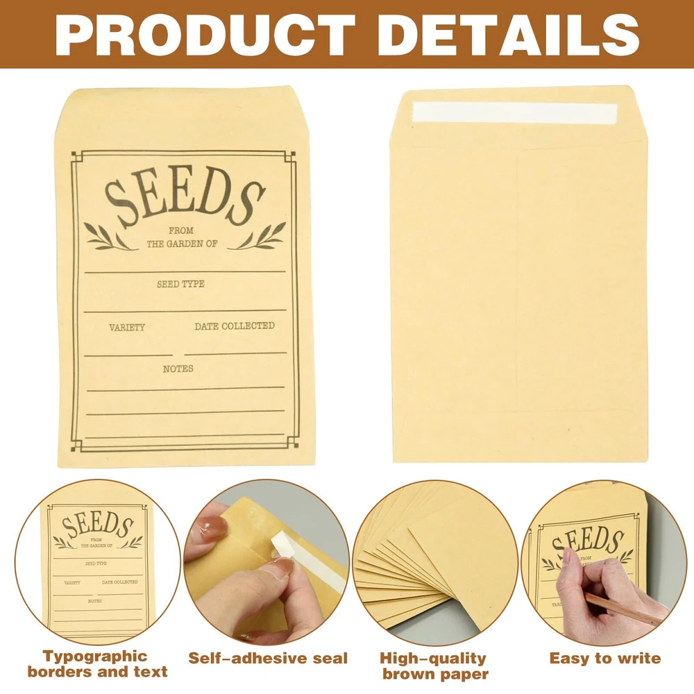 Features: ----Our seed envelopes are made of high-quality brown paper, trustworthy and sturdy, and not easy to break. The seed packets can keep the seeds in a dry and tidy environment. ----The front of these seed packet envelopes is designed with the seed type, type, collection date, and note slogans. You can write the seed information when placing the seeds. It can help you find the corresponding flower and vegetable seeds clearly and quickly. ----In addition to seed storage, these seed envelopes resealable can also help you store coins, coffee beans, nuts, buttons, stickers, and other small items. Specifications: Material: High-quality brown paper Color: Brown Size: 3.1 x 4.7 inches Package Includes: 150 x Seed envelopes 【Thoughtful Design】 The front of these seed packets envelopes is designed with the seed type, type, collection date, and note slogans. You can write the seed information when placing the seeds. The next time you use it, it can help you find the corresponding flower and vegetable seeds clearly and quickly. 【High Quality Material】 Our seed envelopes resealable are made of high-quality brown paper, trustworthy and sturdy, and not easy to break, the seed packets can keep the seeds in a dry and tidy environment, and you can use them for a long time. 【Easy To Use】 Our seed saving envelopes have a self-adhesive closure, put the seeds into the seed-saving envelopes, peel off the double-sided adhesive paper, fold and press to seal. There is enough space for you to write the seed information and complete the sealed storage of seeds. 【Wide Applications】 In addition to seed storage, these seed envelopes resealable can also help you store coins, coffee beans, nuts, buttons, stickers, and other small items. Seed packets can always keep your beloved thing clean and tidy it is a great storage tool. 【What You Will Get】 The package contains 150 brown paper seed envelopes. Seed bags measure approximately 3.1 x 4.7 inches. There is enough quantity for you to store seeds. If you are Unsatisfied with the product you received, please tell us, and we will solve the problem for you as soon as possible.
