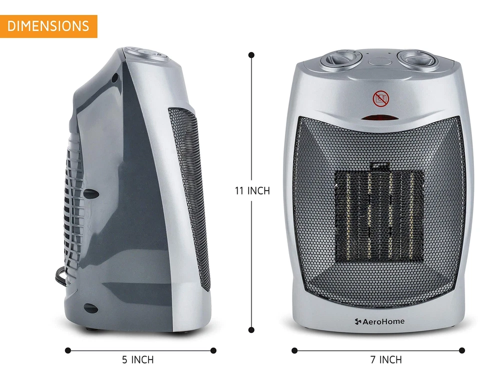 The perfect ceramic space heater for the home or office ✔ COMPACT: ( 11" tall x 7" wide x 5" deep) ✔ Lightweight 3.5 Lb – Portable and Easy to Move From Room to Room ✔ Easy to Operate: 3-Function Dial (1500W, 750W or Fan) ✔ Adjustable Thermostat Adjustable Thermostat, Quiet Fan Motor. ✔ SAFE: ETL Certified for Indoor Use with overheat tip-over protection ✔ EASY TO POSITION: a convenient carry handle and6-foot Long Electric Cord ✔ GUARANTEED – Purchase With Confidence: The Ceramic Space Heater is backed by our Money Back Guarantee
