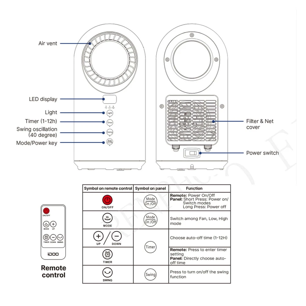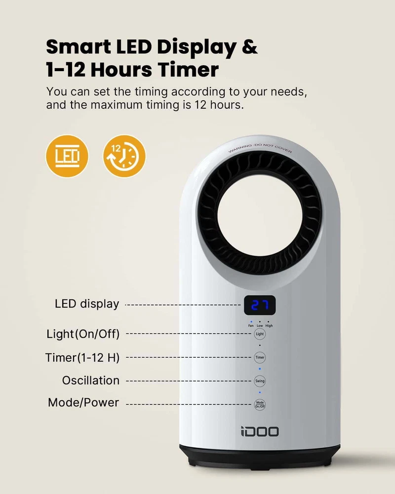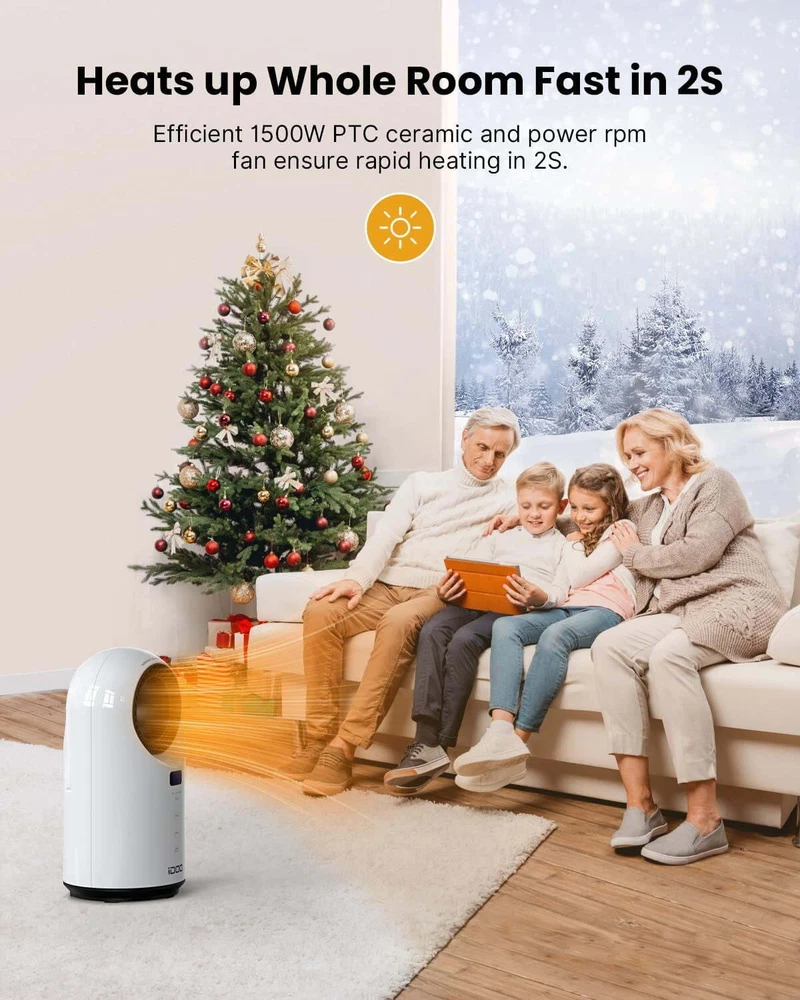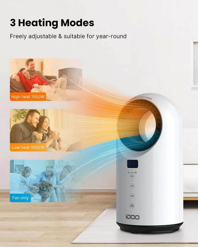 1500W Electric Ceramic Space Heater with Remote Large Room 300 Sq.ft White Heats up fast in 2S 3 Adjustable Heating modes (High/Low/Fan) Adjustable Thermostat from 40 to 95°f (5 to 35°c) 1500W Energy-efficient PTC ceramic heating with Thermostat ETL-Certified Safety & V-0 Flam retardant material 60° Oscillation & Uniform Heating Overheat protection sensor A whisper-quiet noise level(<45dB) Remote & Panel control A cool-touch safe exterior 12H automatic shutoff timer Space heaters with LED display Fashionable bass timing design, practical and decorative Self-regulating ceramic element Materials: ABS,PTC ceramic Portable Space Heater size: 7*14inch Space Heater weight: 4.85lb Power: 120V~60Hz Rated Power: 1500w/1000w/25w Working temperature: +5 ℃ to 35 ℃ Working humidity: Max85% Heating method: unique PTC ceramic lamination heating technology Heating Coverage: up to the large room(27m²/300 sq. ft) Package Content 1 iDOO PTC Space Heater 1 Remote Control (Includes 1 X CR2025 Battery) 1 User Manual Shipping/Fulfillment We offer FREE shipping to most States except for the following: California, Connecticut, District of Columbia, Massachusetts, Louisiana, Maryland, Mississippi, Tennessee, Washington, New Mexico, Illinois We use a selection of shipping services such as but not limited to: UPS, FedEx, USPS, DGM SmartMail Expedited, etc. We only ship to the lower 48 states, no APO/FPO addresses, or PO Boxes allowed. Local pickups and combined shipping options are not provided at this time. ORDER FULLFILLMENT Most items are forwarded to our supplier for processing, which will then be fulfilled through a distributor that is closest to your location. Th ese distributors may be names you recognize or sourced from smaller local operations. Return You can return a product for up to 30 days from the date you purchased it. Any product you return must be in the same condition you received it and in the original packaging. Payment We accept payment by any of the following methods: PayPal, GPay, Venmo, Visa, Mastercard, American Express, and Discover Feedback Customer satisfaction is very important to us. If you have any problem with your order, please contact us and we will do our best to make you satisfied. Contact Us If you have any queries, please contact us via eBay. We usually respond within 24 hours on weekdays. Please visit our eBay store to check out other items for sale! Thank you for shopping at our store.