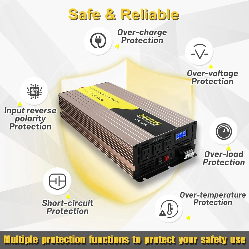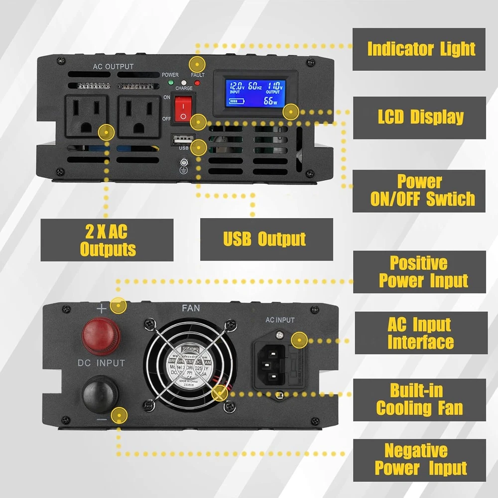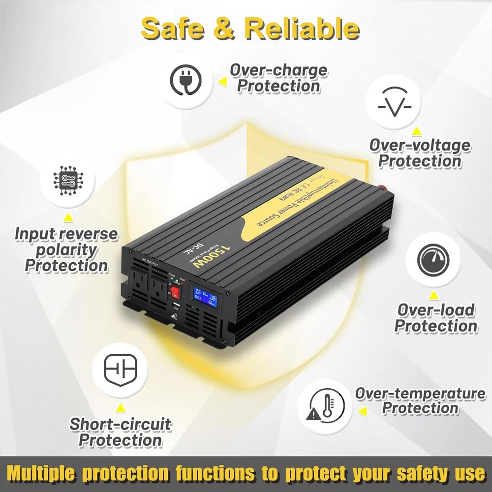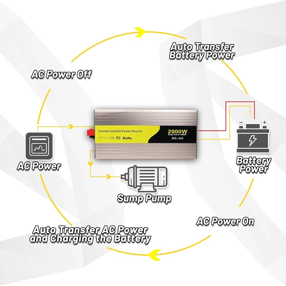 About this item Design for Basement Protection: Miumoon sump pump battery backup system are designed for basements to protect your home from flooding, When the power supply is normal, the pump is powered and charged automatically. When the power supply is cut off, it switches to battery power automatically, ensuring that your sump pump system operates smoothly and continuously. Whether it's a hurricane or heavy rain, the Miumoon sump pump battery backup system can keep your basement dry at all times. Excellent Performance: Miumoon sump pump battery backup system output power is up to 1500 Watt and output current can operate at a maximum current of 13.6 amps, it is easy to running both single and double pump systems, saving you valuable time and cost, Miumoon sump pump battery backup is ideal choice for handling basement sewage, and enjoy a clean, pollution-free environment with ease. Charging mode: 1500W sump pump battery backup system has a built-in 20A battery charger that supports fast charging for various battery types, trickle charging and the unit is suitable for deep-cycle batteries, AGM batteries is recommended and suitable for other deep-cycle battery types, but not for non-deep-cycle batteries. In addition, Miumoon sump pump battery backup have overcharge protection, your battery will not suffer any damage, which greatly extends your battery life. Safety Use: Miumoon sump pump battery backup has a LCD display on side, which allows you to clearly understand the battery and sump pump operating status. Additionally, It also has a built-in cooling system and overload protector, as well as multiple protection functions, including overheat, short circuit, low voltage, overcharge protection, etc., which not only improves the safety of use but also extends the equipment's lifespan. Easy to Install: Miumoon sump pump battery backup system requires no additional wiring, just assemble the AC and DC cable, it is a easy things. Multiple fixation modes, fixed hole on the side allow you flat placement or wall mounting. Miumoon sump pump battery backup system is your smart choice for easy and hassle-free installation