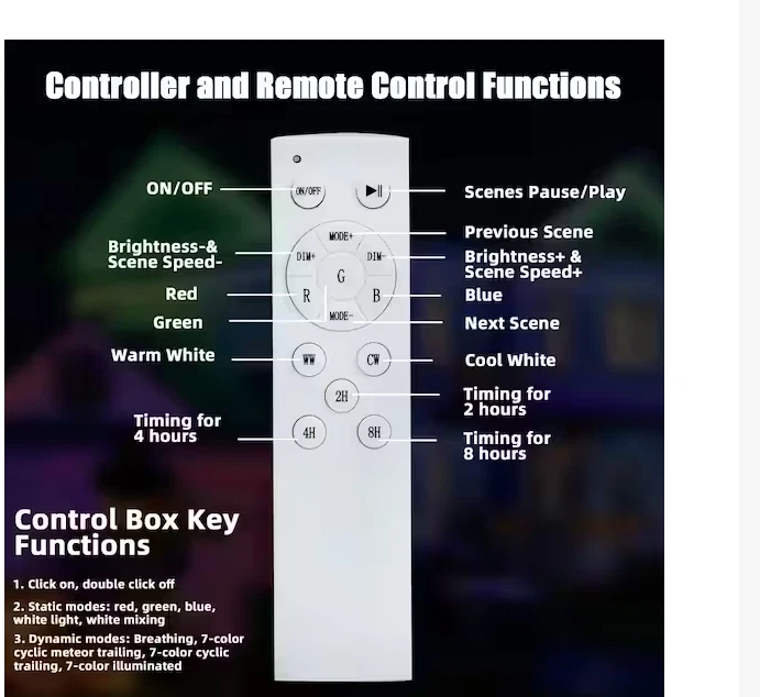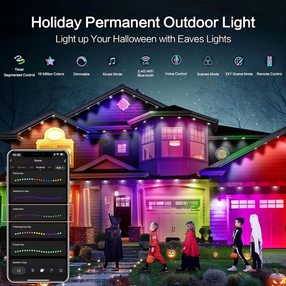 Permanent LED Outdoor Lights, RGB Outdoor Lights 150FT with 108 LED Eaves Lights Permanent LED Outdoor Lights, RGB Outdoor Lights 150FT with 108 LED Eaves Lights Same day send from GA warehouse. More than 200pcs stock in local warehouse,welcome to ask best price for bulks,thanks. FESTIVE RGB LIGHTING: Light up Halloween night with 16 million colors and 44 scene modes. Smart DIY Scene Modes Whether it's Halloween, Christmas, Thanksgiving, or other holiday decorations and accent lighting. WYZM Smart Outdoor Eave Lights can fulfill many of your house decorating needs. EYE-CATCHING LIGHTING EFFECTS: Unique lens design maximizes the brightness of each light for a 120° triangular lighting effect. For a stunning 18-inch wall wash effect, it is recommended that the lights be mounted 2-4 inches from the wall. OUTDOOR YEAR-ROUND AVAILABILITY: Made of UV-resistant materials for year-round outdoor decorations, the Outdoor Christmas Eave Lights feature an IP67 waterproof rating and an IP67 control box with a life expectancy of up to 50,000 hours of operation in weather conditions ranging from -4°F to 140°F (-20°C to 60°C). EASY INSTALLATION: The WUZM Outdoor Permanent Eave Lights have two easy installation methods: use the included VHB adhesive and clips, or drill holes with the included screws. However, before installing, it is recommended to clean the location to be installed, peel off the adhesive backing, then press each light firmly for 7 seconds, and finally secure the wires with the clips. (Please note: Cutting outdoor Christmas lights is not recommended for non-professionals). Amazing Permanent Lights for Outdoor and Indoor Under Eave Lights Crafted with great sealed waterproof technology, this all-weather soffit decorative light is designed to withstand the elements, ensuring safe outdoor use throughout the year. Indoor Decorative Lights These string lights are standout decorative accent suitable for enhancing indoor spaces with beautiful wall washing lights. REMOTE CONTROL: Smart control of permanent outdoor lighting, including timing, brightness adjustment, color change, etc., and DIY scenes to brighten up your Halloween Christmas Thanksgiving party. Payment Delivery details Return About us Feedback Payment Paypal only accepted Payment Instructions - You will be notified with an email about your purchase with the payment information. For Buy It Now item, an - immediate paymentis required (best offer items excluded). For Auction items, Please pay within 7 days, or eBay will open unpaid case for it. For order cancellation, please inform us within 7 days. Delivery details US warehouse,3-5 working days delivery. Germany warehouse,2-3 working days delivery. Australia warehouse,3-5 working days delivery. Should be ship from our factory in China if order from other country.4-5 working days delivery of effective shipping way with UPS,Fedex,DHL and USPS ect We do not accept P.O. BOXES - PLEASE PROVIDE A PHYSICAL ADDRESS Return 30-days return policy. Please contact us if have any question with your order , we accept 30days return and 24/7 customer service. About us High quality products,Excellent after sale service, Fast shipping and Save more. All product based on high power.We never stop doing improvement on our products and testing the functions. Safety Matters--High quality materials, Heatproof Tube, NO risk to catch fire. Adopting isolated power supply, Safe & easy to maintain and keeps long life span,good quality with affordable price Warranty & Customer Service-One year warranty, 30 days return. US/UK/DE warehouse and repair center are available. warranty is guaranteed. I am sure you will happy with our high quality and reasonable price products! Feedback 1.We reply on our reputation and customer satisfaction to succeed. Therefore,your feedback is extremely important to us.Please leave good feedback to us if you are satisfied with our goods and service. 2.We care about valued customers,and will always do our best to help you. 3.Please give us an opportunity to reserve any problem.We understand the concerns and frustrations you may have,and will do our best to solve the issues. 4.Please email us before leaving any negative feedback or opening any dispute on the site.We will help you solve the problem.
