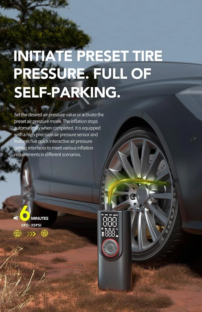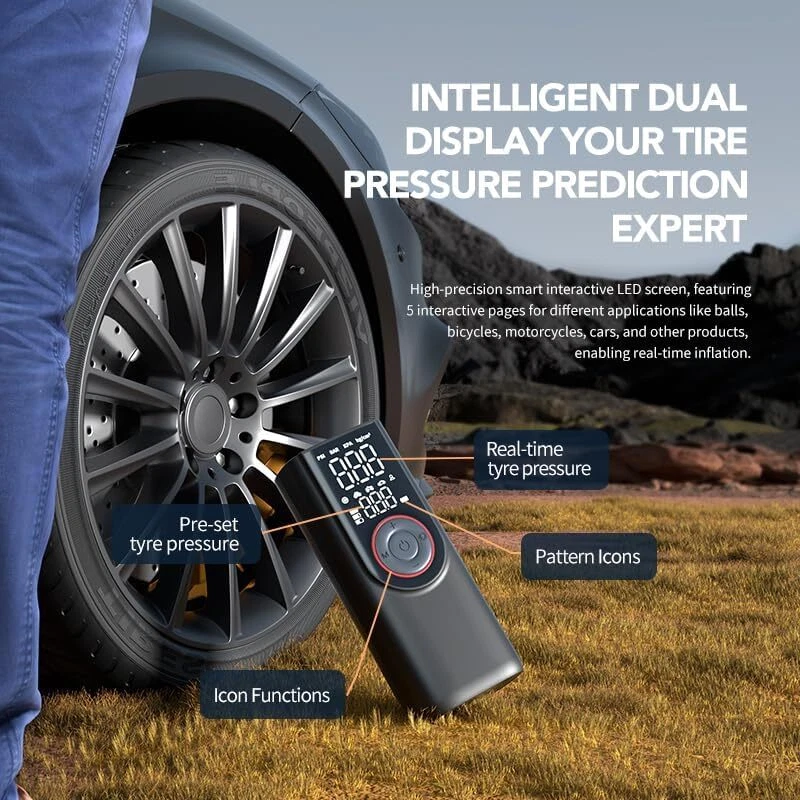 This portable tire inflator is a lifesaver! The 150PSI power inflates car, bike, and motorcycle tires in minutes—no more gas station stops. The bright LCD screen shows real-time pressure, and the 10,000mAh battery lasts forever. Super compact, super fast, and so easy to use—just press a button. Total game changer for road trips!