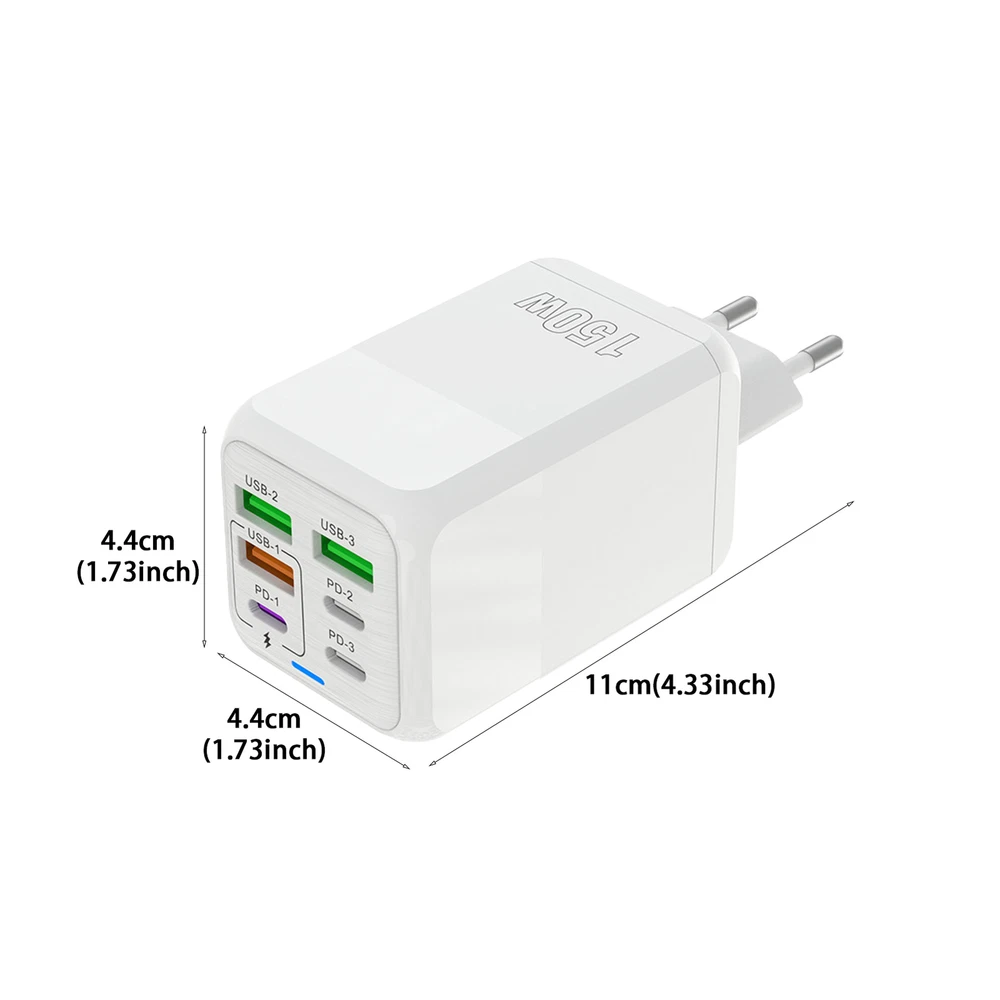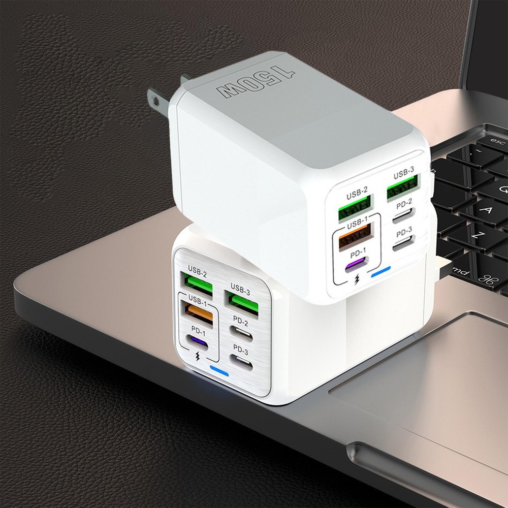 150W Fast Wall Charger with 3 USB Ports & 3 PD Ports Universal Adapter