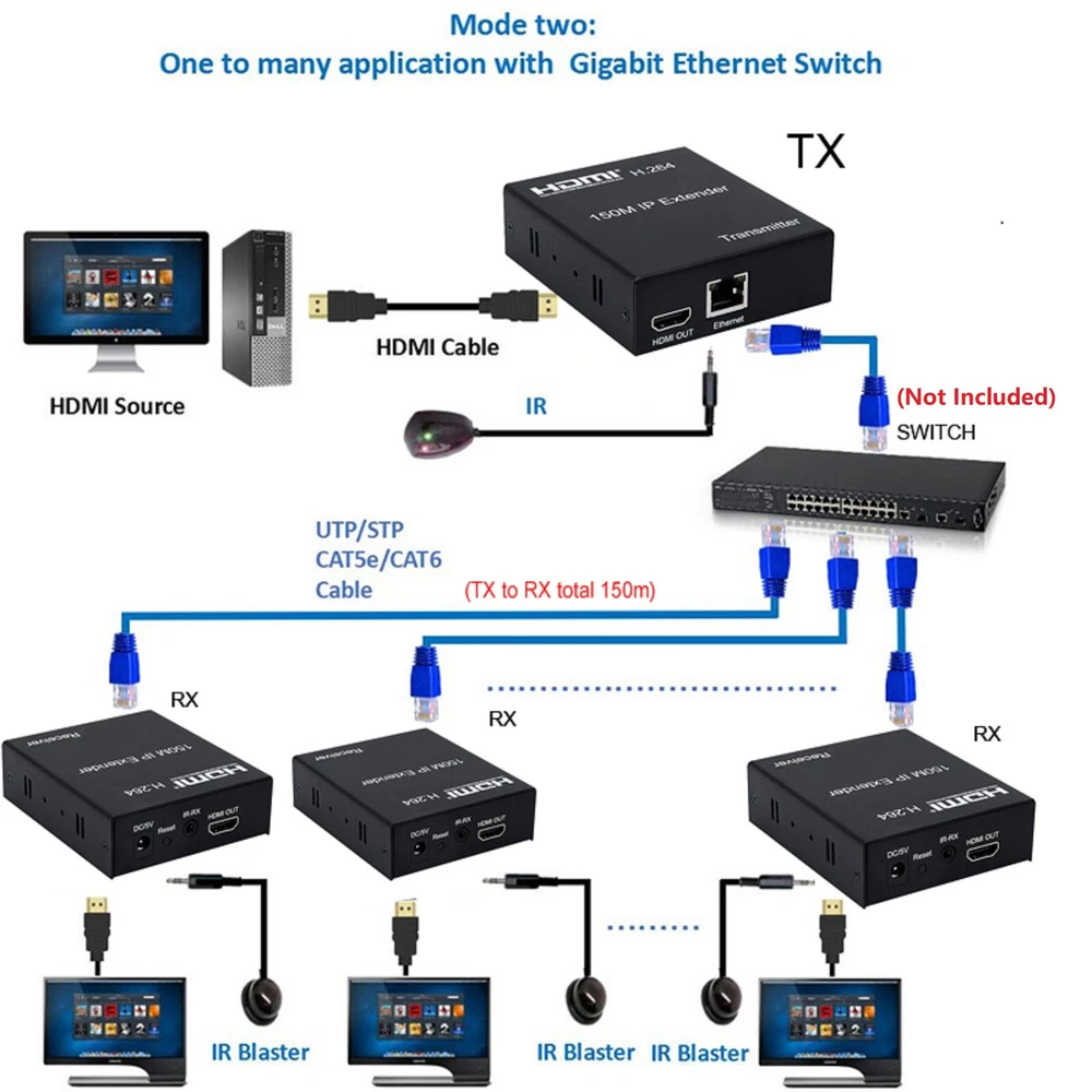 SAFE & SECURE SHOPPING 100% SATISFACTION GUARANTEED FAST SHIPPING Store Categories Store Categories You may also like 150m 1080P HDMI Network Extender Over Single Cable CAT5E/6 Ethernet RJ45 t Product Description 150M IP Hdmi Extender IR Over Cat5e Cat6 Rj45 Ethernet Cable 1080p HDMI Splitter H.264 Transmitter Receiver For HDTV DVD PS3 Specifications: HDMl version: HDMI1.3 Support HDTV Resolutions: 480p,720p,1080p Support max up to Resolution: 1920*1080p@60Hz Audio: Stereo, 32kHz, 44.1kHz, 48kHz lR remote control: 38 KHz, NEC code Power Supply: DC5V/1A The Max Power consumption: HDMl Sender: 3W, HDMl Receiver: 3W Operating Temperature: 0℃-45℃ Operating Humidity: 10%-80%RH(no condensation) Storage Temperature: -10C-70℃ Storage Humidity: 5%-90%RH(no condensation) Size(L-W-H): 93*79*27mm Weight: 228g x 2 Features: 1. Synchronous audio and video transmission 2. Infrared Radiation pass-through compatible, allow source device torecognize remote commands at a secondary location, supports standard38kHZ lR devices. 3. Compression technology: lt can effectively improve transmissionefficiency and ensure the flow of playback. 4. Long distance transmission Smooth and HD Resolution. 5. Wide application range: 150M HDMl extender over IP is used in audio-visual conference, command and controlcenter, ticketing platform, home theater, multi-media teaching, conference system andso on. 6. Support lR remote control. 7. The design of pure hardware, plug and play, no need for additional software. Connection and operation 1. Connect the HDMl source (such as DVD, PS3,STB ) to the "HDMI IN" of transmitter by HDMl cable. 2. Connect the“HDMl out”of Receiver to HDTV display by HDMl cable. 3. Connect the Transmitter and Receiver with one cat5e/6 cable (recommend).the furthest distance is 150M. 4. Connect the "IR receiver " into "IR-RX" port on receiver,and "IR transmitter" into the "IR-TX" on transmitter,and make sure the lR transmitter aim at lR port of the source 5. Connect two pieces of 5V power supply to the transmitter and receiver, and power on the HDTV display and HDMI source. Package contents: 1x Transmitter 1x Receiver 2x 5V/1A Selectable Power adapter 2x lR cable 1x User Manual Shipping Returns Contact Us Payment Shipping We ship most of our orders within 24 hours, and may up to 48 hours. If you want faster shipping way, please contact us before making a payment. Sometimes due to problems with our transportation company system, your shipping information may be delayed to update. We recommend that you try again after 3-4 days. If you still haven't checked the shipping information, you can contact us via ebay message. Returns 1. 30 days warranty from the purchased date. Please contact us via email before returning the defective item. 2.Our warranty does not extended to any product that are physically damaged or that are not under normal operating conditions as result of misuse or improper installation on the buyer/user's part. 3.Return items should include the original packaging and all accessories. buyers MUST contact us for the returning address. 4.In all cases, buyers pay shipping fees at their own cost to return products for exchange or refund. We will be responsible for the postage of replacements. Refund will be made upon receipt of the returned item. Contact Us Pls contact us if you have any problems,we will try our best to solve for you Payment We accept all verified payment from eBay. Copyright © 2022 Tongtool