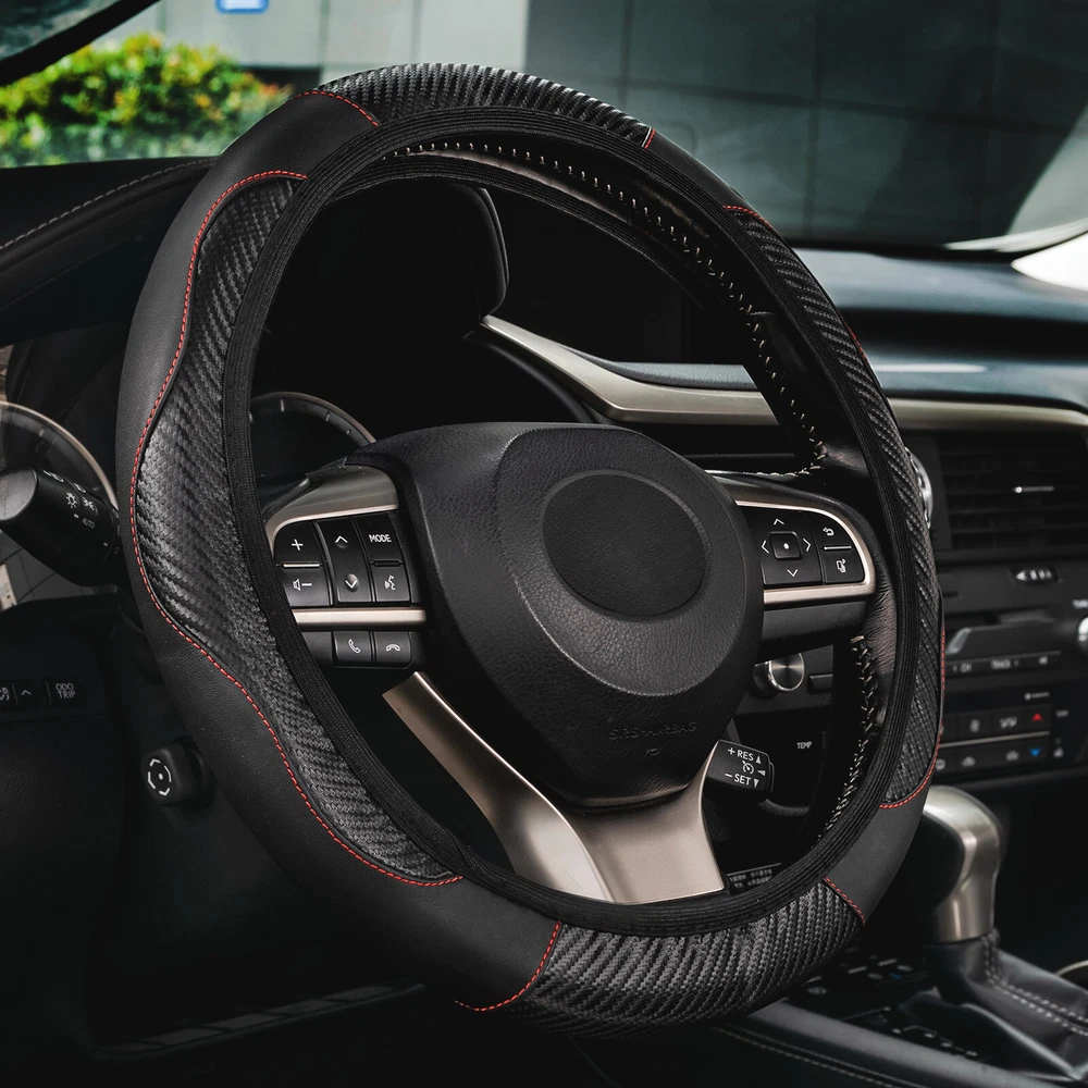 15''/38cm Universal Steering Wheel Cover Black Leather Anti slip Car Accessories Product Name: carbon fiber pattern steering wheel cover Material: Elastic Fabric + Pu Color:black & red Size diameter: 36-38.5cm / 14"-15.5” Specification: 1.Carbon fiber texture, fashion, generous, elegant. 2.Soft Elastic Fabric with the texture, good handle and very comfortable. 3.good elasticity and durable. 4.No distortion, No fade and No problem under extreme temperatures. Package included: 1 X Steering wheel cover Note: Due to lighting and shooting reasons, the color may be deviations, please understand We accept Paypal and majoy credit cards payment When you place an order, please choose a shipping method and pay for the order including the shipping fee within 48 hours. And please make sure your current address correct after your payment within 1-2 days! About Shipping 1. Receiving time = Processing time + Shipping time 2. Processing Time: Around 1-3 Days 3. Shipping Time: 15-26 Days By Air Mail 3-10 Working Days By Express We do not guarantee delivery time on all international shipments due to differences in customs clearing times in individual countries, which may affect how quickly your product is inspected! Important Notice >Transit Time Is Best Estimated But NOT Guaranteed As Transit Time Varies >Orders may be subject to import taxes, customs duties and fees levied by the destination country.Additional charges for customs clearance must be fulfilled by the recipient; We no control over these charges, nor can we predict what they may be. 100% Customer Satisfaction Is Our Top Priority For Any Reasons You Are Not Satisfied With The Products Within 30 Days Of Purchase, Return Or Exchange Can Be Issued, Customers Are Responsible For The Return Shipping Cost And Subsequent Replacement Shipping Cost For An Exchange Item. Replacement Item Will Be Processed And Shipped Upon Return And Inspection Of The Original Item. Return Items Must Be In Their Original Packaging And Unused Condition, Or They Will Be Rejected And Sent Back To You. Due To The Nature Of The Products We Sell, We Carefully Inspect All Packages Prior To Shipping. All Of Our Products Are Sold As Brand New, All Damaged Products Are Considered Damaged During Transit. If You Received A Damaged Or Broken Item, Please Save All Packaging Material And Paperwork And Contact Us Immediately So We Can Help You With The Damage Claim With The Shipping Carrier. No Claims Will Be Honored After 14 Days Upon Item Receive. Digital Photos Will Be Required For All Cases. All Products Come With A 60 Days Limited Warranty Against Manufacturer’s Defects. No Exchange Will Be Issued On Products That Have Been Damaged In Any Way. Warranty Does Not Applied To Improper Installation, Water / Fire Damage, Modification, Or Any Acts Of Nature . If you have any question or concern, please feel free to contact us via eBay massage directly, we will get back to you as soon as we are available ATTENTION : We do not answer any emails over the weekend Please send message to us.We will reply your message in 24 hours, Our working time: 9:00 AM-22:30 PM (GMT+ 08:00 Beijing) 1:00 AM -14:30 PM (GMT+ 00:00 London) 19:00 PM-08:30 AM (GMT- 06:00 USA/Canada) Why Choose us? 1. A tremendous variety of products-- With over 200,000 items in stock, we are one of the world's largest online stores in automotive aftermarket product sector. You'll have more choices than what you can ever imagine. What's more, we're updating with over 100 new arrivals per month! 2. Affordable prices -- we are offering the latest car parts and accessories for almost 20 years, we're always keeping up with the newest trends, while most importantly, making the prices as low as we can. 3. Free worldwide shipping -- Yep, you won't believe that you'll enjoy free worldwide shipping with us (unless stated otherwise),it's not a joke,but an absolute truth. 4. No-question refund and return-- Anything wrong issuing quality and breakage can be returned or refundable. Product Name: carbon fiber pattern steering wheel cover Material: Elastic Fabric + Pu Color:black & red Size diameter: 36-38.5cm / 14"-15.5” Specification: 1.Carbon fiber texture, fashion, generous, elegant. 2.Soft Elastic Fabric with the texture, good handle and very comfortable. 3.good elasticity and durable. 4.No distortion, No fade and No problem under extreme temperatures. Package included: 1 X Steering wheel cover Note: Due to lighting and shooting reasons, the color may be deviations, please understand PAYMENT We accept Paypal and majoy credit cards payment When you place an order, please choose a shipping method and pay for the order including the shipping fee within 48 hours. And please make sure your current address correct after your payment within 1-2 days! SHIPPING About Shipping 1. Receiving time = Processing time + Shipping time 2. Processing Time: Around 1-3 Days 3. Shipping Time: 15-26 Days By Air Mail 3-10 Working Days By Express We do not guarantee delivery time on all international shipments due to differences in customs clearing times in individual countries, which may affect how quickly your product is inspected! Important Notice >Transit Time Is Best Estimated But NOT Guaranteed As Transit Time Varies >Orders may be subject to import taxes, customs duties and fees levied by the destination country.Additional charges for customs clearance must be fulfilled by the recipient; We no control over these charges, nor can we predict what they may be. Terms of Sale 100% Customer Satisfaction Is Our Top Priority For Any Reasons You Are Not Satisfied With The Products Within 30 Days Of Purchase, Return Or Exchange Can Be Issued, Customers Are Responsible For The Return Shipping Cost And Subsequent Replacement Shipping Cost For An Exchange Item. Replacement Item Will Be Processed And Shipped Upon Return And Inspection Of The Original Item. Return Items Must Be In Their Original Packaging And Unused Condition, Or They Will Be Rejected And Sent Back To
