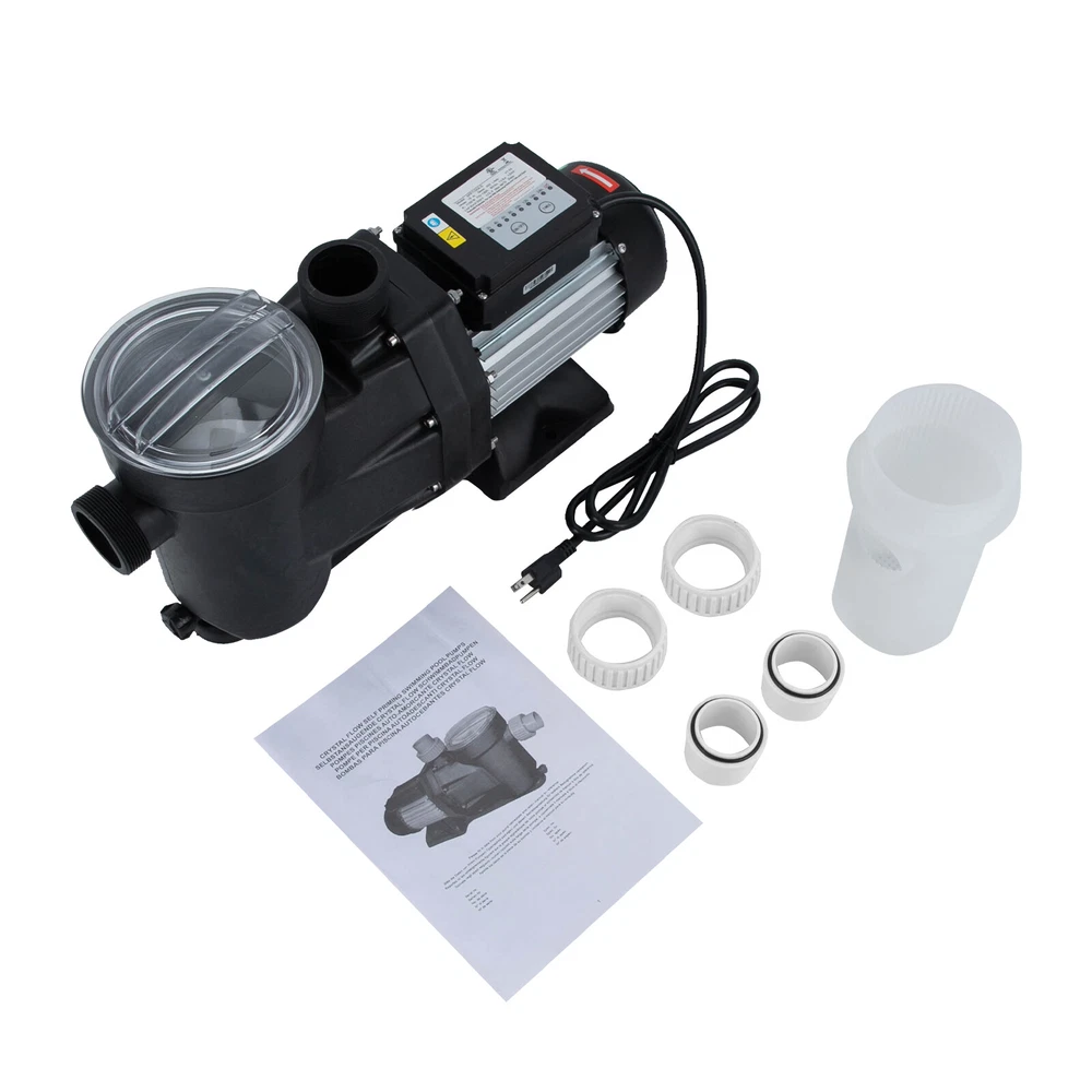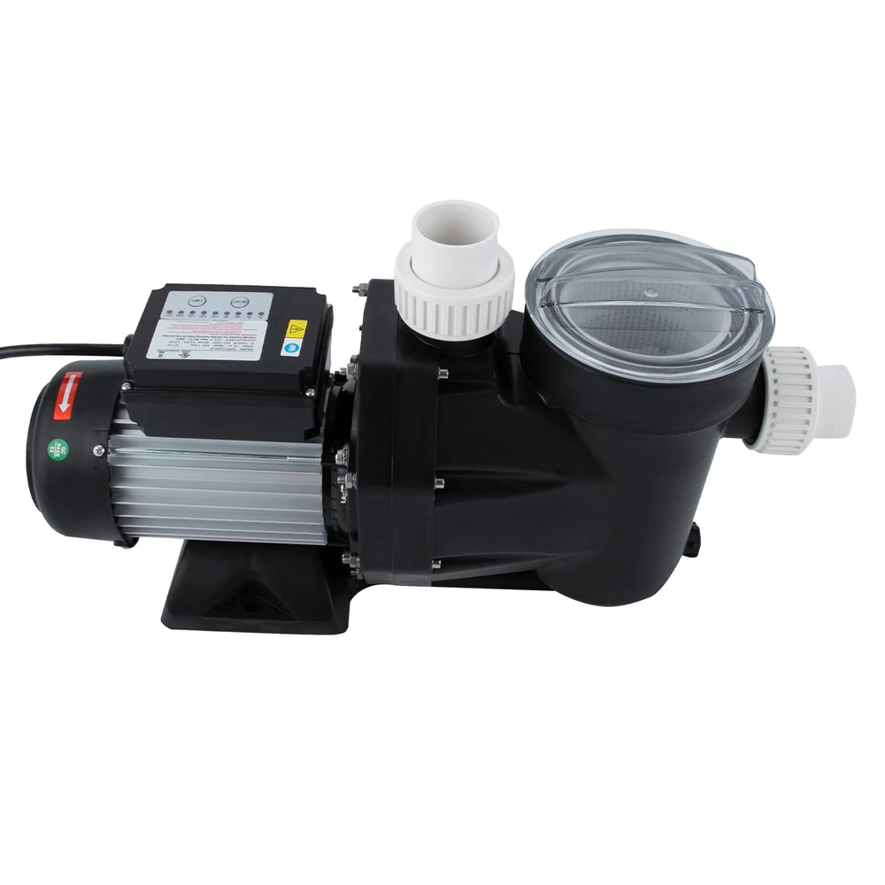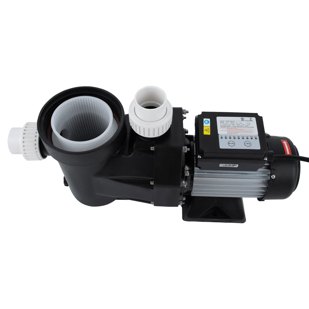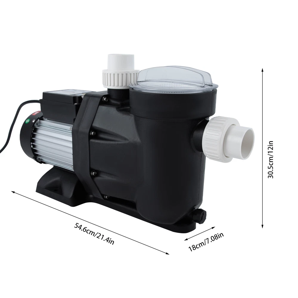 1.5HP Ground Pool Pump 105GMP 52ft Single Speed Swimming Pool Pump w/ Timer 110V Description Our elaborate 1.5Hp single voltage pool pump is designed for home and small commercial pools. It is equipped with a motor with a powerful 1.5HP to ensure the efficient operation of the pool water circulation mechanism. Whether it is in daily maintenance or deep cleaning, it can handle it easily and create a clear swimming environment for you. Key Features Made to Last: This product consists of a high-quality copper wire motor and PP pump body, which is sturdy and durable, not easy to corrode and rust, ensuring a long service life High Efficiency: The 1100-watt pure copper motor delivers a powerful 1.5Hp power, giving it a maximum flow rate of up to 422.68qt/min, which greatly increases the rate of water circulation, helping you clean your entire pool quickly. Large Delivery Lift: With a maximum head of 52.49 ft, the pump is designed for home and small commercial pools, saving time and cost on manual transportation. Single-voltage Compatibility: This product is designed for single-voltage environments, avoiding complex circuit modifications and fitting into most home power grids. Timing Function: The built-in 24-hour programmable timer starts the pump when you need it. When you select the run time, the pump will run for a set number of hours at the current time of day. High Safety: The product has built-in overheating protection with IPX5 protection class, which reduces safety risks and extends its service life. Simple Operation: This product is easy to operate, you just need to plug it in, set the program and it will run automatically! Easy Assembly: Simple structure, complete accessories, and detailed assembly illustrations help you finish the installation quickly and use it in a short time. Effortless Cleaning: It has a smooth surface and an open structure, so you only need to wipe the dust or residue with a towel. Details Long Power Cable: The 4.92 ft power cable reduces usage restrictions and further protects your safety. Clear Lid: It is convenient for you to check the filtration at any time so you can determine when the pool needs to be cleaned. Stable Base: It increases the force area with the ground to ensure the stability of the product. Application This product is suitable for home pools, swimming pools, hot tubs, and spas, etc. Specification Material: Copper Wire, PP Model: SPP1100A-D Color: Black Assembly Required: Yes Mounting Type: Floor Mount Protection Class: IPX5 Noise: About 70dB Plug Type: US Standard Timing Range: 2-24h Hmax: 16m/52.49ft Qmax: 400L/422.68qt/min Power: 1100W Voltage: 110-120V 60Hz Current: 11.5A Motor: 1.5HP Pure Copper Wire Motor Max: 50℃/122℉ Inlet & Outlet: G2 1/4 Use: Indoor & Outdoor Power Cable Length: 1.5m/4.92ft Product Length: 546mm/21.5in Package Size: 60*35.5*20.5cm/23.62*13.98*8.07in Gross Weight: 12.1kg/26.68lbs Package Included 1* Pool Pump 1* English Manual Other Accessories for Assembly Notes Please read the operating manual completely before use. And pay particular attention to the safety instructions included. Please note that before the water pipe is installed, the adapter must be installed to the water pump outlet and inlet. Put the nut on the inner connection, then connect the pipe with glue until the glue sticks to the pipe before screwing it to the water pump. Please note that this product can only be connected to a grounding-type receptacle protected by a ground-fault circuit interrupter(GFCl). To reduce the risk of electric shock, install at least 10 feet from the inside wall of the pool and never use an extension cord. This product is intended for use with permanently installed pools only and is not intended for use with storable pools. Please allow the slight color difference caused by the shooting light and 1-3cm error due to manual measurement, and make sure you do not mind before ordering. Payment Delivery details Terms of sales About us Contact us Payment We accept ebay payment 。 Fees such as import duties, taxes are not included in the item price or shipping costs. These charges are the buyer's responsibility. Delivery details Shipping: 2-9 working days to: USA Terms of sales We maintain high standards of excellence and strive for hundred percent customer satisfaction. Feedback is very important to us. We hope that you contact us immediately before you give neutral or negative feedback, so that we can address your concerns. It is impossible to address issues if we do not know about them! About us Your satis faction is our ultimate goal. We work hard to earn your trust and future business. Our certified technicians have tested each item before shipping. The unit comes with 1 year limited warranty on all manufacturing defects. a) If you receive a defective item, you may return it or ask for a discount. Please contact us within 14 days after you receive the package. b) What you returned must be intact and in its original packaging as re? u. Customer is responsible for shipping costs of the returned item. c) We will cover the cost of shipping back t with the shipping rate indicated in the registration page. We will send you a new unit or refund the full payment you paid. Thank you. Contact us Business Hour Business Hour: Monday To Friday: 8:30 AM to 5:00 PM (Beijing China time) Due to time zones, our reply to your questions may not be immediately. But within above working time, we will reply your email within 24 hours. If it's non-workdays, please kindly be patient and wait till Monday. Please contact us with ebay message. Please feel free to contact us if you have any questions. Monday To Friday: 8:30 AM to 5:00 PM (Beijing China time) Due to time zones, our reply to your questions may not be immediately. But within above working time, we will reply your email within 24 hours. If it's non-workdays, please kindly be patient and wait till Monday. Please contact us with ebay message. Please feel free to contact us if you have any