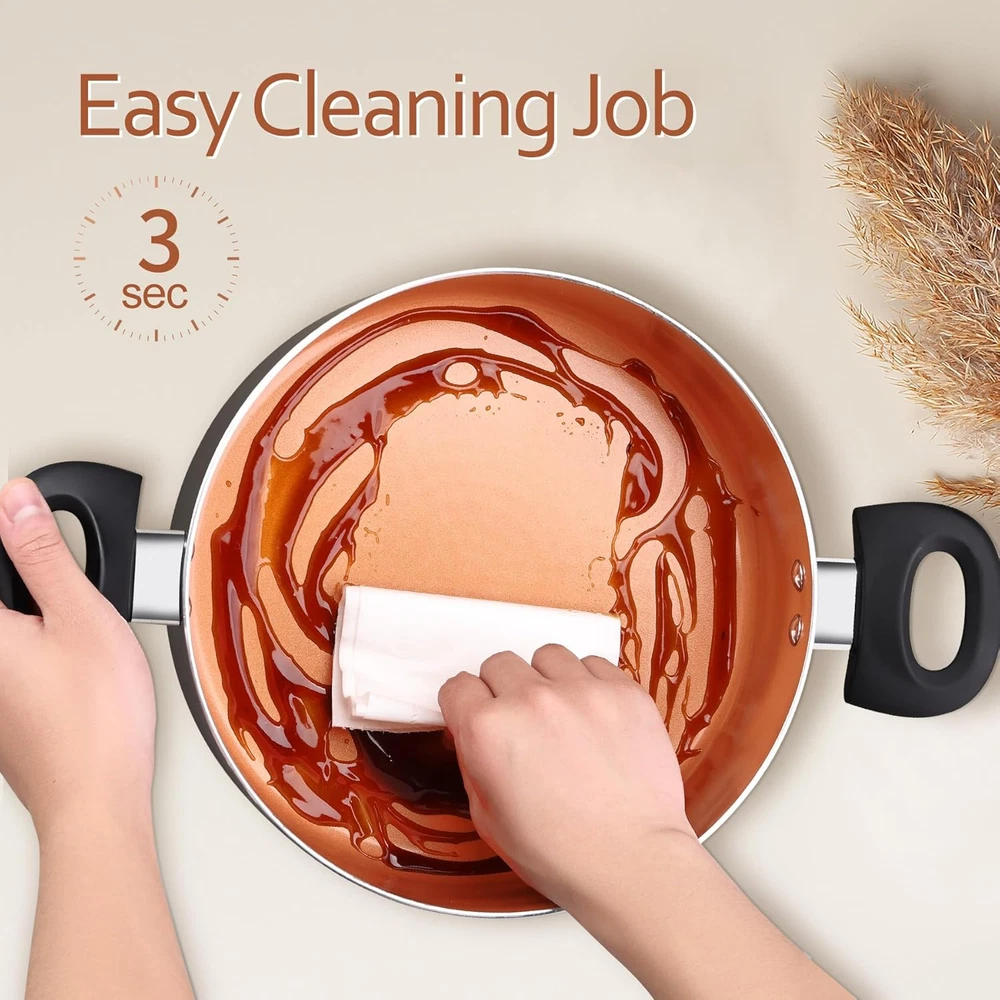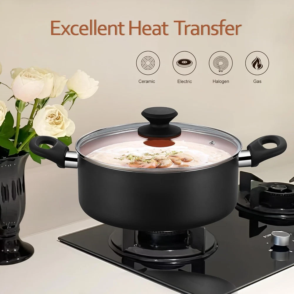 Absolutely love this ceramic cookware set! The nonstick coating works like a dream—food slides right off without any oil. It heats evenly and cleans up in seconds, making cooking so much easier. The set has everything I need, from frying pans to saucepots, and the sturdy construction feels high-quality. Perfect for gas and electric stoves, though it won’t work on induction. Healthier cooking with no toxic chemicals, and the sleek design looks great in my kitchen. Highly recommend for anyone wanting hassle-free, everyday cooking!