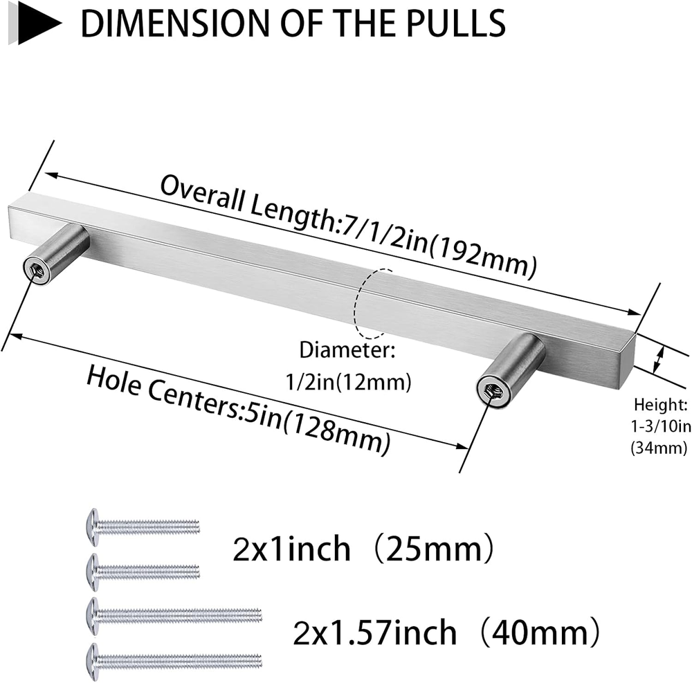 Store New Arrivals Add to Favorite View Feedback Contact 15Pck Brushed Nickel Cabinet Pulls Kitchen Cabinet Handles Modern Drawer Pulls Square T Bar Cabinet Pulls for Cupboard,5In Hole Centers Description Item model number LSJ22BSS128-15Units CA Special Feature Easy to Install Number of Items 15 Theme Modern Batteries Included? No Unit Count 15 Count Room Type Kitchen Finish Brushed Exterior Finish Stainless Steel Material Stainless Steel Handle Material Stainless Steel Package Type Standard Packaging Metal Type Stainless Steel Specific Uses For Product Cupboard, Cabinets, Drawer Item Package Quantity 15 Indoor/Outdoor Usage Indoor Batteries Required? No Item Weight 2.55 pounds Size 5 Inch Hole Centers Special Features Easy to Install Style Compatible,Modern Handle Type Pull Handle Part Number LSJ22BSS128-15Units CA Color Brushed Nickel Hand Orientation Ambidextrous Center To Center Spacing 5 Inches Shape Arch & Bow Finish Type Brushed Included Components Screw Product Dimensions 7.48"L x 0.39"W Number Of Pieces 15 ☀ Measurement: Hole centers: 5inch(128mm); Overall length:7-1/2inch(192mm); Height: 1-3/10inch(34mm); Width: 1/2inch(12mm), Please measure your cabinet or old cabinet pull hole centers carefully before purchase. ☀ Package Include: 15pack 5in cabinet pulls 5in brushed nickel which is made of Stainless Steel,each pull matched two size screws (1 inch & 1.57 inch). ☀ Widely Compatible: Modern drawer pulls, suitable for kitchen cabinet, cupboard, dresser drawers, closet, wordrobe, wooden furniture and so on. ☀ Easy Install: Drill holes at the place where you want to install kitchen cabinet hardware according to the hole center,then pass through the screw from the back of the board and tighten it to the cabinet handle. ☀ Excellent Service: Best quality and service is our goal, If you are not satisfied with your purchase, please . We promise to leave you without any worries, please buy with confidence. Product Description Goldenwarm Home Improvement Goldenwarm cabinet pull has become a fashionable and practical household hardware, widely used in various household appliances such as furniture, cabinets, drawer and door. More and more customers accept and would like to replace cabinet pulls.DIY furniture becomes a cost-effective, fun and popular lifestyle. Goldenwarm is a professional sellers of cabinet hardware. We offer handles and knobs in many styles, sizes and colors.You can always pick out what you like. High Quality This kitchen handware handles are made of high quality stainless steel material, which is durable and not fade. Elegant Design Multifunction Easy Install How to choose the right size handle according to your own cabinet? Small size handles and knobs: 3-inch to 3-3 / 4-inch small size handles or knobs are recommended for dresser drawers, bedside cabinet drawers, and kitchen cabinet doors. Standard cabinet: 4-5 "handle. Kitchen, bathroom, cloakroom usually have standard drawer size, choose to install the effect is better. ABOUT US We offer the best prices around on high quality products. Our E-store includes media such as books, movies, music and games while offering electronics, toys, sporting apparel, clothing, tools, general home, garden items and more. SHIPPING We are always working hard to ensure your package arrives as soon as possible. Please understand that some factors like weather, high postal traffic, and the performance of shipping companies are outside of our control. We offer free shipping to the lower 48 states and ship within 2 business days of payment, usually sooner. We do not accept P.O. Boxes. Please provide a physical address. For shipping outside of the continental USA, we only use eBay's Global Shipping Program.The item is shipped to KY and then sent to the rest of the world. International customers are responsible for all duties and taxes. Continue to check out in order to calculate costs for shipping the item to your country. Messages regarding eBay's Global Shipping Program MUST be directed at eBay EXCLUSIVELY. RETURNS We offer a 30-Day Return Policy on items which you are not completely satisfied with. You have the option for a full-refund or an exchange of the item. No returns are available on items shipped outside of the USA. PAYMENT We accept PayPal. CONTACT US This page content is yet to come Please ad us to your favorite seller and visit again later Thank You CUSTOMER SATISFACTION We try our very best to make sure every customer is completely satisfied. If there's a problem, message us! We're happy to help. WE ACCEPT Copyright © 2021 AutoDS. | All Rights Reserved