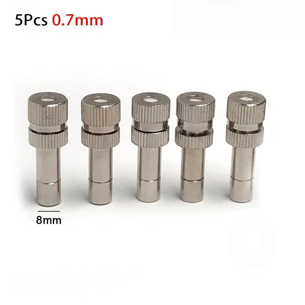 1/5Pcs 8mm Atomizing Misting Nozzle Water Irrigation Sprinkler Spray Nozzles Material: Brass nickel plated + Plastic Brand New and High Quality Quantity: 1Pcs/5Pcs Color: Show as picture Connection size: 8mm Nozzle Size: 0.15mm, 0.2mm, 0.3mm, 0.4mm, 0.5mm, 0.6mm, 0.7mm, 0.8mm Features: - Using high quality materials, high quality manufacturing process, strong and durable, good service life. -This atomizing nozzle adopts a quick-connect design for easy installation and removal. - This sprayer is made of copper and galvanized, so it is durable and not easy to break. This misting nozzle is built to last and is a good choice for replacing worn or damaged ones. - This spray nozzle is designed to spray a fine mist that can water plants and cool greenhouses. Suitable for home gardens, patios, patios, lawns, conservatories and more. Notice: 1. The real color of the item may be slightly different from the pictures shown on the website caused by many factors such as brightness of your monitor and light brightness. 2. Please allow slight manual measurement deviation for the data. Thank for your understanding. 3. 1cm=0.39''. Package Included: 1x/5x Spray Nozzles * Please make payment asap, then we can arrange shipment for you asap * Item will be sent within 1-2 days of payment verification. * We appreciate your patience and allow sufficient time for delivery. Please feel free to contact us if you don't receive your package ! * We will carefully test every item before shipment.The quality is guaranteed! * Any questions, please contact us via eBay message, In our working hours will be resumed within 48 hours. * If you are satisfied with our service, please kindly leave us a positive feedback and give us the Detailed Seller Rating with all "5 stars" in very area. * Our aim is to provide Top Level Customer Service, your recognition will encourage us greatly and serve you better. We strive to keep all our customers satisfy. * We greatly appreciate your POSITIVE feedback. Please do NOT leave negative feedback without asking for help. Thanks! * You can contact us through email , We will reply you as soon as possible !