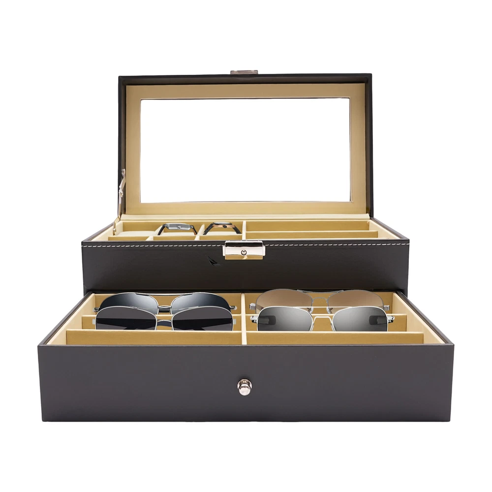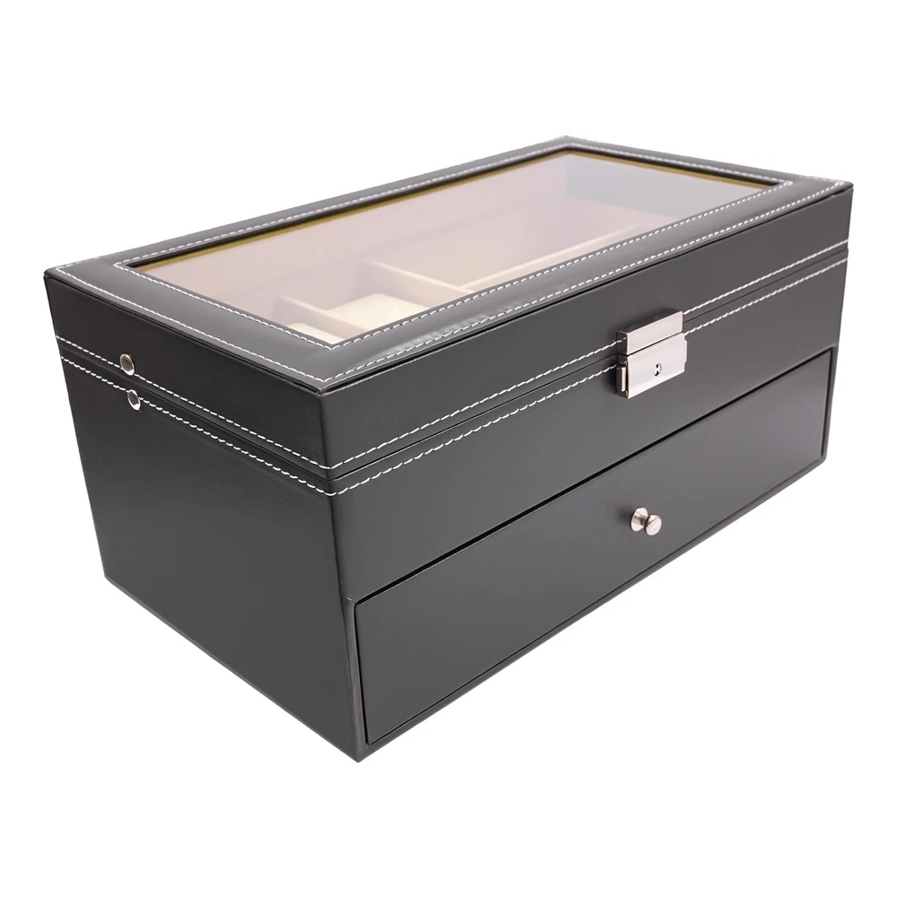 Product Features: - High Quality Pu Jewelry Box with Attractive Appearance,Simple Structure,Fine Workmanship and Sturdy Construction - Metal Lock,Black High Grade Pu Surface,Two Levels,First Level Includes 6 Removable Velvet Pillows and 3 Pairs of Glasses,Second Level Includes 6 Separate Compartments to Keep Your Sunglasses and Glasses Organized - It's Divided into Plenty of Unit Space Which Are Easy to Clean and Maintain,It Will Keep Your Watches and Eyeglasses & Sunglasses Securely - This Elegant Jewelry Case Allows You to Show Your Glasses and Watch and Other Jewelry While Protecting Them Away from Dust,Fingerprints,Scratches and Thieves - Clear Glass Top Gives You a Open View and You Can Find Your Favorite Treasure in Seconds with This Unique Jewelry Box.perfect for Home and Business welcome to my store! Product Features: - High Quality Pu Jewelry Box with Attractive Appearance,Simple Structure,Fine Workmanship and Sturdy Construction - Metal Lock,Black High Grade Pu Surface,Two Levels,First Level Includes 6 Removable Velvet Pillows and 3 Pairs of Glasses,Second Level Includes 6 Separate Compartments to Keep Your Sunglasses and Glasses Organized - It's Divided into Plenty of Unit Space Which Are Easy to Clean and Maintain,It Will Keep Your Watches and Eyeglasses & Sunglasses Securely - This Elegant Jewelry Case Allows You to Show Your Glasses and Watch and Other Jewelry While Protecting Them Away from Dust,Fingerprints,Scratches and Thieves - Clear Glass Top Gives You a Open View and You Can Find Your Favorite Treasure in Seconds with This Unique Jewelry Box.perfect for Home and Business Use,and a Wonderful Gift Idea. Product Specification: - Material: High Grade Pu ,Medium Density Fiberboard - Window: Glass - Color: Black - Product Dimensions (L X W X H): 13.18" X 7.67" X 6.1" (33.5 X 19.5 X 15.5 Cm) First Tier: - Watch Slot Size (L X W X H): 3.1" X1.8" X 1.5" (8 X 4.5 X 3.8 Cm);Slot Size (L X W X H): 6.2" X 2.3" X 1.6" (15.7 X 5.8 X 4.1 Cm) Second Tier: - Slot Size (L X W X H): 6.2" X 2.3" X 1.6" (15.7 X 5.8 X 4.1 Cm) Suits for Storing Watches,Glasses,Jewelry,Cuff Links,Spare Links,Rings,Earrings,Necklaces,Etc Packaging List: - 1 X Jewelry Display Box Payment Delivery details Terms of sales About us Contact us Payment We accept ebay payment 。 Fees such as import duties, taxes are not included in the item price or shipping costs. These charges are the buyer's responsibility. Delivery details Shipping: 2-9 working days to: USA Terms of sales We maintain high standards of excellence and strive for hundred percent customer satisfaction. Feedback is very important to us. We hope that you contact us immediately before you give neutral or negative feedback, so that we can address your concerns. It is impossible to address issues if we do not know about them! About us Your satis faction is our ultimate goal. We work hard to earn your trust and future business. Our certified technicians have tested each item before shipping. The unit comes with 1 year limited warranty on all manufacturing defects. a) If you receive a defective item, you may return it or ask for a discount. Please contact us within 14 days after you receive the package. b) What you returned must be intact and in its original packaging as re? u. Customer is responsible for shipping costs of the returned item. c) We will cover the cost of shipping back t with the shipping rate indicated in the registration page. We will send you a new unit or refund the full payment you paid. Thank you. Contact us Business Hour Business Hour: Monday To Friday: 8:30 AM to 5:00 PM (Beijing China time) Due to time zones, our reply to your questions may not be immediately. But within above working time, we will reply your email within 24 hours. If it's non-workdays, please kindly be patient and wait till Monday. Please contact us with ebay message. Please feel free to contact us if you have any questions. Monday To Friday: 8:30 AM to 5:00 PM (Beijing China time) Due to time zones, our reply to your questions may not be immediately. But within above working time, we will reply your email within 24 hours. If it's non-workdays, please kindly be patient and wait till Monday. Please contact us with ebay message. Please feel free to contact us if you have any questions.