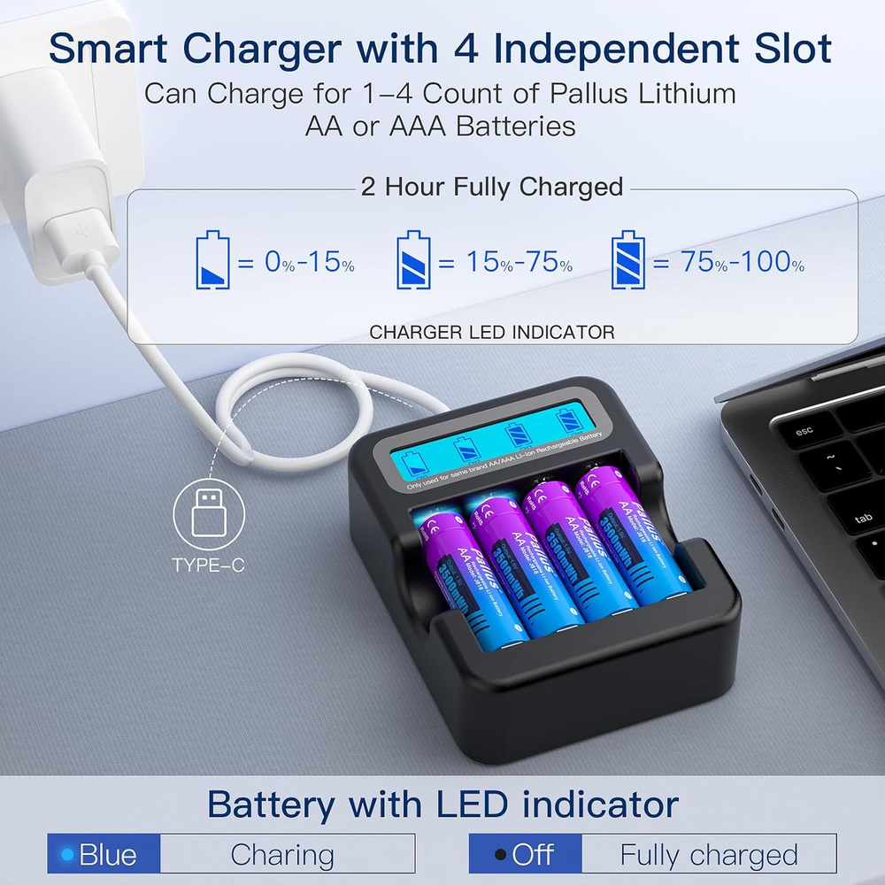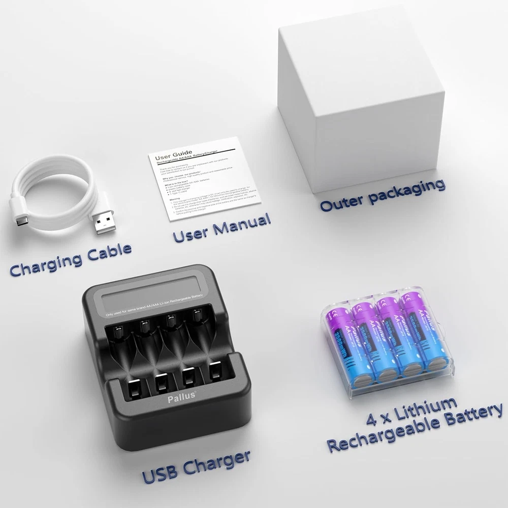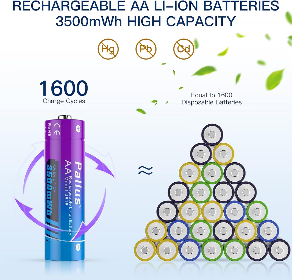Store New Arrivals Add to Favorite View Feedback Contact 1.5V Lithium AA Rechargeable Batteries, 4-Pack 3500Mwh High Capacity Rechargeable AA Batteries with LCD Charger for Outdoor Blink Security Camera, Gaming Controller, Cycle Recharge 1600 Times Description Item model number J818K Color 4 Pack with Black Charger Product Dimensions 3.55"D x 3.55"W x 3.2"H Country of Origin China Item Weight 8.4 Ounces Batteries 4 AA batteries required. Output Voltage 1.5 Volts 【SAVE MONEY】Pallus Lithium Rechargeable AA batteries can be reused up to 1600 times, saving you money in the long run.Upgraded 3A output current for better application in high current devices such as Blink security cameras 【HIGH CAPACITY】These AA lithium rechargeable batteries with 3500mWh(2330mAh) high capacity, they can power your devices for longer periods of time. 【FAST CHARGE DESIGN】The charger with LCD screen, the 2-hour fast charge design ensures that your batteries are ready to go when you need them. Independent charging channel, which can simultaneously charge 1-4 count pallus 1.5v Li-Ion rechargeable AA/AAA batteries 【MULTI-PROTECTION】Pallus AA rechargeable lithium batteries built-in protection against overcharging, over-discharging, and short-circuiting , the charger has reverse charge protection can protect the battery and charger very good. that your batteries are safe to use. 【Low Self-Discharge】Compatible with most standard size AA battery-powered device. Thanks to the chemical characteristics of our battery materials - compared with the 23% rate of Ni-Cr batteries, the unique lower discharge rate of Pallus rechargeable AA lithium batteries ensure the service life - which means the batteries still maintain 85% capacity after 12+ months of non-use. Regardless of any scene within the temperature range of -4~140℉: entertainment, gaming, household or industry, your reliable unstoppable power. Product Description Pallus new Gen AA Batteries support Blink Video Doorbell, Blink Indoor (3rd Gen), Blink Outdoor 4 (4th Gen), Blink Floodlight, Blink Indoor (gen 2) and Outdoor, Blink XT2, Blink XT, Indoor (gen 1) Camera.If it cannot work, it may be due to one of the batteries being damaged or running low during transportation, if still unable to work after fully charging, we'll provide replacment! SAVE YOUR MONEY & SAVE THE WORLD Recycleable and Environmental ProtectionCapable of 1600 charge cycles, free of Lead and Mercury, rechargeable batteries can reduce the harm of regular batteries to the environment. WIDE TEMPERATURE RANGE DESIGN Always reliable and useable with temperatures ranging from -4°F to 140°F. Whether you are in the hot desert or cold winter, it can work normally! PACKING LIST Each is pre-charged, but charge before use is suggested for better performance. 4x Pallus Rechargeable AA Lithium Batteries 1x 4-Solt LCD Charger with USB-C Cable 1x Batteries Storage Box 1x Manual ABOUT US We offer the best prices around on high quality products. Our E-store includes media such as books, movies, music and games while offering electronics, toys, sporting apparel, clothing, tools, general home, garden items and more. SHIPPING We are always working hard to ensure your package arrives as soon as possible. Please understand that some factors like weather, high postal traffic, and the performance of shipping companies are outside of our control. We offer free shipping to the lower 48 states and ship within 2 business days of payment, usually sooner. We do not accept P.O. Boxes. Please provide a physical address. For shipping outside of the continental USA, we only use eBay's Global Shipping Program.The item is shipped to KY and then sent to the rest of the world. International customers are responsible for all duties and taxes. Continue to check out in order to calculate costs for shipping the item to your country. Messages regarding eBay's Global Shipping Program MUST be directed at eBay EXCLUSIVELY. RETURNS We offer a 30-Day Return Policy on items which you are not completely satisfied with. You have the option for a full-refund or an exchange of the item. No returns are available on items shipped outside of the USA. PAYMENT We accept PayPal. CONTACT US This page content is yet to come Please ad us to your favorite seller and visit again later Thank You CUSTOMER SATISFACTION We try our very best to make sure every customer is completely satisfied. If there's a problem, message us! We're happy to help. WE ACCEPT Copyright © 2021 AutoDS. | All Rights Reserved