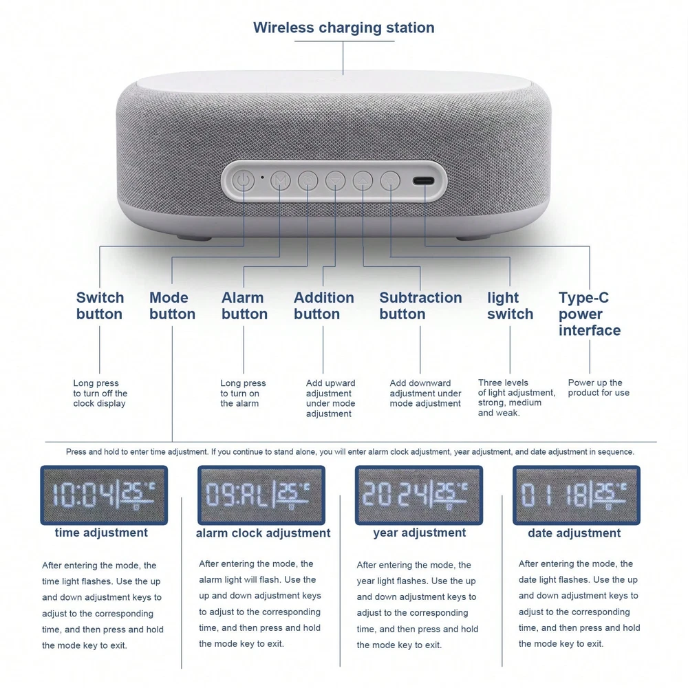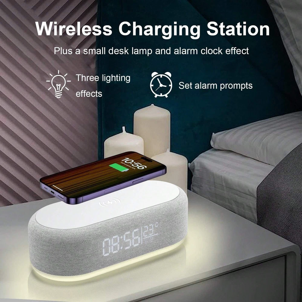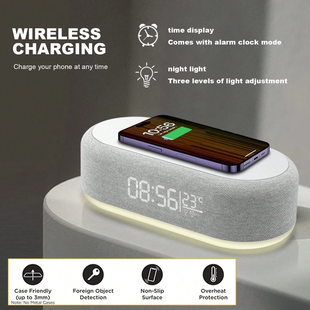 15W Fast Charge Wireless Alarm Clock with Temperature Display & Night Light