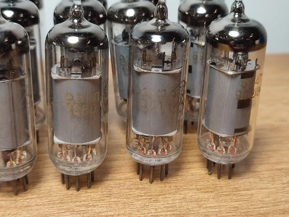 10pcs 6K4P (6BA6, EF93, 5376, 6К4П) HF PENTODE TUBES / NEW 80-90's NOS Year would be from 1980 to 1991. 6К4П: Filament voltage 6.3 V The anode voltage of 250V Second grid voltage 100V Filament current 300±30mA 300±25mA Anode current 10±3mA Second grid current <5.5 mA The steepness of the characteristics 4.4±0.9 mA/V The steepness of the characteristics at UN=5,7 V >2.8 mA/V >3.0 mA/V The steepness at the beginning of the characteristic (Uc1=-20V) 0.04 mA/V First grid reverse current <1.0 µa <0.3 µa The cut-off voltage of the electronic current of the first mesh < -1.5 V Resistance in the cathode circuit for automatic displacement of 68 ohms Internal resistance of about 850Ком about 450Ком Input impedance (at f=60MHz) type. 19kom >2kom (type. 5kω) Voltage fibrosum (Ra=10kOhm) <400mV <180мВ Input capacitance 6pf 6.4±0.8 pF The output capacitance of 6.3 pF 6,7±1,1 pF Internal capacitance <0,0045 pF Capacitance cathode-heater is a 5.5 pF to 5.5 pF Operating time 1000h 5000h --------------------------------------------------------------------------------------------------------------------------------------------------- Import duties, taxes and chargers are not included in the item price or shipping charges. These charges are the buyer's responsibility. Please check with your country's customs office to determine what these additional costs will be prior to bidding buying. Combine shipping is accepted. If you need less or more items of this type, or if you need add some other items, contact us, and we will make special listing for you. Give us the list of items you need, and we'll do the rest. We have many other vacuum tubes for audio and other, ask us if you need any of them. Items are shipped from Lithuania Post (Europe Union) via expedited International tracking. Returns We guarantee you complete satisfaction with all our high quality products. If you receive an item you did not order, or if an item you ordered is received damaged or defective, we will refund you the price you paid for it or replace it with identical one. The item should come to the above address within 30 days after you received it. After 30 days we will no longer be responsible and the item won't be taken back. Item for returning must have the original tags and packing, otherwise it won't be accepted.
