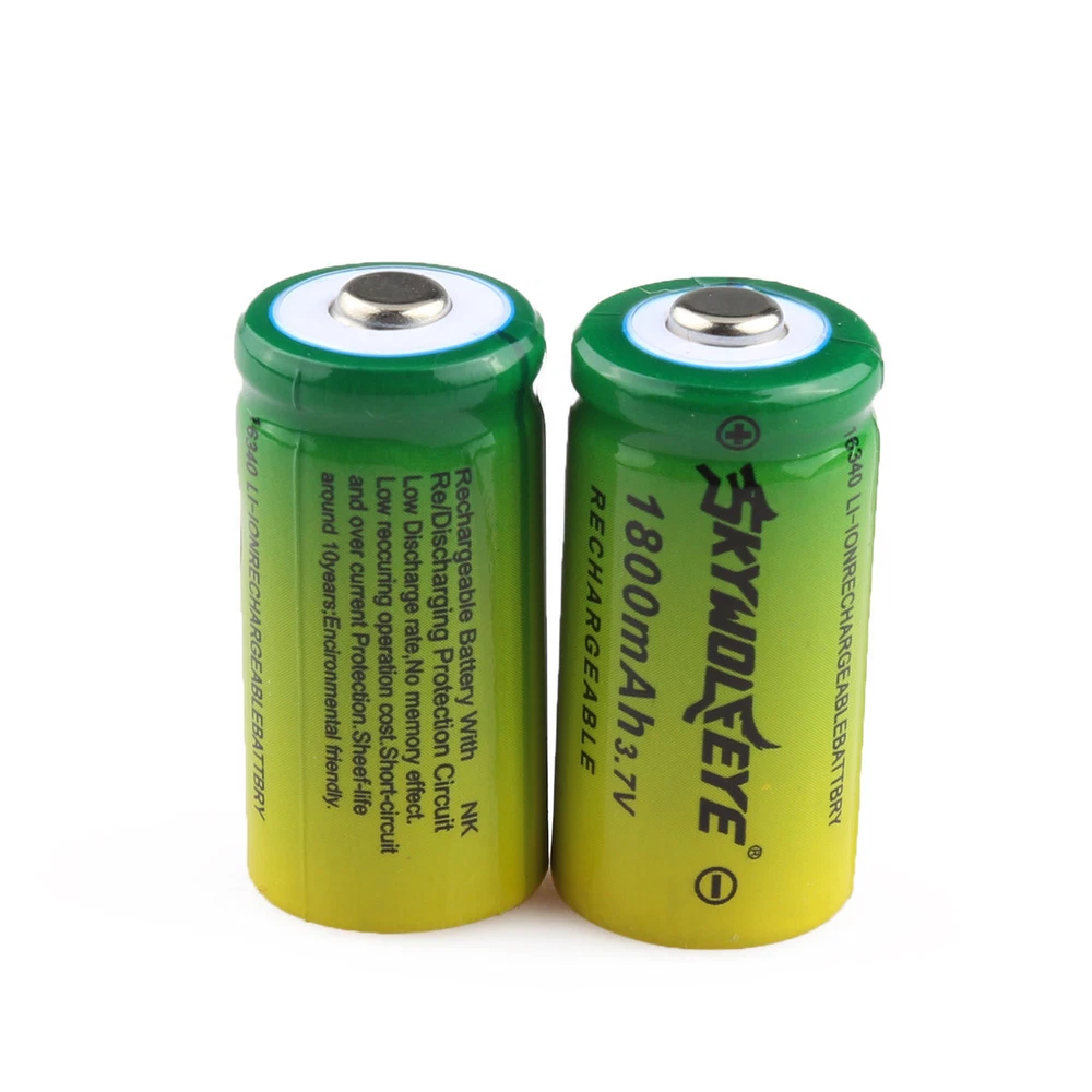 Features: Brand New and high quality Battery Type: 16340 Rechargeable Battery Model : 16340( Replace for CR123A, , K123A, VL123A, DL123A, SF123A 123A ) Voltage: 3.7V Capacity: 1800mAh Material: Li-ion Battery For appliances like Camera,Flashlight, toys etc. Specifications: Size:about33.5*16*16mm Color:yellow-green Packing Content: 15x 16340 Rechargeable Battery Please note that these are not the 3.0 volt batteries. Make sure your flashlight will handle these. WARNING: 1.New battery must first charge and then use , or the battery is most likely over-discharge , lead scrap. 2.The voltage of full charge and cut-off discharge is 4.2V and 2.75V. 3.Don't heat,incinerate or reverse polarity. 4.Please do not make the battery over discharge, over-discharge of lithium is not a failure but scrapped. Shipping 1. We ship your orders within 1-2 business days after the payment cleared. 2. with the tracking number, most reach USA about 2-8 working days. 3. Delivery time depends on destination and other factors, it may takes up to 20 days. If you don't receive the item after 25 days,please contact us, we'll investigate and solve the delivery problem.
