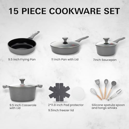 Return Policy Fast Delivery Trusted seller UCCLIFE 15Pcs Pots and Pans Set Nonstick Cookware with Non-detachable Handle, Large Capacity, Induction Compatible, Grey Kitchen Frying Pans (PFOA, PFAS, PTFE Free) Product Description Sturdy Construction Meets Lightweight Design. Our pots and pans set non stick features a sturdy die-cast aluminum body, [pots and pans set non stick] ensuring long-lasting durability and reliability. The non-stick coating on both interior and exterior offers easy food release. Comprehensive Cookware Set. This pots and pans set non stick includes a 9.5-inch frying pan, an 11-inch pan with lid, a 7-inch saucepan, a 9.5-inch casserole with lid, 2 pad protectors, 1 freezer lid, silicone spatula spoon and tongs, whisks. Universal Stove Compatibility. Thanks to the extended bottom design and high magnetic conductive stainless steel base, our pots and pans set non stick heats up quickly and evenly, suitable for all stoves including induction and oven. Multitasking Versatility. With removable handles, this pots and pans set non stick allows you to effortlessly transfer from various hobs to the oven, grill, fridge, and table. Top-Level Non-stick Performance. Equipped with 10x ultra non-stick coating, PFOS/PFOA-free, our pots and pans set non stick ensures safer and healthier daily cooking. It’s easy to clean and dishwasher-safe. Shipping Returns Payment Shipping Shipping is FREE to all addresses other than APO/PO boxes in the lower 48 states. All our stock ships from US-based warehouses. Shipped via USPS or UPS (depending on location and package weight) Unless stated otherwise, all orders will ship within 24-72 hours of your payment being processed. Check our feedback to see the great reviews of FAST shipping we offer. Returns Seller does not accept returns Payment We currently accept payment via eBay managed payments only. Once payment is cleared, we will dispatch your shipment within 1-3 business days. Please refer to the "Shipping" tab for more information regarding shipping speed to your destination.