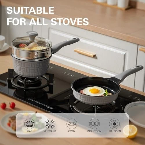 17-Piece Ceramic Non-Stick Cookware Set for Induction Stoves, Healthy Cooking