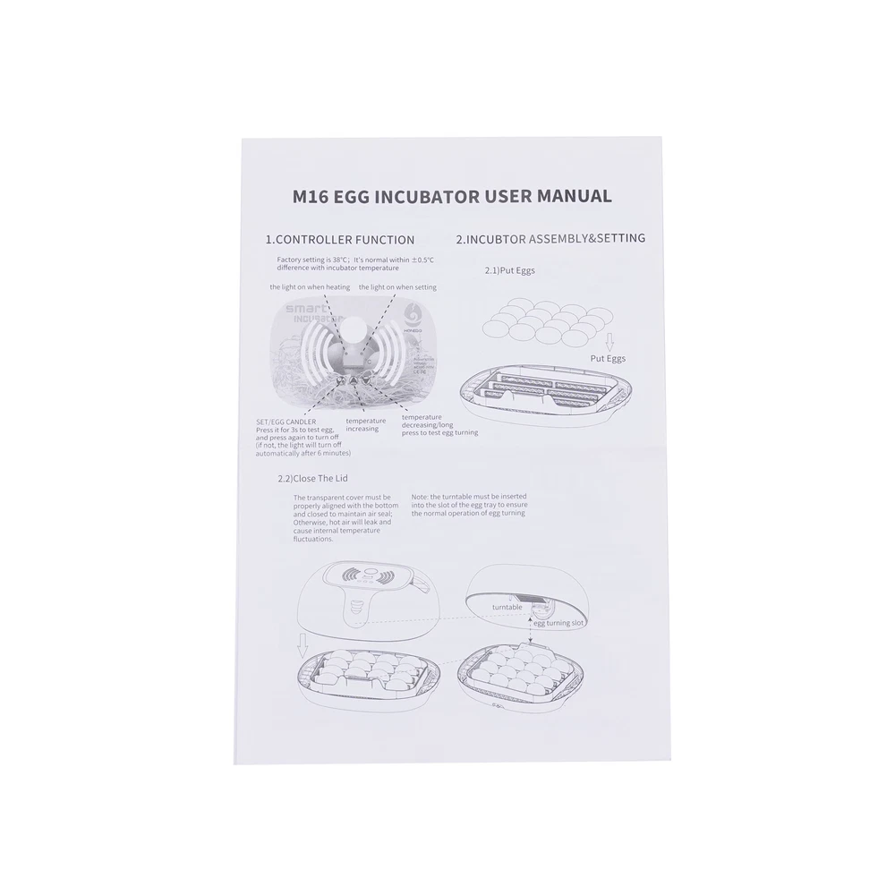 16 Eggs Incubator Digital Egg Hatcher Chicken Egg Automatic Turner Humidity exclude water bottle The attached manual is universal version for several products, thus the accessories introduced will be slightly different. The product you received is complete. If you have any issue about installation/operation, please contact seller for help. Description It Is a Joy to Witness the Birth of Life. This Egg Incubator Made of High-quality Pc Material Can Simulate the Natural Environment of Hatching Eggs and Its Transparent Top Design Allows You to Observe the Whole Hatching Process More Visually. It Has Automated Hatching Functions, so You Don't Have to Do Anything but Wait for the Chicks to Arrive! Key Features Ideal Environment: It Has a Built-in Automatic Control System and Circulating Air Duct to Ensure Air Circulation and Simulate Natural Hatching Conditions to Ensure That Your Eggs Hatch Properly. Automatic Egg Turning: It Adopts Horizontal Sliding Egg Turnover to Simulate the Hatching Mode of Original Ecological Hens. It Does Not Need Manual Operation When Working, and Eggs Are Automatically Turned Every Two Hours to Improve the Hatching Success Rate. Large Capacity: It Can Hatch up to 16 Eggs for You at Once and Is Dedicated to Increasing Your Hatching Production! Adjustable Temperature: with a Silicone Heater, You Can Achieve Continuous Temperature Control for Breeder Egg Hatching According to Your Set Temperature (20-50℃/68-122℉) to Ensure the Number of Eggs Hatching. Automatic Water Injection: It Is Designed with an External Water Injector so That You Can Add Water Without Opening the Cover of the Incubator, Which Can Completely Free Your Hands and Maintain a Great Humidity Environment. Led Candling Function: the Led Egg Candling Function Allows You to Check Hen, or Duck Eggs in Every Incubation Stage, Ensuring a High Hatching Success Rate. 360° Visibility: the Transparent Lid Design Not Only Ensures That the Internal Temperature of the Machine Will Not Be Easily Lost but Also Makes It Easy for You and Your Child to Observe the Chicken's Cultivation Process and Enjoy the Fun of Intuitive Teaching and Learning. Automatic Temperature Control: It Adopts Silicone Heaters, Which Can Realize Continuous Temperature Control for Your Seed Egg Hatching According to Your Set Temperature, so You Can Rest Assured and Use It Easily. Healthy Materials: This Egg Incubator Is Made of Environmentally Friendly Pet Material, Which Is Non-toxic, Odorless, Waterproof, and Durable, Ensuring That You Can Use It with Confidence for a Long Time. Nice Appearance: the White Color Scheme of This Egg Incubator and Its Small and Delicate Appearance Make It a Nice Decorative Piece for Your Farm or Kitchen. It Can Also Be a Gift to Your Kids to Cultivate Their Curiosity and Creativity. Easy to Clean: the Machine's Smooth Surface and Removable Chassis Make It Easy for You to Clean. All You Need to Do Is Rinse with Water and Wipe Dry. Customer Service: We Aim to Provide Quality Products and Services. If You Have Any Problems, Please Feel Free to Contact Us. We Will Reply and Solve the Problem for You As Soon As Possible. Details Spacer Strips : the Distance Between the Compartments of Its Chassis Can Be Adjusted by the Spacer Strips According to the Size of the Eggs of Various Birds so That You Can Use It More Easily. Lcd Display: It Is Equipped with an Lcd Screen That Displays Temperature so That You Can Accurately Grasp the Environmental Conditions During the Incubation Process. Application This Egg Incubator Can Incubate Chickens, Ducks, Pigeons, and Quail Eggs. It Is Suitable for Families, Training, and Laboratories, and Is Very Suitable for Showing How to Incubate Eggs. Specification Color: White Use: Incubation Equipment Material: Pet Heater Material: Silicone Plug: Us Standard Voltage: Ac95-125v Power: ≤35w Capacity: 16 Eggs Temperature Adjustment Range: 20-50℃/ 68-122℉ Product Size: 33*27*14.6cm/ 12.99*10.62*5.74in Package Size: 37*18.5*33.5cm/ 14.57*7.28*13.19in Net Weight: 1.52kg/ 3.35lbs Gross Weight: 1.99kg/ 4.39lbs Package Included 1* Eggs Incubator 1* Water Injector 1* Tube 1* Power Cable 1* English Instruction Manual 6* Spacer Strips Notes Please Note That the Clean Transparent Cover Is Not Washable, You Can Just Wipe It with a Wet Cloth. Please Place It Horizontally on a Flat Surface for Use. Be Sure to Research the Ideal Hatching Conditions for Your Eggs. Please Pay Attention to the Size Before Purchase, and Do Not Hatch Goose Eggs (Too Big to Put). Please Allow the Slight Color Difference Caused by the Shooting Light and 1-3 Cm Error Due to Manual Measurement, and Make Sure You Do Not Mind Before Ordering. Payment Delivery details Terms of sales About us Contact us Payment We accept ebay payment 。 Fees such as import duties, taxes are not included in the item price or shipping costs. These charges are the buyer's responsibility. Delivery details Shipping: 2-9 working days to: USA Terms of sales We maintain high standards of excellence and strive for hundred percent customer satisfaction. Feedback is very important to us. We hope that you contact us immediately before you give neutral or negative feedback, so that we can address your concerns. It is impossible to address issues if we do not know about them! About us Your satis faction is our ultimate goal. We work hard to earn your trust and future business. Our certified technicians have tested each item before shipping. The unit comes with 1 year limited warranty on all manufacturing defects. a) If you receive a defective item, you may return it or ask for a discount. Please contact us within 14 days after you receive the package. b) What you returned must be intact and in its original packaging as re? u. Customer is responsible for shipping costs of the returned item. c) We will cover the cost of shipping back t with the shipping rate indicated in the registration page. We will send you a new unit or refund the full payment you paid. T