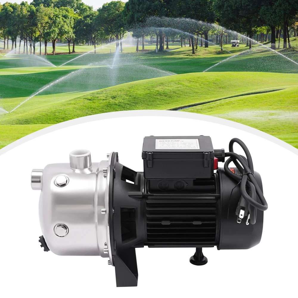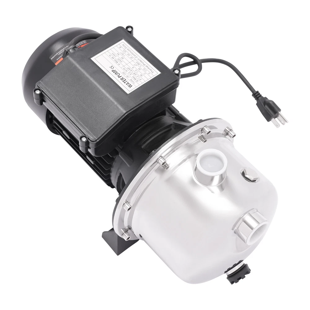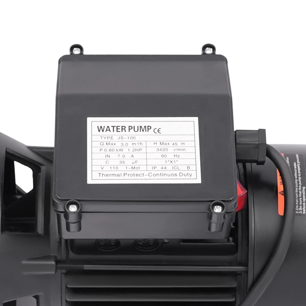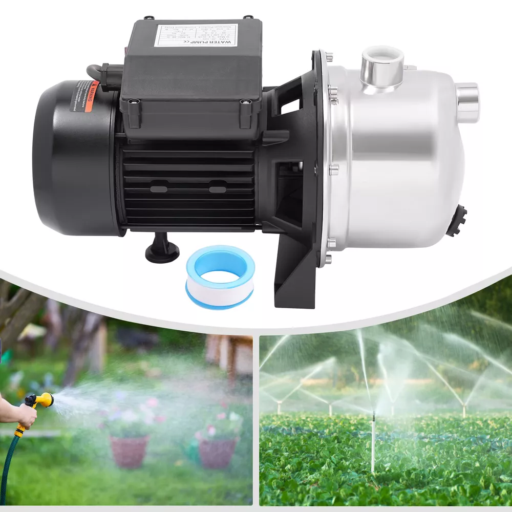 Specifications Material: Stainless Steel, Silicone Process: Painting and Polishing Motor: Pure Copper Motor Mounting Type: Floor Standing Power Source: Corded Electric IP Level: IP44 Waterproof Lever: IP68 Capacitance: 35μF Max Temperature: 55°C/131°F Voltage: 110V, 60Hz Input Current: 7.0A Power: 1.2KW(1.6hp) Rotating Speed: 3420rpm Water Pump Inlet: 2.54cm/1in Water Pump Outlet: 2.54cm/1in Max Sprinkler Volume: 3.4m³/h/898.18GPH Noise: 0-30db Maximum Lift Height: 48m/157.48ft Maximum Pressure: 4.8bar Maximum Suction: 8-10m/26.2-32.8ft Maximum Flow Rate: 4. 8m³/h/1268.03GPH Power Cord Length: 1m/3.28ft Gross Weight: 8.7kg/19.18lbs Product Size: 38*20*22cm/14.96*7.87*8.66in Package Included 1*Water Pump 1*Multilingual Manual 1*Sealing Tape 1.6 HP Shallow Well Jet Pump Homes Supply Water Well Jet Pump w/ Pressure Switch 1.6HP Portable Shallow Well Pump, Draining Irrigation Pump for Lawn, Water Pump Specifications Material: Stainless Steel, Silicone Color: Black, Silver Process: Painting and Polishing Motor: Pure Copper Motor Assembly Required: Yes Mounting Type: Floor Standing Power Source: Corded Electric Plug Type: US Standard IP Level: IP44 Waterproof Lever: IP68 Capacitance: 35μF Max Temperature: 55°C/131°F Voltage: 110V, 60Hz Input Current: 7.0A Power: 1.2KW(1.6hp) Rotating Speed: 3420rpm Water Pump Inlet: 2.54cm/1in Water Pump Outlet: 2.54cm/1in Max Sprinkler Volume : 3.4m³/h/898.18GPH Noise: 0-30db Maximum Lift Height: 48m/ 157.48ft Maximum Pressure: 4.8bar Maximum Suction: 8-10m/26.2-32.8ft Maximum Flow Rate: 4. 8m³/h/1268.03GPH Power Cord Length: 1m/3.28ft Gross Weight: 8.7kg/19.18lbs Product Size: 38*20*22cm/14.96*7.87*8.66in Package Size: 46*30*26cm/18.11*11.81*10.24in Description If you are looking for efficient and simple irrigation methods, take a look at our water pump. Made of high-quality silicon and stainless steel with painting and polishing processes, this product provides quality assurance for your long-term use. Max 1.2kw power, 3420 rpm, and max.157.48ft lift make your work easier and more efficient. We believe it will be your assistant in agricultural production, breeding, or other work. Key Features Build to Last : The product is made of high-quality silicon and stainless steel, and adopts painting and polishing processes making it solid, and not prone to rust and corrosion, so it can remain beautiful and practical for a long time. High Efficiency: The 1.2KW pure copper motor, 3420rpm speed, 1268.03gal/h maximum flow rate, 26.2-32.8ft maximum suction, 4.8 bar maximum pressure, and tight bearing make your pumping and watering work faster and easier. Delivery Assistant: The maximum lift of the pump is 157.48ft, which allows you to irrigate farmland, fish ponds, and orchards for a long distance, saving the time and cost of manual transportation. Safety Guard: It has built-in thermal, IP68 waterproof level, overload protection, and is equipped with uniform heat dissipation holes and a fan, which can timely reduce the temperature during operation, and reduce potential safety hazards, thus extending the service life of the product. Good Sealing Performance: The product comes with a PTFE sealing tape, you can wrap it around the area that needs to be sealed to avoid water ingress or leakage, bringing you a better using experience. Low Noise: It runs very smoothly with little vibration and noise( 0-30db ), which can bring you a quiet working environment. Easy to Use: With a detailed instruction manual, you just need to follow the steps in the manual to pump, sprinkle, etc. Ideal Gift: Such a practical product is an ideal gift for family and friends who need garden watering and vegetable garden irrigation. Protective Package: To prevent damage to the product due to bumps in transit, we place air column bag and foam to protect the product as much as possible. Quality Service: We are honored that you have chosen our product. We have sufficient confidence in the quality of the product so that you can buy it confidently. But if you have any questions, you can contact our customer service, he will patiently answer and solve your problems . Details Standard Water Inlet and Outlet: The product adopts an NPT 1-inch large diameter water inlet and outlet, which can be matched with different types of water pipes and is very practical. Sealing Ring: The silicone sealing ring is used to avoid water leakage and reduce waste. Support Feet: They can better maintain the stability of the product and ensure smoother operation. Application It is suitable for sprinkler systems, irrigation, daily water delivery, and drawing water from shallow wells, ponds, lakes, rain barrels, tanks, and more. It can be used as a sprinkler pump, well pump, or booster pump and can pressurize your home for solar, washing machine, water heater, tap water, shower, etc. Package Included 1* Water Pump 1*Multilingual Manual 1*Sealing Tape Notes Adding water to the pump head until it is full helps to speed up the inlet flow rate. The inlet pipe(not included) shall not be excessively bent and the end pipe (not included)shall be completely submerged. Please note that it is only suitable for clean water. Please read the operating manual completely before use, and pay particular attention to the safety instructions included. Please discharge the waste water if not used frequently and please do not run the pump without water. Please do not wet the motor before first use, and fill the pump head with water to wet the impeller. Please perform a water test after the installation is complete to check for leaks and other conditions. Please make sure that the air inlet joint or pipe is completely sealed and air-tight, and that hose used for the water inlet pipe is not sucked and deflated. Check the coupling to see if the internal drive is damaged. Please allow the slight color difference caused by the shooting light and 1-3cm error due to manual measurement, and make sure you do not mind before you order. Payment Delivery