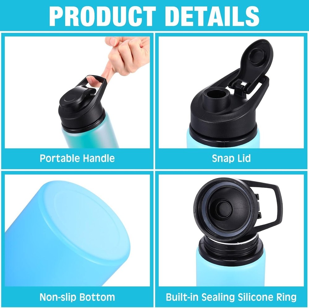 16 PCS 20oz Aluminum Water Bottle Bulk Multicolor Reusable Sports Bottle with Snap Lids Multipack Vacuum Water Flask for Travel Camping, Picnics, Gym, Hiking, Cycling, Fishing Reliable Material: made of quality aluminum, our sports water bottles are sturdy, reusable, and resistant to oxidation and corrosion; The plastic lid of reusable bottle is leak proof, sweat proof and not easy to rust, break or deform, which can provide you a safe and original healthy taste of your drinks Package Include: you will receive 16 pieces of 20 oz aluminum water bottles in different colors, the powder coating keeps the cup bright and will not fade or fall; You can share these colorful double wall metal sports bottles with your family, they will be nice presents for kids Large Capacity: the capacity of these aluminum metal bottles is about 20 oz, which can hold the essential water you need on the go or your little one's favorite milk, drink, and so on; Our aluminum sports bottles are ideal for outdoor sports or indoor yoga Portable Design: each metal water bottle bulk comes with a handle and a snap lid, which is more convenient to carry and prevents water leakage; The handle and snap lid for easy portability, can be attached to backpacks and cars to reduce stress and make travel easier Extensive Application: our vacuum water bottles are not only suitable for school and other daily usage, but also can be applied as sports accessories for hiking, climbing, jogging, running, camping, and cycling; Bringing our water flasks bulk can help you replenish the right temperature water and keep you energized
