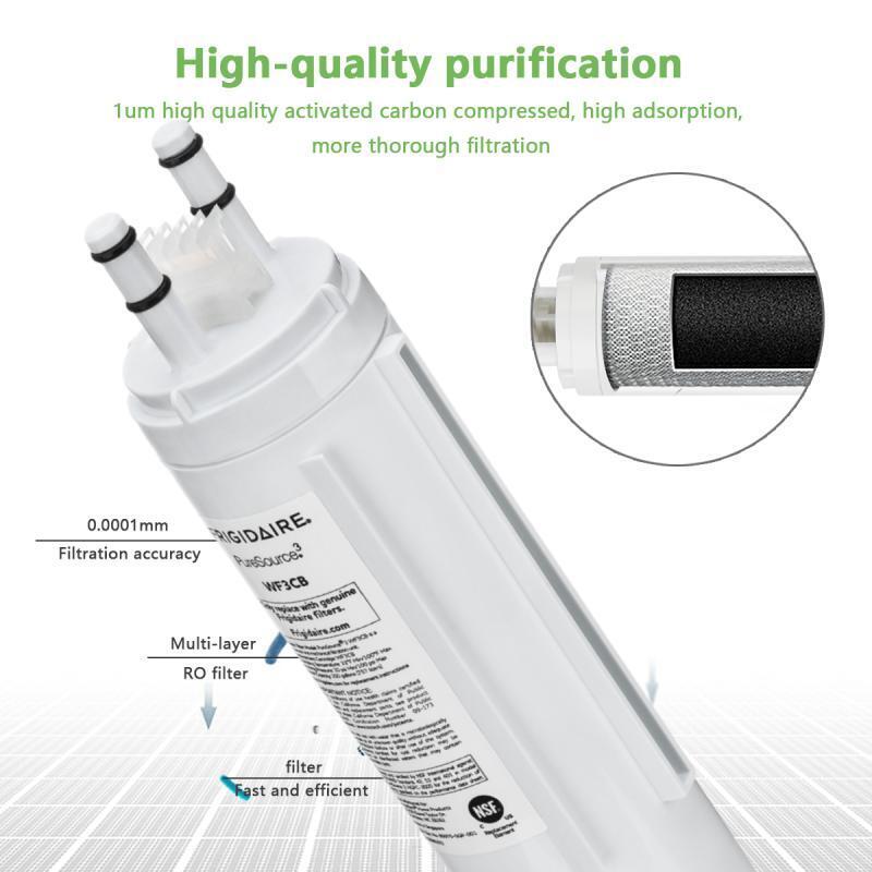 Description: 1 .Model: Frigidaire WF3CB 2 .Used only high-grade coconut carbon block. 3 .Removes over 99% of the potentially harmful contaminants that .may be present in your water 4 .Temperature: 1-38 Degrees Centigrade (34-100 Degrees Fahrenheit) 5 .Flow rate: 0.75 GPM (1.9LPM) 6 .Pressure: 30-125 PSI 7 .Capacity: 250 Gallons 8 .Replacement Cycle: 6 Months Advantage: 1.Quick installation and easy replacement: installing this filter is very easy. Just aim in the right direction. 2.Compatible Models:Compatible with Pure source3,WF3CB 3.KINDLY REMINDER: Please drain about 4 gallons of water first to maximize the efficiency of the filter. Please replace the ilter every 6 months or 2 5 0 gallons to minimize impurities. 4.Easy to Install - No special tools required. Just insert water line into built-in plugs eliminating the risk of leaks. 5.Packaging upgrades. Installation Instruction : 1.Shut off water source 2.Remove the existing product by turning i left,and then take it out 3.Remove the cap of a new product,insert it into and turn right to lock it in place 4.Recover the water source,and check it there is leakage 5.Run the working process for 4 minutes(about 8 cups of water )for purge 6.Reset replacement indicator light by pressing the ICE TYPE button and the CHILD LOCK(or MOISTURE CONTROL)button simultaneously for 3 seconds This part is compatible with the following model numbers: FFHS2322MW FFHS2611LB FFHS2611LQ FFHS2611LS FFHS2611LW FFHS2611PF FFHS2612LS FFHS2622MB FFHS2622MH FFHS2622MM FFHS2622MQ FFHS2622MS FFHS2622MW FFHX2325TE FFHX2325TM FFHX2325TP FFHX2325TS FFSC2323LE FFSC2323LP FFSC2323LS FFSS2314QE FFSS2314QP FFSS2314QS FFSS2315TD FFSS2315TE FFSS2315TP FFSS2315TS FFSS2325TE FFSS2325TP FFSS2325TS FFSS2614QE FFSS2614QP FFSS2614QS FFSS2615TD FFSS2615TE FFSS2615TP FFSS2615TS FFSS2622NB FFSS2622NS FFSS2622NW FFSS2625TE FFSS2625TP FFSS2625TS FFUS2613LE FFUS2613LM FFUS2613LP FFUS2613LS FGHC2335LP FGHC2344KF FGHC2345LF FGHS2332LE FGHS2332LP FGHS2342LF FGUS2632LE FGUS2632LP FGUS2635LP FGUS2642LF FGUS2645LF LFSS2312TD LFSS2312TE LFSS2312TF LFSS2312TP LFSS2612TD LFSS2612TE LFSS2612TF LFSS2612TP LFUS2613LE LFUS2613LF LFUS2613LP LGUS2642LE LGUS2642LF LGUS2642LM LGUS2642LPLP, This part is compatible with the following model numbers: FGHS2332LE FGHS2332LP FGHS2342LF FGUS2632LE FGUS2632LP FGUS2635LP FGUS2642LF FGUS2645LF LFSS2312TD LFSS2312TE LFSS2312TF LFSS2312TP LFSS2612TD LFSS2612TE LFSS2612TF LFSS2612TP LFUS2613LE LFUS2613LF LFUS2613LP LGUS2642LE LGUS2642LF LGUS2642LM LGUS2642BFHS2611LM DFHS2313MF DGUS2635LE DGUS2635LP DGUS2645LF FFEX2315QE FFEX2315QM FFEX2315QP FFEX2315QS FFEX2615QB FFEX2615QS FFEX2615QW FFHS2311LB FFHS2311LW FFHS2311PF FFHS2312NS FFHS2313LE FFHS2313LM FFHS2313LP FFHS2313LS FFHS2322MB FFHS2322MM FFHS2322MQ FFHS2322MS, This part is compatible with the following model numbers: BFHS2611LM DFHS2313MF DGUS2635LE DGUS2635LP DGUS2645LF FFEX2315QE FFEX2315QM FFEX2315QP FFEX2315QS FFEX2615QB FFEX2615QS FFEX2615QW FFHS2311LB FFHS2311LW FFHS2311PF FFHS2312NS FFHS2313LE FFHS2313LM FFHS2313LP FFHS2313LS FFHS2322MB FFHS2322MM FFHS2322MQ FFHS2322MS FFHS2322MW FFHS2611LB FFHS2611LQ FFHS2611LS FFHS2611LW FFHS2611PF FFHS2612LS FFHS2622MB FFHS2622MH FFHS2622MM FFHS2622MQ FFHS2622MS FFHS2622MW FFHX2325TE FFHX2325TM FFHX2325TP FFHX2325TS FFSC2323LE FFSC2323LP FFSC2323LS FFSS2314QE FFSS2314QP FFSS2314QS FFSS2315TD FFSS2315TE FFSS2315TP FFSS2315TS FFSS2325TE FFSS2325TP FFSS2325TS FFSS2614QE FFSS2614QP FFSS2614QS FFSS2615TD FFSS2615TE FFSS2615TP FFSS2615TS FFSS2622NB FFSS2622NS FFSS2622NW FFSS2625TE FFSS2625TP FFSS2625TS FFUS2613LE FFUS2613LM FFUS2613LP FFUS2613LS FGHC2335LP FGHC2344KF FGHC2345LF Payment Shipping Returns Contact Us Payment 1. All the products which you can order are in stock , you can feel free to pay for it. For the payment method, we only accept PayPal . 2. If by auction. Please notice the order payment time. Payment must be made with in 7 days of the auction end time, otherwise, our system will mark the item unpaid. If having any problem, contact us for help. 3. If you already made an order in our stork, but not pay it, we will send you reminding payment message. While you seen the message, please pay the order fast , or you can inform us directly if you no longer need our item. Otherwise, if not paid over 7 days, we will prompt you to pay by filing a dispute to the platform. 4. If you have any payment problem, you can c ontact eBay customer help center or contact us , we will provide help within 24h. 5. Our prices do not include any customs duty or tax. Shipping 1. Products ship from US and delivered in about 3-8 business days . 2. Your parcel will be shipped out within 1-3 workin g days after your payment cleared, if orders is made on weekends or holiday, it will be shipped out on Monday or next working day! We only ship to the confirmed address provided by eBay. Before you pay, please make sure your address in eBay is correct ! 3. If you don't receive the items after 10 Business days, Please Send Message First to contact us as soon as you can. We will check for you ,then reply you within 24 hours and do our best to resolve the problems. 4. Our prices do not include any customs duty or tax. Returns Return Notice: 1. Please confirm the item is exactly the one y ou need . If the buyer bought a wrong item, not need the item, can not install the item, or any other customer reasons return, buyer need to pay for the return shipping and 15% of payment for the seller charge (Example: shipping fee, restocking fee, handling charges and so on.) 2. Do not install the item immediate ly after received. 3. Please make sure to t e st it fi rs t . Determining quality is f ine, work properly, no scratches and then installed. Once after installed, would no longer accept retu rns . Thank you for your cooperation! 4.If return our goods back, please pack it we ll ,to prevent product been damaged while shipping. Return Service: 1. We provide 6 months warranty, as long as screen without any man-mad