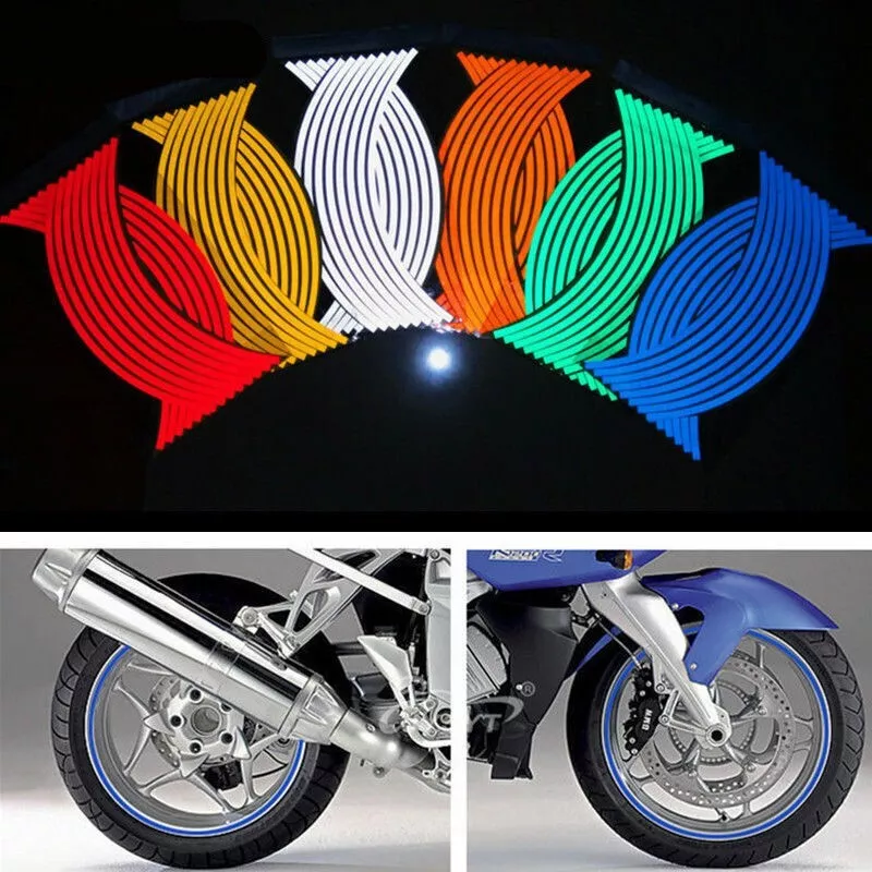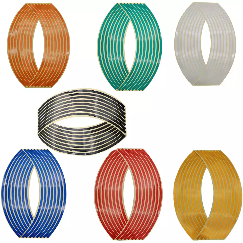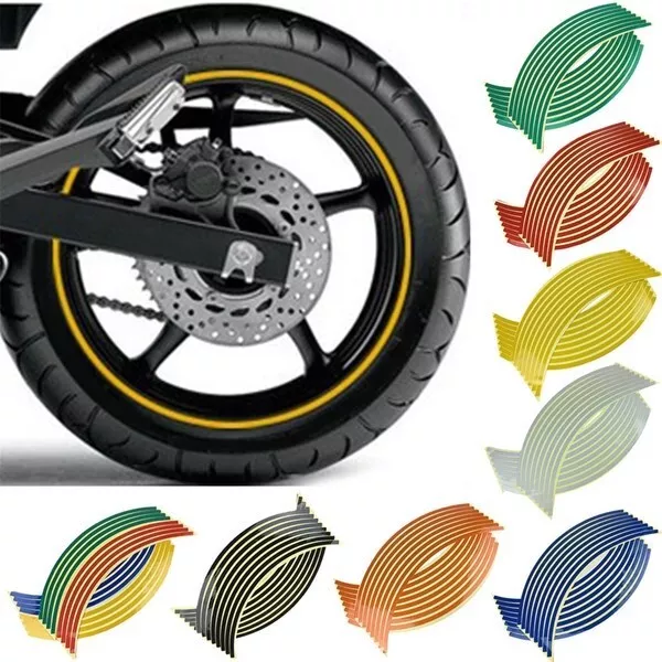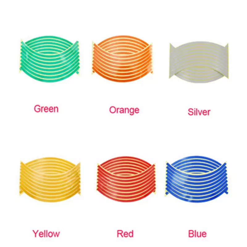 Description: Condition: 100% Brand New Features: -Improving driving safety as well as a decoration. -Make your motorcycle looks more cool, highlight individuality. -Can be used on the motorcycle wheel, bike wheel. -Easy installation. Instruction for use: -Clean area where the tapes is being placed. -Make sure there is no residue or dust. -Don't wash your motorcycle within 24 hours after you stick the wheel decal. Reflective Strip: Color option: Green/Red/Blue/White/Gold/Silver/Black/ Orange/ Multicolour Stripe Width: about 8mm Quantity: 16 pcs Universal fit for 17-19'' wheel rim 8M Ruuber Strip: Material: high quality rubber Length: 26FT/8M Dimensions: 26 feet x 0.4 inches Suitable for wheel diameter 14-22 inches 8 meters/26 feet is enough to hold 4-5 wheels. It is easy to cut it to the required length. Depends on your wheel diameter. Package included: 1Set x 16 Strips Rim Stripe Stickers