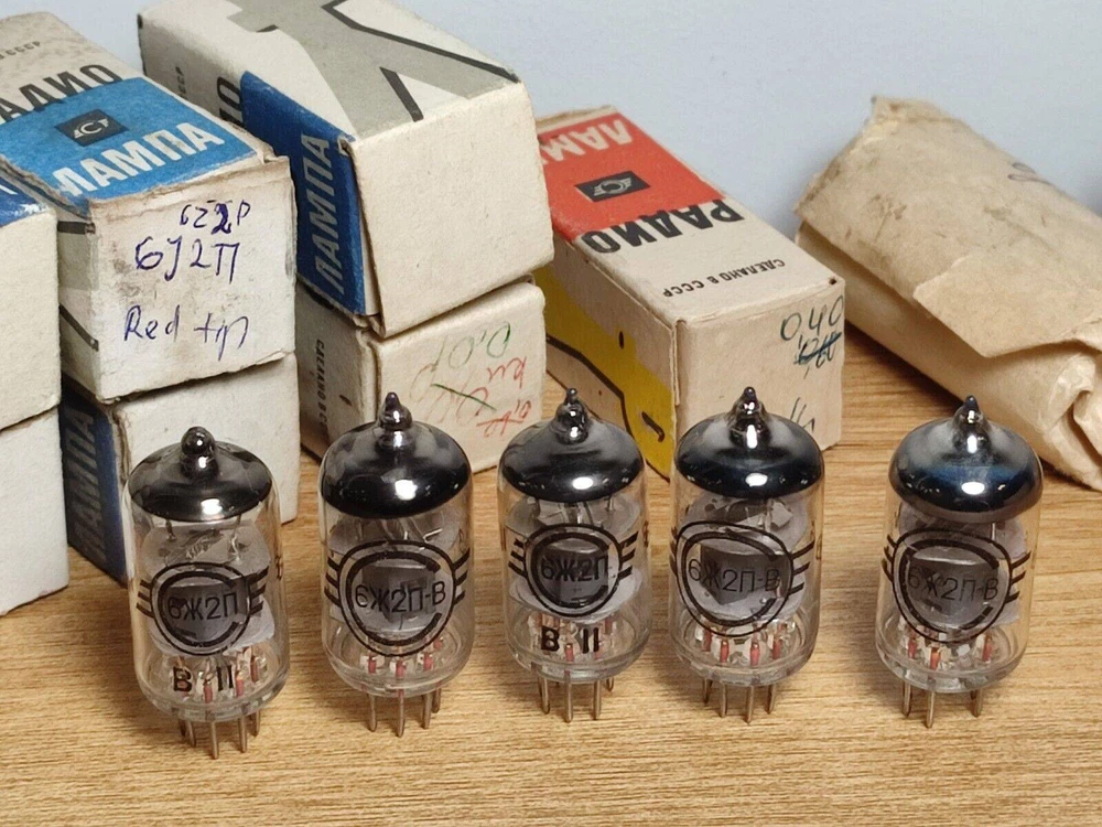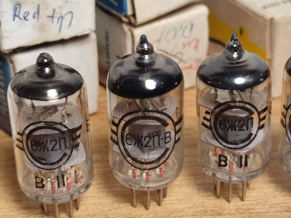16 pcs 6J2P 6Ж2П NOS Russian gold grid RADIO tubes equiv. to 6AS6, 6F33 NEW NOSTUBES NOS New Old Stock never used. HF pentode with brought out suppressor grid - pin 7 (not connected with cathode - pin 2 inside the tube) Gold plated control grid see picture. --------------------------------------------------------------------------------------------------------------------------------------------------- Import duties, taxes and chargers are not included in the item price or shipping charges. These charges are the buyer's responsibility. Please check with your country's customs office to determine what these additional costs will be prior to bidding buying. Combine shipping is accepted. If you need less or more items of this type, or if you need add some other items, contact us, and we will make special listing for you. Give us the list of items you need, and we'll do the rest. We have many other vacuum tubes for audio and other, ask us if you need any of them. Items are shipped from Lithuania Post (Europe Union) via expedited International tracking. Returns We guarantee you complete satisfaction with all our high quality products. If you receive an item you did not order, or if an item you ordered is received damaged or defective, we will refund you the price you paid for it or replace it with identical one. The item should come to the above address within 30 days after you received it. After 30 days we will no longer be responsible and the item won't be taken back. Item for returning must have the original tags and packing, otherwise it won't be accepted.