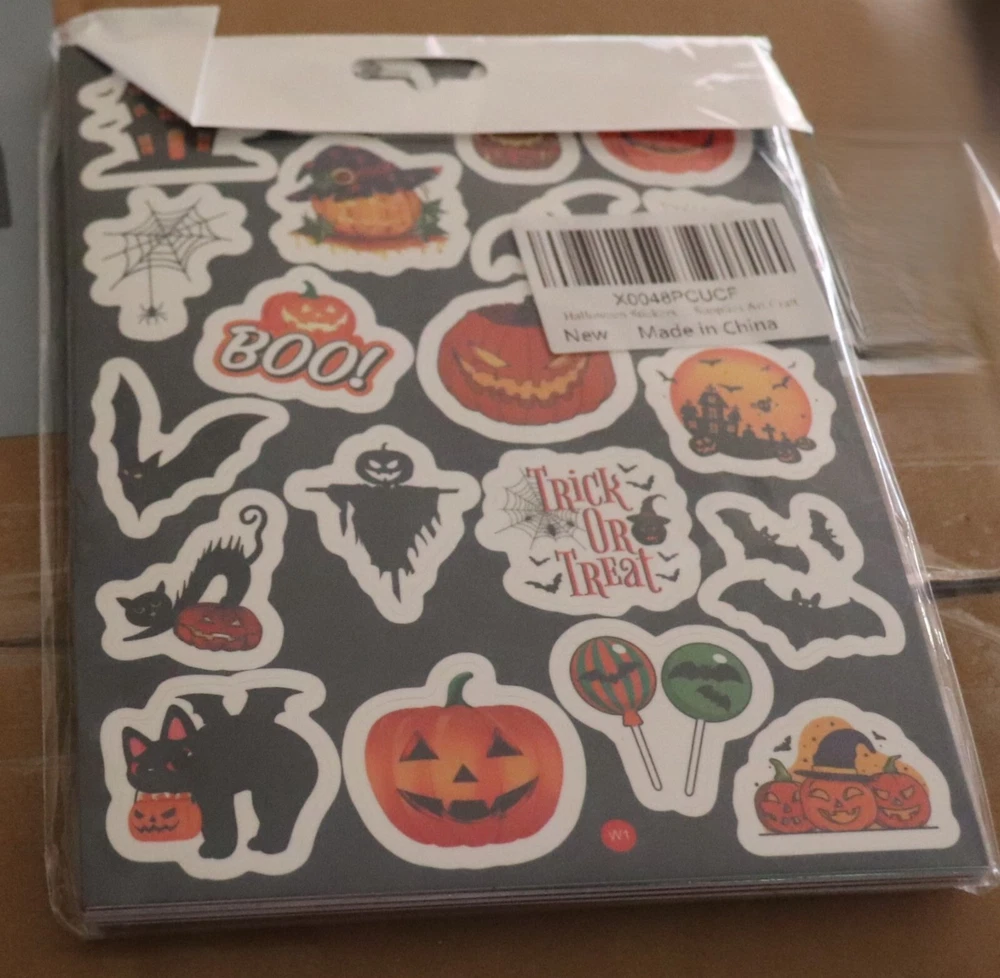 Get into the spooky spirit with this assortment of 160 Halloween stickers! Perfect for decorating your scrapbook pages, cards, or even your laptop. These multi-colored stickers feature a variety of Halloween-themed designs, including jack-o-lanterns, ghosts, and goblins. Made in China and not handmade, these stickers come with an unknown California Prop 65 warning. Use them to add a fun touch to your Halloween goodie bag fill or as a gift for your fellow Halloween enthusiasts. Add these stickers to your collection and get ready to celebrate Halloween in style!