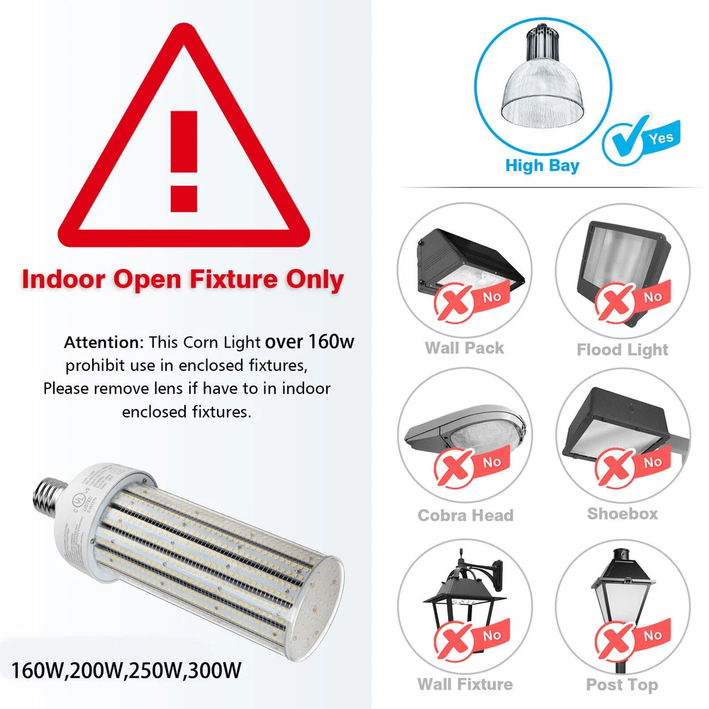 Product Description 160W LED Corn Cob Bulb for Gas Station Warehouse Airport Store Large Area Light 【Super Bright】 160W led corn cob with 22400 lumens and 360 degree beam angle fits to be 700W HID Replacement retrofit. The installation height is recommended between 16ft and 18ft. 【90% Energy Saving】The LED corn light reduce more than 90% electricity consume than traditional light. Available for working voltage from 100VAC to 277VAC 【Quality Listed】The industrial quality light passed UL certification. It offers a safer using at home, commercial, industrial area. 【Easy Installation】E39 Base is easy to Connect directly a screw base. Must be remove or bypass the ballast in your electric circuit before installation. 【Long Lifespan】This bulb has 50,000 hours lifespan. Offering at least 11 years of lighting time if used 12 hours a day. 【Warranty】We provide with 5 years warranty for all our bulbs. If any problem or question about bulbs please contact us by email. We will reply within 24 hours. Product description The LED cob bulb are UL/DLC listed with outstanding industrial quality, superb energy efficiency, long lifespan and easy installation. Compared with traditional light bulbs, we provide brighter lighting and wider applications, but we have achieved up to 90% energy saving. So our LED light bulbs can help you save more than 90% of electricity bills. The design of Non-flickering No UV or IR radiation can provide higher stability and reliability when using the bulbs. Feature: 1.UL Listed 2.Replace 7 00W HID bulb 3.Instant lighting 4.6K high voltage surge protection 5.Non-flickering No UV or IR radiation Technical Data: 1.Lighting Technology: LED 2.Bulb Shape: Corn Cob 3.Rated Power: 160 watts 4.Input Voltage: AC100-277V 5.Bulb Base: E39 Base 6.Power Factor: >90% 7.Power Efficacy: 140 Lm/W 8.Color Temperature: 5000K/6000K 9.Color Rendering Index (RA) : >80 10.PC Cover: Transparent 11.Materials:Aluminum+ASA 12.Lifespan: 50,000 hrs Wide Application: Indoor High Bay Area: warehouse, factory, workshop, shopping mall, church, garage, grocery, car wash-shop, gym, basketball court, tennis court, office, garden, community, back-yard, aircraft storage, farm, restaurant, airport, subway, convention center, swimming pool etc. About Us Payment Shipping Returns Contact Us SHENZHEN NUOGUAN TECHNOLOGY CO. LTD founded in 2010. We are high-technology comany specialized in manufacture Commercial and industrial LED light. Advanced production equipment and excellend R&D ability help us to combining service ,production sell together provide top-level products to our customers. 1. Payment is expected within 7 days of auction close. Or Unpaid Items will be forfeited per eBay . 2. Taxes may be applicable at checkout as states adopt new laws and regulations regarding sales tax collection. 1. We ONLY ship to USA . 2. Orders processed within 1-2 business day of payment verification. There’s no Delivery service or courier service on Saturdays, Sundays or Public Holidays. 3. We have 3 different warehouse in US,so due to stock status and time differences, we will choose to ship your item from our first available warehouse for fast delivery. 4. We offer Free Shipping within the Lower 48 states! All packages are sent via UPS or USPS.The delivery time for UPS Ground is typically 2-5 business days. We strive to ensure 100% satisfaction for each and every one of our customers. we offer a 30-day 100% money-back guarantee on all eBay orders. If your item isn't just as you wished, simply send it back to us and we'll refund or replace your item. Please note that all returns must be authorized by our Customer Service department. please contact us though message first if you have any problem. USA Warehouse. Fast shipping! We are appreciated your purchasing form our eBay store. Office Time: 9:30 - 18:30, Monday - Saturday (UTC+8) Please contact us with eBay Message. We will respond you within 24 hours on business day. About Us SHENZHEN NUOGUAN TECHNOLOGY CO. LTD founded in 2010. We are high-technology comany specialized in manufacture Commercial and industrial LED light. Advanced production equipment and excellend R&D ability help us to combining service ,production sell together provide top-level products to our customers. Payment 1. Payment is expected within 7 days of auction close. Or Unpaid Items will be forfeited per eBay . 2. Taxes may be applicable at checkout as states adopt new laws and regulations regarding sales tax collection. Shipping 1. We ONLY ship to USA . 2. Orders processed within 1-2 business day of payment verification. There’s no Delivery service or courier service on Saturdays, Sundays or Public Holidays. 3. We have 3 different warehouse in US,so due to stock status and time differences, we will choose to ship your item from our first available warehouse for fast delivery. 4. We offer Free Shipping within the Lower 48 states! All packages are sent via UPS or USPS.The delivery time for UPS Ground is typically 2-5 business days. Returns We strive to ensure 100% satisfaction for each and every one of our customers. we offer a 30-day 100% money-back guarantee on all eBay orders. If your item isn't just as you wished, simply send it back to us and we'll refund or replace your item. Please note that all returns must be authorized by our Customer Service department. please contact us though message first if you have any problem. Contact Us USA Warehouse. Fast shipping! We are appreciated your purchasing form our eBay store. Office Time: 9:30 - 18:30, Monday - Saturday (UTC+8) Please contact us with eBay Message. We will respond you within 24 hours on business day. You may also like 100W LED Barn Light with Dusk To Dawn Photocell Outdoor Garden Yard Night Light 69.05 USD Free shipping 200W UFO LED High Bay Light Industrial Fixture For GYM Warehouse Workshop 120V 99.05 USD Free shipping 100W LED Post Top Light For Garden Yard Parking Lot Road Circular Area Pole Lamp 138.74 USD 154.15 USD Fre