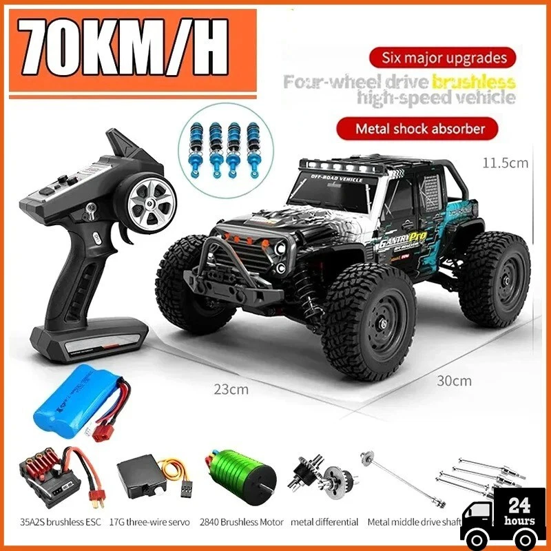 Unleash the thrill of high-speed racing with the 16103PRO 1:16 4WD RC Monster Truck. Designed for both kids and adults, this remote control car reaches speeds of up to 70KM/H, offering an exciting and adrenaline-filled experience. Equipped with LED lights for night driving, a powerful 4WD system for stability, and a responsive 2.4G remote control, this monster truck is perfect for drifting, off-road racing, and stunts. Compete with models like the WLtoys 144001 and enjoy unmatched performance and fun. Key Features: ๐ High-Speed Performance: Reaches speeds of up to 70KM/H, perfect for thrilling races and stunts โ๏ธ 4WD System: Provides excellent traction and stability for off-road adventures and smooth drifting ๐ก LED Lighting: Bright LED lights allow for exciting night racing and improved visibility ๐ฎ 2.4G Remote Control: Offers precise, interference-free control with long-range capabilities for smooth handling ๐ Perfect Gift Idea: A great choice for birthdays, holidays, or special occasions for RC enthusiasts of all ages Perfect For: ๐ฎ RC Car Enthusiasts: Perfect for beginners and experienced racers who love speed and off-road challenges ๐ Gift-Giving: A thoughtful and exciting gift for kids, teens, and adults who enjoy remote control vehicles ๐๏ธ Outdoor & Indoor Play: Built for off-road racing, drifting, and stunts on dirt, sand, or smooth surfaces ๐ Competitive Racing: Ideal for racing against friends and challenging models like WLtoys 144001 Specifications: ๐ Scale: 1:16 ๐ง Drive System: 4-wheel drive (4WD) ๐ฎ Control System: 2.4G remote control for smooth, responsive handling ๐ก Features: LED lights, high-speed capability, durable construction for off-road use ๐ ๏ธ Material: High-quality ABS plastic and metal components for durability ๐ Condition: Brand new, ready for racing or gifting Package Includes: ๐ฆ 1 x 16103PRO 1:16 RC Monster Truck ๐ฆ 1 x 2.4G Remote Controller ๐ฆ 1 x Rechargeable Battery (for the truck) ๐ฆ 1 x USB Charging Cable Notes: โจ Care Instructions: Clean gently after use to maintain performance and appearance ๐ Battery Info: Ensure batteries are fully charged before use for optimal performance