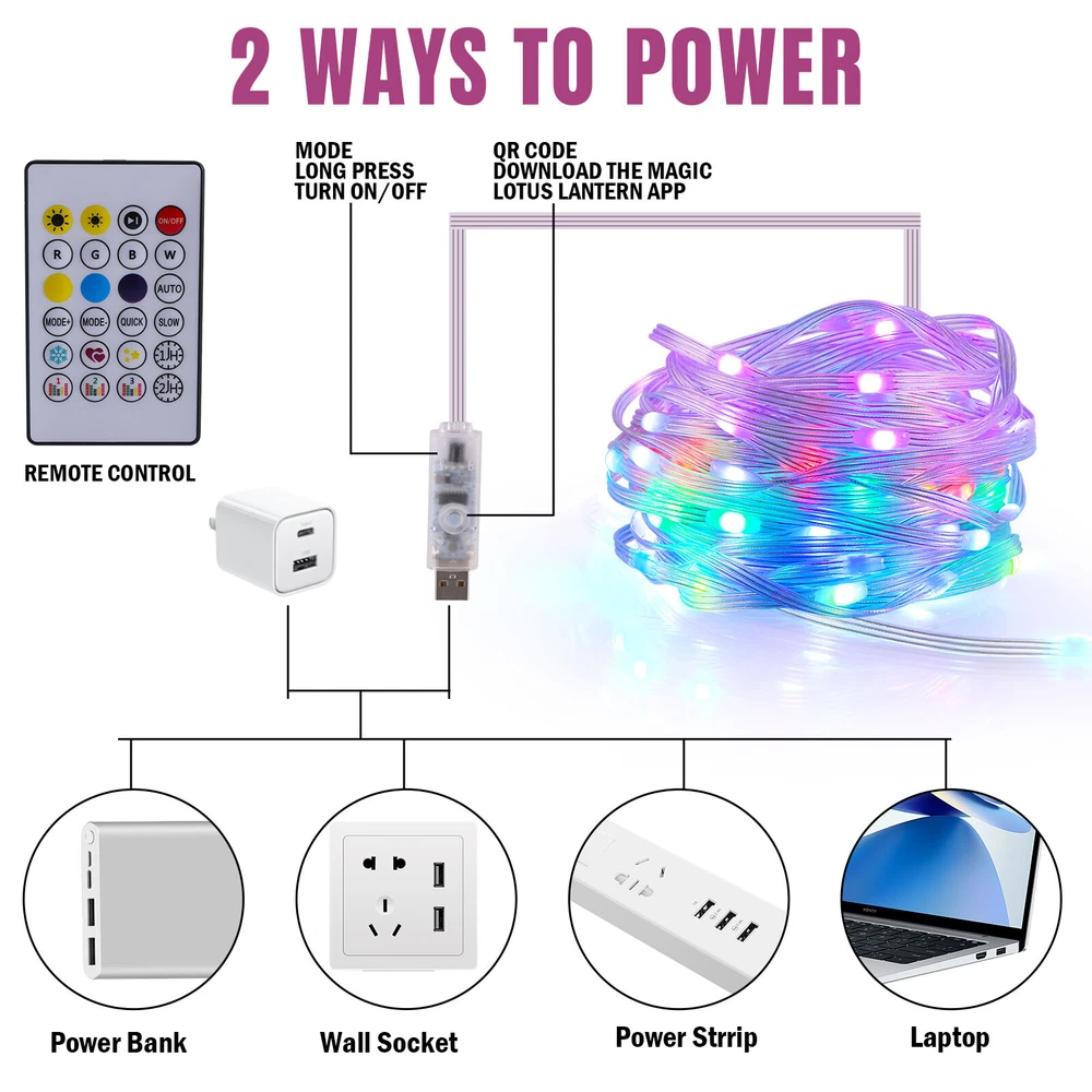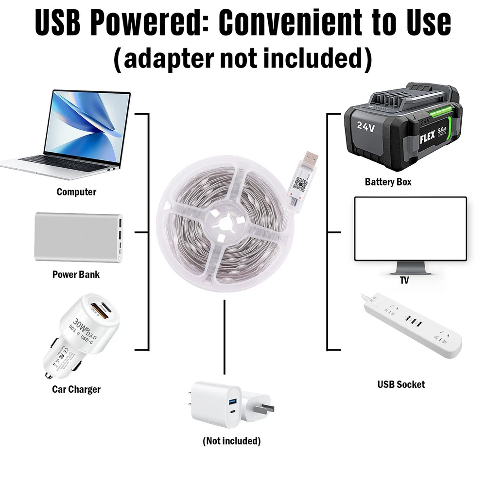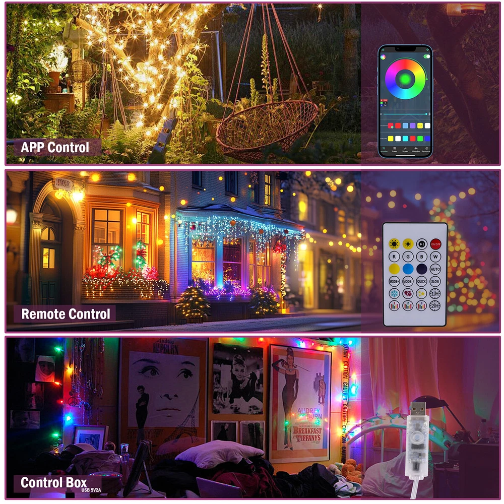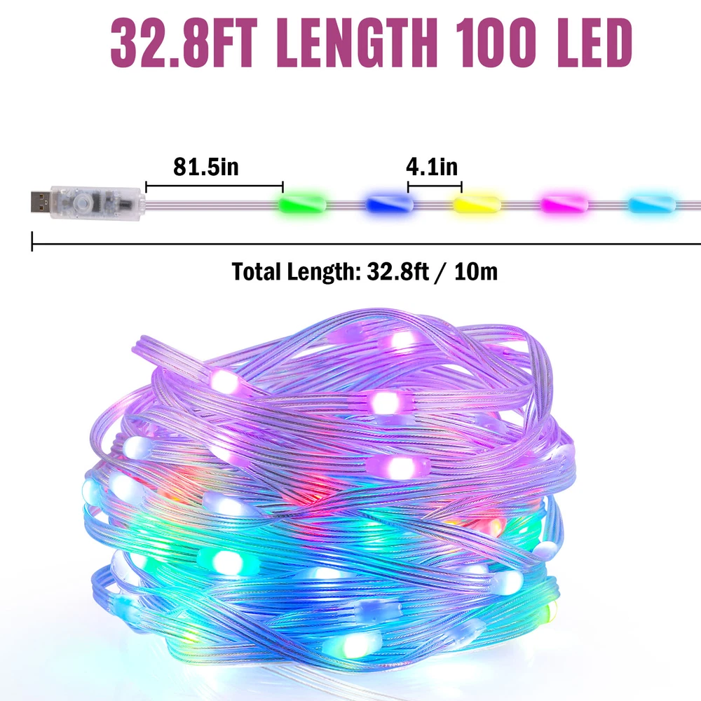 16/33FT 50/100LED Strip Rope Light Tube String Garden Party Xmas Wedding Outdoor HOT POINTS: đ ăUSB POWEREDă NOT Battery Operated. It won't kill through your batteries. Benefit from the USB design, you can simply use a power bank to make it to be a portable string light and use it anywhere you want. You can hook it up to your existing phone USB charger and then plug it into the outlet. đĄ ă8 LIGHTING MODES & ADJUST BRIGHTNESSă Dimmable and Remote Control. 2 ways to control the light. Use either the blue switch button on USB or the remote controller to turn on/off the string light and to choose between the 8 blinking modes and the stay on mode. đ ăRGB 16 COLORS CHANGINGă Ollny rope lights offer 16 colors (red, pink, blue, yellow, orange, etc.) with more vibrant colors. More color options are available to meet different use scenarios and DIY ideas â±ïž ăREMOTE & APP CONTROLă The light string can be connected with the cell phone APP through Bluetooth, so you don't need to go near the light string to operate it in person, you just need to move your finger on the cell phone to realize the control of the light string. đ” ăMUSIC AND VOICE SYNCă Switch to music mode, you can choose your favorite music and the lights will bounce to the rhythm of your favorite song. Multi-color string light use microphone to detect and match the music to synchronize with the music, turning your space into a dynamic light show. (Cannot play music) đŠ ăWATERPROOFă With the IP65 rating the light string is protected from water jets. So it is rainproof and can be installed outside. Please note that the USB Plug should be protected for outdoor use. đ ăFLEXIBLE TO BEND INTO ANY SHAPEă This rope light is soft and can be flexibly use to decorate the outline of building, window, walkway, patio, garden, fence, porch, restaurant, clubs, pool deck, bar and more. đ ăNO NOISEă The light string components are of good quality, subject to current fluctuations and electromagnetic interference is less, in the working process is not easy to produce noise. đ ăINDOOR AND OUTDOOR USEă You can install the fairy string light on an outdoor tree or ladder, it can be used as Christmas tree lights, bedroom decorations, or to create a festive atmosphere for festivals, parties, weddings and so on PRODUCT PARAMETER Voltage: 5V Color Temperature: 3000K Number of Lamp Beads: 100LED/50LED Material: PVC Length: 10m/33ft , 5m/16.4ft PRODUCTS INCLUDE: 1x Light String 1x Remote Control Payment Delivery details Terms of sales About us Contact us Payment Payments: Paypal, Google Pay, Visa, Master Card, Amerian Express, Discover. Delivery details All items are shipped from US warehouse located at NJ . We ship to your eBay or Paypal address. Please make sure your eBay or Paypal address is correct before you pay. Terms of sales Free return About us Pls contact our customer service firstly if have any problems , we will help to solve the issue, and could offer free return service for full refund or free replacement after confirming. You can buy from us with confidence Contact us If have any problems, please feel free to contact us.
