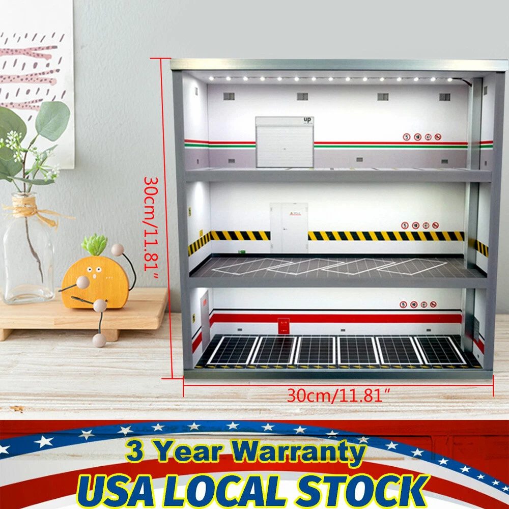 1:64 3-Layer Diecast Car Model Display Cabinet Parking Lot Case w/ LED Light